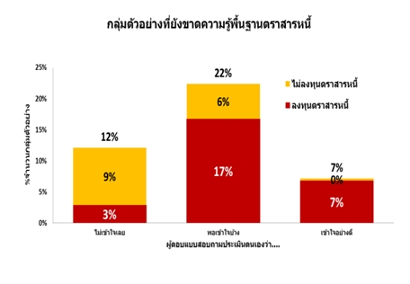 Posted by:ThaiBMA Posted on: Dec. 07, 2017 Share this post with ประมวลผลสำรวจความเข้าใจด้านการเงินการลงทุนของประชาชนทั่วไป “การลงทุนมีความเสี่ยง ผู้ลงทุนโปรดศึกษาข้อมูลก่อนตัดสินใจลงทุน” เป็นประโยคที่นักลงทุนหลายท่านคุ้นเคย แต่จะมีกี่ท่านที่ใส่ใจกับประโยคสั้นๆนี้บ้างในบรรดาสินทรัพย์ต่างๆที่นักลงทุนเลือกลงทุนเพื่อกระจายความเสี่ยง ไม่ว่าจะเป็นหุ้นสามัญ ตราสารหนี้ กองทุนรวม ประกันชีวิตทองคำ ค่าเงิน น้ำมันและอื่นๆ แต่ตราสารหนี้เป็นสินทรัพย์ที่นักลงทุนไม่ค่อยมีความเข้าใจมากนัก แม้ว่าจะเป็นสินทรัพย์ลงทุนหนึ่งที่นักลงทุนควรมีไว้ในพอร์ตอย่างน้อยก็ในสัดส่วนที่รองรับกับการใช้จ่ายที่จำเป็นในชีวิตเนื่องจากการลงทุนในตราสารหนี้“จะได้รับดอกเบี้ยตามจำนวนที่แน่นอน คงที่ ตามกำหนดเวลาเมื่อครบกำหนดเวลาก็ได้เงินต้นคืน มีความผันผวนต่ำ ผลตอบแทนดีกว่าฝากธนาคาร” สมาคมตลาดตราสารหนี้ไทย(ThaiBMA) จึงได้จัดทำการสำรวจ Financial Literacy Surveyเพื่อประเมินความเข้าใจด้านการเงินการลงทุนของบุคคลทั่วไป โดยนำเค้าโครงแบบสอบถามของธนาคารกลางญี่ปุ่นมาปรับแก้ให้เหมาะสมกับบริบทของประเทศไทยแบบสำรวจแบ่งเป็นความเข้าใจเกี่ยวกับการเงินทั่วไป และความเข้าใจเกี่ยวกับตราสารหนี้ โดยทำการสำรวจทาง online ผ่านสื่อ social media ซึ่งผลการสำรวจพบประเด็นที่น่าสนใจดังนี้ • ระดับการศึกษาและรายได้เป็นปัจจัยที่มีความสัมพันธ์ในทิศทางเดียวกันกับระดับความเข้าใจด้านการเงินการลงทุนกลุ่มตัวอย่างที่ระดับการศึกษาสูงขึ้น หรือรายได้สูงขึ้น จะมีความเข้าใจการเงินการลงทุนดีขึ้นตามไปด้วยนอกจากนี้ กลุ่มตัวอย่างที่มีความถี่ในการรับข้อมูลข่าวสารสูงไม่ว่าจะเป็นการฟังวิทยุ อ่านจากสื่อonline หรือช่องทางอื่นๆ ก็จะมีความเข้าใจด้านการเงินการลงทุนมากกว่าผู้ที่ไม่ค่อยได้ติดตามข่าวสาร • ในการลงทุนตราสารหนี้ กลุ่มตัวอย่างส่วนใหญ่ให้ความสำคัญกับอัตราผลตอบแทนมากที่สุด มีเพียงสองกลุ่มที่ให้ความสำคัญกับอันดับเครดิต/ความเสี่ยงมากกว่าอัตราผลตอบแทน คือ กลุ่มตัวอย่างที่มีการศึกษาสูง(สูงกว่าป.ตรี)และกลุ่มตัวอย่างที่เป็นเจ้าของกิจการ • 78% ของกลุ่มตัวอย่างมีความเข้าใจภาพรวมการเงินการลงทุนในระดับค่อนข้างดีคือมีความรู้พื้นฐานเกี่ยวกับ อัตราเงินเฟ้อ การกระจายความเสี่ยง ความสัมพันธ์ระหว่างความเสี่ยงและผลตอบแทน รวมถึงอัตราดอกเบี้ยทบต้น • จากการสำรวจพบว่าคนที่มีความเข้าใจด้านการเงินทั่วไปก็อาจไม่ได้มีความรู้ความเข้าใจด้านตราสารหนี้ 44% ของกลุ่มตัวอย่างมีความเข้าใจด้านการเงินทั่วไปเป็นอย่าง
