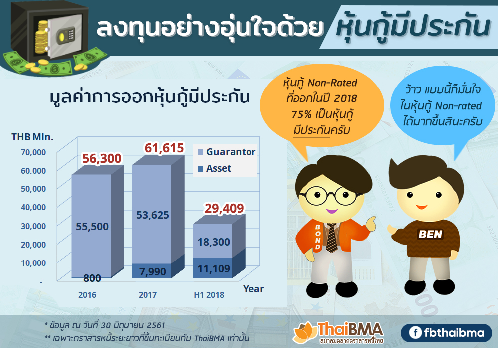 Bond Blogs Posted by:ThaiBMA Posted on: Aug. 01, 2018 Share this post with ลงทุนอย่างอุ่นใจ ด้วยหุ้นกู้มีประกัน ในอดีตที่ผ่านมา การออกหุ้นกู้ในประเทศไทยมักจะอยู่ในรูปแบบหุ้นกู้ไม่มีประกันแต่ในช่วงไม่กี่ปีที่ผ่านมา พบว่าการออก“หุ้นกู้มีประกัน” มีแนวโน้มเพิ่มมากขึ้น โดยลักษณะการประกันมีทั้งการให้นิติบุคคลอื่น (เช่น บริษัทแม่ ธนาคาร หรือ CGIF) เป็นผู้ค้ำประกัน การใช้ทรัพย์สินของบริษัทผู้ออกมาเป็นหลักประกันรวมไปถึง การใช้หุ้นของบริษัทอื่นมาเป็นประกัน ในปี 2017 มูลค่าการออกหุ้นกู้มีประกันสูงถึง 61,615 ล้านบาท เพิ่มขึ้น 9.44% จากปีก่อนหน้า ส่วนในช่วงครึ่งแรกของปี 2018 มูลค่าการออกหุ้นกู้มีประกันยังคงมีแนวโน้มเพิ่มขึ้น โดยเฉพาะในกลุ่มหุ้นกู้ที่ ไม่มีเรทติ้ง(Non-rated) ที่มีการนำทรัพย์สิน เช่น ที่ดิน อาคาร อสังหาริมทรัพย์มาเป็นหลักทรัพย์ค้ำประกันการออกหุ้นกู้เพื่อเพิ่มความเชื่อมั่นให้นักลงทุนโดยการออกหุ้นกู้มีประกันของกลุ่มบริษัท Non-rated ในครึ่งปีแรกของปี 2018 มีสัดส่วนถึง 75% ของหุ้นกู้ทั้งหมดที่ออกในกลุ่มนี้ เพิ่มขึ้นจาก 32% ในปี 2017 ข้อดีของหุ้นกู้มีประกันสำหรับนักลงทุน ก็คือ ในกรณีที่บริษัทผู้ออกไม่สามารถชำระหนี้ดอกเบี้ยหรือเงินต้นได้ อย่างน้อยผู้ลงทุนยังมีโอกาสเรียกร้องจากผู้ค้ำประกันหรือจากสินทรัพย์ที่นำมาค้ำประกันได้ ซึ่งควรพิจารณาก่อนลงทุนว่าสินทรัพย์ค้ำประกันนั้นมีมูลค่าเพียงพอต่อการนำมาจ่ายคืนหนี้เงินต้นและดอกเบี้ยให้แก่ผู้ถือหุ้นกู้ ส่วนหุ้นกู้ที่มีนิติบุคคลอื่นเป็นผู้ค้ำประกัน ก็ควรพิจารณาความน่าเชื่อถือของผู้ค้ำประกันซึ่งสะท้อนถึงระดับความเสี่ยงของหุ้นกู้ที่ออก นอกจากนี้นักลงทุนควรพิจารณาสัดส่วนการค้ำประกัน เนื่องจากบางครั้ง ผู้ค้ำประกันไม่ได้ค้ำประกันทั้ง 100% อาจค้ำประกันเฉพาะเงินต้นเพียงบางส่วนหรือ ค้ำประกันเงินต้นและดอกเบี้ยบางส่วนซึ่งหมายความว่า หากผู้ออกผิดนัดชำระ ในกรณีแรกนักลงทุนจะได้รับเงินต้นคืนไม่ครบ 100% และจะไม่ได้รับดอกเบี้ยค้างจ่าย ส่วนกรณีที่สอง คือนักลงทุนจะได้รับทั้งเงินต้นและดอกเบี้ยคืนตามสัดส่วนที่ผู้ค้ำประกันระบุไว้ จะเห็นได้ว่าหลังเกิดเหตุการณ์ผิดนัดชำระของบริษัทบางราย ทำให้ทั้งผู้ออกหุ้นกู้และนักลงทุนเพิ่มความระมัดระวังเรื่องความเสี่ยงจากการผิดนัดชำระเป็นพิเศษ การลงทุนในหุ้นกู้มีประกันก็อาจเป็นทางเลือกหนึ่งที่ทำให้อุ่นใจได้มากขึ้น เพราะหากมีการผิดนัดชำระหนี้ ผู้ถือหุ้นกู้มีประกันสามารถเรียกร้องสิทธิในหลักประกัน หรือเรียกร้องเงินต้นจากผู้ค้ำประกันได้ก่อนผู้ถือหุ้นกู้ที่ไม่