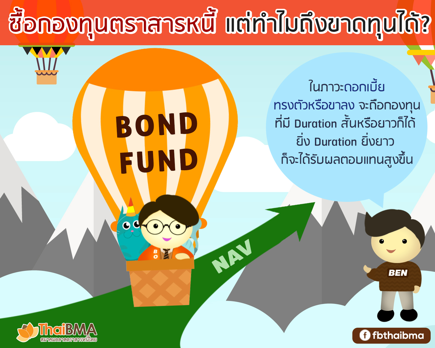 Posted by:ThaiBMA Posted on: Aug. 16, 2018 Share this post with ซื้อกองทุนตราสารหนี้ แต่ทำไมถึงขาดทุนได้? ถ้าพูดถึงกองทุนตราสารหนี้ นักลงทุนหลายท่านคงจะคิดว่ามูลค่าหน่วยลงทุนควรจะมีแต่เพิ่มขึ้นทุกวันตามดอกเบี้ยที่จะได้รับอย่างสม่ำเสมอจากตราสารหนี้ แต่ในความเป็นจริงแล้วเราก็อาจเห็นมูลค่าหน่วยลงทุนของกองทุนตราสารหนี้มีมูลค่าผันผวนหรือลดลงได้เรามาดูกันว่าเกิดจากอะไร มูลค่ากองทุนตราสารหนี้ (Net Asset Value: NAV) คำนวณจากราคาตราสารหนี้ (Clean price)แต่ละรุ่นที่อยู่ในกองทุนนั้น ซึ่งราคาตราสารหนี้จะปรับเพิ่มขึ้น/ลดลงตามอัตราผลตอบแทนตลาด (Market yield)โดยบริษัทหลักทรัพย์จัดการกองทุนจะทำการคำนวณมูลค่าทรัพย์สินสุทธิให้สะท้อนราคาตลาดที่เป็นธรรม(Mark to Market)รวมกับดอกเบี้ยค้างรับ(Accrued Interest)ซึ่งมีการคำนวณในทุกๆวันในกรณีที่ Market yieldไม่ได้เปลี่ยนแปลงมากนัก มูลค่าหน่วยลงทุนควรเพิ่มขึ้นในทุกๆ วันจากดอกเบี้ยค้างรับสะสมแต่ในกรณีที่ Market yield ปรับสูงขึ้นมากจะส่งผลให้ราคาตราสารหนี้ปรับลดลง และทำให้กองทุนตราสารหนี้มีมูลค่า (NAV) ลดลงและผู้ถือหน่วยลงทุนอาจขาดทุนได้ ปัจจัยหนึ่งที่ทำให้มูลค่ากองทุนตราสารหนี้ปรับเพิ่มขึ้นหรือลดลงไม่เท่ากันก็คือ Duration (อายุเฉลี่ยถ่วงน้ำหนักด้วยกระแสเงินสด) ของตราสารหนี้ที่กองทุนไปลงทุนซึ่งDurationเป็นเครื่องมือที่ใช้วัดขนาดการเปลี่ยนแปลงของราคาตราสารหนี้เมื่อMarket Yield เปลี่ยนแปลงไปโดยDurationยิ่งสูงก็จะยิ่งมีผลต่อการเปลี่ยนแปลงมูลค่าของตราสารหนี้ในกองทุนมากเช่นกัน เช่น กองทุนที่มีตราสารหนี้Duration 5 ปี เมื่อMarket yieldเพิ่มขึ้น 1%มูลค่าตราสารหนี้จะลดลง 5% (Capital loss) ซึ่งจะส่งผลให้ NAV ของกองทุนลดลง ในทางกลับกันกองทุนที่มีตราสารหนี้ Duration 3 ปีเมื่อ Market yieldลดลง 1%ตราสารหนี้ในกองทุนจะมีมูลค่าเพิ่มขึ้น 3% (Capital Gain) และส่งผลให้ NAV ของกองทุนเพิ่มขึ้น เป็นต้น (ความสัมพันธ์แบบผกผันระหว่าง Market yield กับราคาตราสารหนี้ รวมถึง Duration ส่งผลอย่างไรกับราคาตราสารหนี้ สามารถติดตามอ่านได้จากบทความ “เมื่ออัตราดอกเบี้ยผันเปลี่ยน มูลค่าของตราสารหนี้ก็ผันแปร”) ในช่วงที่ Market yieldปรับเพิ่มขึ้นและPortfolio durationของกองทุนตราสารหนี้นั้นสูง ผู้ถือหน่วยลงทุนก็อาจจะพบว่ามูลค่าหน่วยลงทุนของตนเองนั้นลดต่ำลง ดังนั้นในภาวะที่อัตราดอกเบี้ยมีแนวโน้มปรับตัวขึ้น นักลงทุนควรเลือกถือกองทุนที่มี Duration สั้น เพราะจะได้รับผลกระทบน้อยกว่าเมื่อMarket yield ปรับเพิ่มขึ้นและในทางตรงข้าม หากอยู่ในสภาวะดอกเบี้ยขาลงก็ควรถือกองทุนที่มีDuration ยาว เนื่องจากเมื่อMarket yieldปรับลดลงนักลงทุนก็จะได้รับCapital gain จากราคาของตราสารหนี้ที่เพิ่มขึ้นนั่นเอง