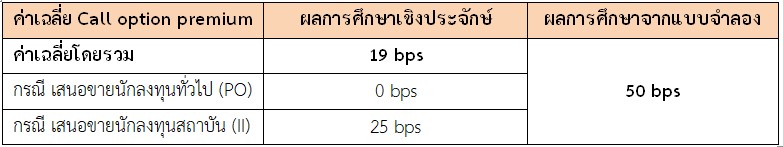 Posted by:ThaiBMA Posted on: Jun. 18, 2019 Share this post with Callable bonds ของไทย คุ้มค่าน่าลงทุน? Callable bond คือ หุ้นกู้ที่ให้สิทธิผู้ออกในการไถ่ถอน (Call) ก่อนกำหนด ซึ่งในประเทศไทยมีการออกครั้งแรกในปี 2002 และออกเพิ่มขึ้นอย่างต่อเนื่องโดยเฉพาะตั้งแต่ปี 2013 เป็นต้นมา ปริมาณการออก Callable bonds มีความสัมพันธ์กับทิศทางอัตราดอกเบี้ยในตลาด โดยพบว่ามีการออก Callable bonds เพิ่มขึ้นในช่วงที่อัตราดอกเบี้ยนโยบายปรับลดลง ปริมาณการออกลดลงในช่วงที่ดอกเบี้ยนโยบายมีทิศทางสูงขึ้น ซึ่งก็สอดคล้องกับหลักการที่ว่าหากดอกเบี้ยมีแนวโน้มลดลง ผู้ออกย่อมมีแรงจูงใจมากขึ้นที่จะออกตราสารหนี้ในรูปแบบ Callable bond เพื่อจะได้มีสิทธิเรียกไถ่ถอนก่อนกำหนดหากในอนาคตสามารถออกหุ้นกู้รุ่นใหม่ได้ในอัตราดอกเบี้ยต่ำลงนั่นเอง สำหรับนักลงทุน การลงทุนใน Callable bond มีความเสี่ยงมากกว่าหุ้นกู้ปกติที่ไม่มี Call option เพราะมีโอกาสถูกเรียกไถ่ถอนก่อนกำหนด ทำให้นักลงทุนอาจได้รับผลตอบแทนจากการลงทุนใหม่ที่ต่ำกว่าเดิม (Reinvestment risk) ดังนั้น Callable bond จึงควรต้องจ่ายอัตราดอกเบี้ยสูงกว่าหุ้นกู้ปกติ คำถามคือ แล้วผู้ออก Callable bond ได้ชดเชยความเสี่ยงจากการถูกไถ่ถอนก่อนกำหนดให้คุ้มไหม? อัตราดอกเบี้ยหน้าตั๋ว (คูปอง) ของ Callable bond สูงกว่าหุ้นกู้ที่มีคุณลักษณะใกล้เคียงกันแต่ไม่มี Call option ในระดับที่เหมาะสมกับความเสี่ยงที่เพิ่มขึ้นแล้วหรือไม่ Callable bond ของไทยออกมาแล้วทั้งหมด 144 รุ่น มีอายุการออก (Tenor) เฉลี่ยที่ 6 ปี โดยผู้ออกที่มีอันดับเครดิตยิ่งสูงก็จะออก bond ที่มีอายุยาวขึ้น ผู้ออกอันดับเครดิต AAA ออก Callable bond ที่มีอายุเฉลี่ยยาวถึง 15 ปี ในขณะที่ผู้ออก Non-rated มีอายุการออกเฉลี่ยเพียง 2 ปี และจาก Callable bond ทั้งหมดที่ถึงกำหนดที่ผู้ออกสามารถเรียกไถ่ถอน (Call) ได้ มีเพียง 1 ใน 3 ที่ผู้ออกใช้สิทธิ Call น่าสนใจที่ผู้ออกส่วนใหญ่คือ 2 ใน 3 ไม่ได้ใช้สิทธิ Call ทั้งที่อัตราดอกเบี้ยมีแนวโน้มลดลง แล้วทำไมถึงออก Callable bond? อาจเป็นไปได้ว่าผู้ออกมีสภาพคล่องไม่พอที่จะขอไถ่ถอนก่อนกำหนด ดอกเบี้ยไม่ได้ลดลงมากพอ หรืออัตราดอกเบี้ยคูปองที่เพิ่มขึ้นสำหรับการออก Callable bond นั้นไม่ได้แตกต่างมากนักจากหุ้นกู้ที่ไม่มี Call option ซึ่งในแง่ของนักลงทุน ก็เท่ากับว่า Callable bond ให้คูปองที่ต่ำเกินไปเมื่อเทียบกับความเสี่ยง Reinvestment risk ที่เพิ่มขึ้นมา Callable bond ของไทยให้ดอกเบี้ยคูปองต่ำเกินไปจริงหรือ? จากการศึกษาเชิงประจักษ์ในช่วงปี 2002-2018 โดยการเปรียบเทียบ Callable bond กับ หุ้นกู้ปกติที่ไม่มี Call option ของผู้ออกรายเดียวกัน รุ่นอายุใกล้เคียงกัน และเสนอขายในช่วงเวลาไล่เลี่ยกันจำนวน 24 รุ่น พบว่า Callable bond กำหนดดอกเบี้ยคูปองสูงกว่าหุ้นกู้ปกติที่ไม่มี Call option เฉลี่ย 19