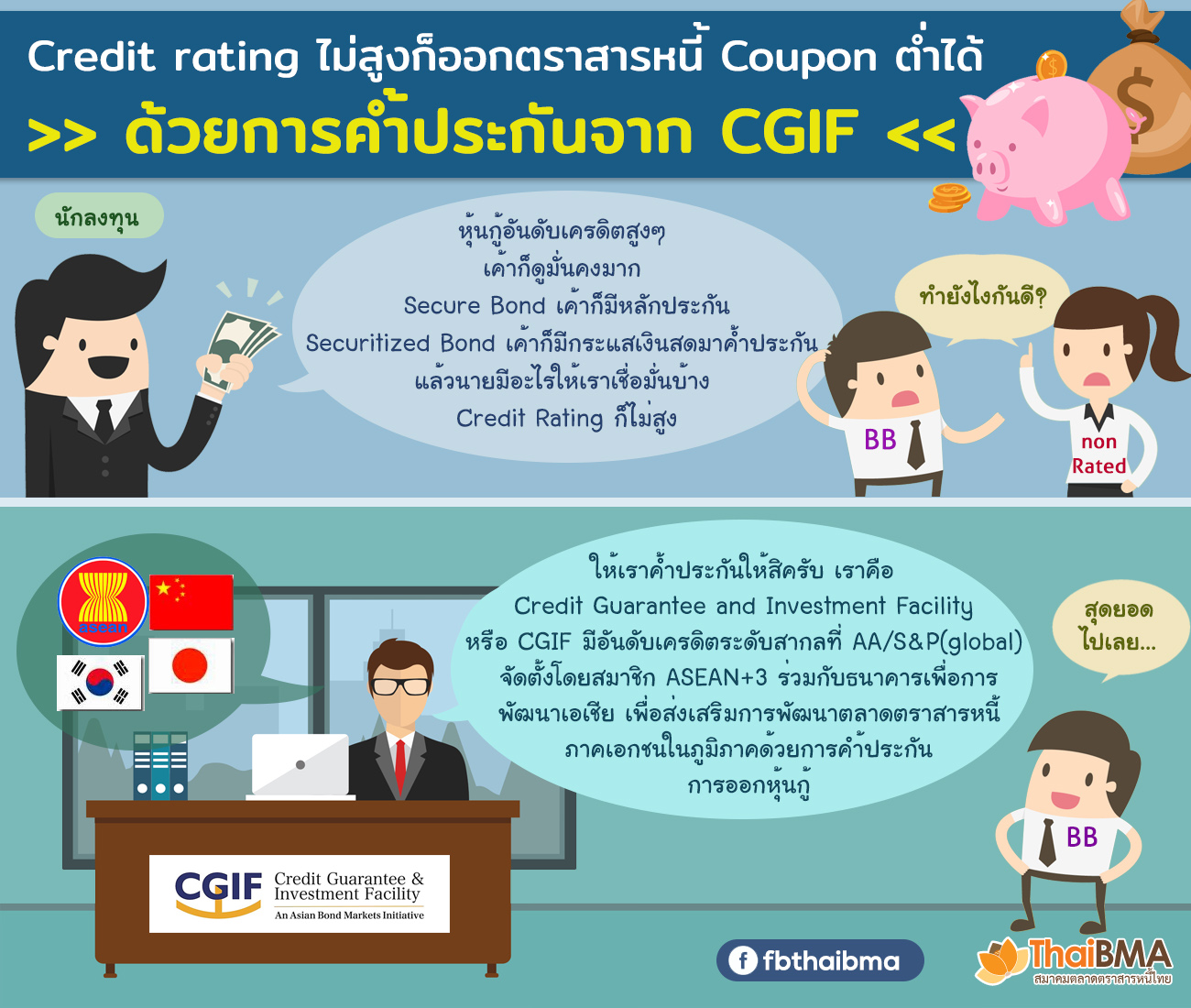 Posted by:ThaiBMA Posted on: March. 27, 2019 Share this post with การค้ำประกันจาก CGIF ช่วยผู้ออกลดคูปองดอกเบี้ยให้ต่ำลง ความเสี่ยงในการผิดนัดชำระหนี้ (Credit/Default Risk) ถือเป็นความเสี่ยงหลักของการลงทุนในตราสารหนี้ภาคเอกชน โดย “อันดับเครดิต” เป็นเครื่องมือหนึ่งที่สะดวกที่ใช้สะท้อนความเสี่ยงด้านการผิดนัดชำระหนี้ ซึ่งนักลงทุนจะใช้ในการพิจารณาอัตราผลตอบแทน (Yield) ของหุ้นกู้แต่ละรุ่นให้สอดคล้องกับความเสี่ยงหลักนี้ ดังนั้นอันดับเครดิตจึงเป็นปัจจัยที่สำคัญในการพิจารณาลงทุนของนักลงทุน ยิ่งอันดับเครดิตดี อัตราคูปองก็ยิ่งต่ำ ซึ่งสำหรับผู้ออกแล้วจะหมายถึงต้นทุนการระดมเงินทุนที่ต่ำ ส่วนผู้ออกที่มีอันดับเครดิตไม่ดีนักหรือไม่จัดอันดับเครดิต (Non-rated bonds) ย่อมต้องจ่ายคูปองสูงกว่าสำหรับการออกตราสารหนี้ที่มีอายุใกล้เคียงกัน หากต้องการจ่ายคูปองต่ำลงหรือลดต้นทุนการระดมทุนก็สามารถทำได้โดยต้องเพิ่มความมั่นใจให้นักลงทุนว่าจะได้รับดอกเบี้ยและเงินต้นคืนตามเวลาที่กำหนด ฟังดูง่ายแต่ในทางปฏิบัติจะมีวิธีทำอย่างไร? ผู้ออกมีอย่างน้อย 3 วิธีในการลดคูปองหรือดอกเบี้ยจ่ายในการออกตราสารหนี้ วิธีแรกคือผู้ออกจัดให้มีหลักประกันซึ่งอาจจะเป็นที่ดินหรือสังหาริมทรัพย์ที่เฉพาะเจาะจงสำหรับการชำระหนี้ตราสารหนี้รุ่นนั้นๆ ที่เรียกว่าตราสารหนี้มีหลักประกัน (Secured Bonds) วิธีที่สองคือออกตราสารหนี้ที่เกิดจากการแปลงสินทรัพย์เป็นหลักทรัพย์โดยผู้ถือตราสารหนี้จะได้รับเงินต้นและดอกเบี้ยคืนจากกระแสเงินสดที่ได้จากสินทรัพย์ที่นำมาแปลงนั้น (Securitized Bonds) และวิธีสุดท้ายคือ จัดหาผู้ที่มีอันดับเครดิตสูงๆ มาค้ำประกันการออกตราสารหนี้ให้ (Guarantee Bonds) โดยผู้ที่ค้ำประกันจะรับผิดชอบเป็นผู้จ่ายเงินต้นและดอกเบี้ยแทนผู้ออกหากไม่สามารถจ่ายได้ โดยในตลาดตราสารหนี้ไทย ส่วนมากผู้ที่จะมาค้ำประกันให้มักจะเป็นบริษัทแม่ที่มีฐานะทางการเงินตลอดจนอันดับเครดิตที่ดีกว่า เช่น ตราสารหนี้ที่ออกโดยบริษัท โตโยต้า ลีสซิ่ง (ประเทศไทย) จำกัด จะมีบริษัท โตโยต้า มอเตอร์ ไฟแนนซ์ (เนเธอร์แลนด์) บี.วี. เป็นผู้ค้ำประกัน แต่สำหรับผู้ออกที่ไม่มีบริษัทแม่ จำเป็นต้องหาหน่วยงานที่สามารถค้ำประกันการออกหุ้นกู้ให้ได้ เช่น CGIF Credit Guarantee and Investment Facility หรือ CGIF จัดตั้งโดยความร่วมมือระหว่างประเทศสมาชิก ASEAN+3 ร่วมกับธนาคารเพื่อการพัฒนาเอเซีย (Asian Development Bank หรือ ADB) มีวัตถุประสงค์เพื่อส่งเสริมการพัฒนาตลาดตราสารหนี้ภาคเอกชนในภูมิภาค โดยมีหน้าที่หลักคือบริการให้การค้ำประกันการออกหุ้นกู้ที่ช่วยให้ต้นทุนการระดมทุนผ่านตราสารหนี้ของผู้ออกล