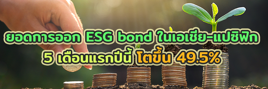 Posted by:ThaiBMA Posted on:Jun. 10, 2021 Share this post with ยอดการออก ESG bond ในเอเชีย-แปซิฟิก 5 เดือนแรกปีนี้ โตขึ้น 49.5% ยอดการออก ESG bond ในเอเชีย-แปซิฟิก 5 เดือนแรกปีนี้ สูงกว่า 69.1 พันล้านดอลลาร์สหรัฐ หรือกว่า 2 ล้านล้านบาท !!! o การออก ESG bond ในเอเชีย-แปซิฟิก ในช่วง 5 เดือนแรกปีนี้ มีมูลค่ากว่า 69.1 พันล้านดอลลาร์สหรัฐ หรือ กว่า 2 ล้านล้านบาท ซึ่งเพิ่มขึ้นจากช่วงเดียวกันของปีที่แล้วถึง 49.5% o ถือเป็นสถิติใหม่ยอดการออกสูงสุดในช่วง 5 เดือนแรกของเอเชีย-แปซิฟิก แซงหน้ายอดการออกในช่วงเดียวกันของสหรัฐฯ ซึ่งเป็นผู้นำการออก ESG bond o เป็นการออก Green bond มากที่สุดในสัดส่วน 70% และที่เหลือเป็นการออก Sustainability bond หรือ Sustainability-linked bonds o ประเทศในกลุ่มเอเชีย-แปซิฟิกที่ออก ESG bond มากที่สุด คือ จีน (51.3%) รองลงมาคือเกาหลีใต้ (21.2%) o ปัจจัยสนับสนุนยอดการออก ESG bond คือ สภาพคล่องในระบบที่เพิ่มมากขึ้น นักลงทุนต้องการแสวงหาผลตอบแทนโดยคาดหวังการฟื้นตัวทางเศรษฐกิจของภูมิภาคนี้จากการเร่งฉีดวัคซีน o สำหรับประเทศไทย 5 เดือนแรกปีนี้ออก ESG bond ไปแล้ว 61,000 ล้านบาทจากทั้งหน่วยงานภาครัฐและเอกชน โดยแบ่งเป็น Sustainability bonds 56,000 ล้านบาท Social bond 3,000 ล้านบาท และ Green bond 2,000 ล้านบาท