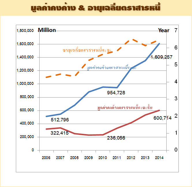 Posted by:ThaiBMA Posted on: Jul 28, 2015 Share this post with ตราสารหนี้ภาคเอกชนไทยกับการเติบโตอย่างมั่นคง ตอนที่ 1 ในอดีตนั้น ทางเลือกแรกๆ ในการระดมทุนของบริษัทเอกชนต่างๆ ที่มักจะนึกถึง คือ การกู้ยืมเงินจากธนาคารพาณิชย์ แต่ในปัจจุบันนี้ ทางเลือกในการระดมทุนเริ่มมีความหลากหลาย โดยอีกทางเลือกสำคัญที่น่าสนใจและกำลังได้รับความนิยมเพิ่มมากขึ้นเรื่อยๆ นั้น ก็คือ “การออกตราสารหนี้” ตราสารหนี้ดีกว่าการกู้ธนาคารยังไง? โดยทั่วไปการออกตราสารหนี้นั้นจะมีต้นทุนทางการเงินต่ำกว่าการกู้ธนาคาร หรือหากพูดง่ายๆ ก็คือ ดอกเบี้ยต่ำกว่า นั่นเอง เพื่อให้เห็นภาพมากขึ้น เราจะแบ่งคนออกเป็น 3 กลุ่ม ได้แก่ ผู้ออมเงิน (มีเงินเหลือ) ธนาคาร (ตัวกลาง) และผู้ที่ต้องการกู้เงินเพื่อไปขยายธุรกิจ (ต้องการเงินเพิ่ม) ผู้ออมเงินต้องการหาผลตอบแทนให้เงินออมงอกเงยจึงนำไปฝากธนาคารเพื่อรับดอกเบี้ย ขณะที่คนที่ต้องการกู้เงินก็จะไปกู้เงินจากธนาคารแล้วยอมเสียดอกเบี้ย ดอกเบี้ยที่ผู้กู้จ่ายให้กับธนาคาร (สมมติให้เท่ากับ MLR คือประมาณ 6.5%) ทางธนาคารก็จะหักเปอร์เซ็นไว้ส่วนหนึ่งเพื่อเป็นกำไรให้กับธนาคารเอง ที่เหลือก็จะส่งให้กับผู้ฝากเงิน ดังภาพ แต่ตราสารหนี้นั้นต่างออกไป เพราะ แทนที่จะมีธนาคารเป็นตัวกลาง ตราสารหนี้จะช่วยให้ผู้ที่มีเงิน (ผู้ออมเงิน) กับผู้ที่ต้องการเงิน (ผู้ที่ต้องการกู้) มาพบกันโดยตรง ทำให้ได้รับผลประโยชน์เพิ่มขึ้นทั้งผู้ที่มีเงินเหลือที่ได้ดอกเบี้ยเพิ่มขึ้นและผู้ที่ต้องการเงินได้ลดดอกเบี้ยจ่าย และนั่นคือประโยชน์ของตราสารหนี้ คำถามต่อมาคือในเมื่อมันดีขนาดนี้ แล้วประเทศไทยของเรานิยมใช้ตราสารหนี้กันมากขึ้นหรือเปล่า? คำตอบคือ.. เพิ่มขึ้นอย่างก้าวกระโดดครับ ตราสารหนี้โตแค่ไหน.. จากสถิติปี 2006-2014 ตราสารหนี้ภาคเอกชนระยะยาวมีการเติบโตเฉลี่ยปีละ 10% อย่างต่อเนื่องทุกปี โดยดูจากมูลค่าคงค้าง (Outstanding Value) อีกทั้งอายุเฉลี่ยของตราสารหนี้ก็เพิ่มขึ้นด้วย แม้ช่วงที่ผ่านมาจะมีวิกฤตการณ์หลายอย่างเกิดขึ้น อาทิ น้ำท่วม ความวุ่นวายทางการเมือง แม้กระทั่งวิกฤติทางการเงินโลกหรือเศรษฐกิจในประเทศที่ซบเซา แต่ตราสารหนี้ก็ยังคงมีแนวโน้มเติบโตได้อย่างแข็งแกร่ง