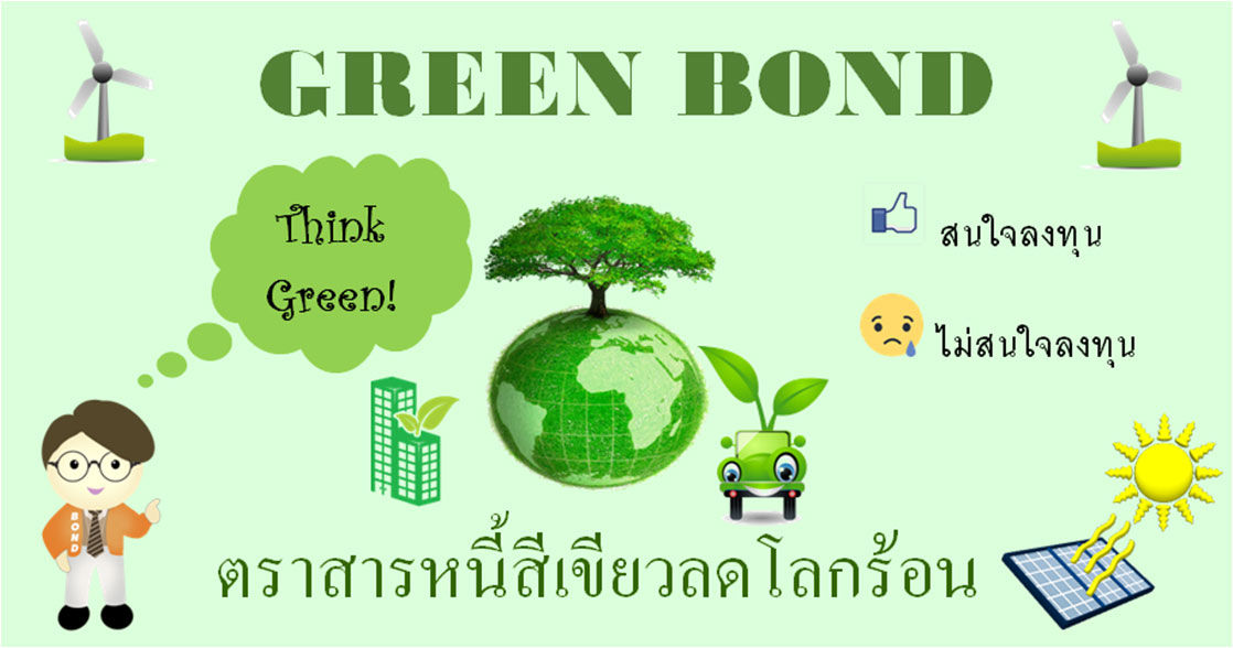 Bond Blogs Posted by:ThaiBMA Posted on: Mar 16, 2017 Share this post with ตราสารหนี้สีเขียว (Green Bond) ในปัจจุบันหลายประเทศได้ตระหนักถึงความสำคัญของการลดผลกระทบจากภาวะโลกร้อน รัฐบาลของประเทศต่างๆรวม 197 ประเทศ ได้ให้สัตยาบันในอนุสัญญาสหประชาชาติว่าด้วยการเปลี่ยนแปลงสภาพภูมิอากาศ (United Nation Framework Convention on Climate Change (UNFCCC)) ซึ่งมีจุดประสงค์ในการกำหนดนโยบายด้านสิ่งแวดล้อมให้ประเทศภาคีสมาชิกปฏิบัติตามเพื่อลดการปล่อยก๊าซเรือนกระจก ตราสารหนี้สีเขียว หรือ Green Bond ถือเป็นเครื่องมือทางการเงินอย่างหนึ่งที่มีส่วนช่วยสนับสนุนการลดภาวะโลกร้อน โดยมีวัตถุประสงค์เพื่อระดมทุนสำหรับโครงการต่างๆที่เป็นมิตรกับสิ่งแวดล้อม เช่น พลังงานสะอาด การฟื้นฟูสิ่งแวดล้อม การขนส่ง และอาคารสีเขียว เป็นต้น ตัวอย่างของการออก Green Bondในช่วง 1-2 ปีที่ผ่านมาได้แก่ ธนาคาร ABN AMRO ประเทศเนเธอร์แลนด์ ออก Green Bond เพื่อนำเงินไปปล่อยกู้แก่บริษัทที่ทำโครงการอาคารลดโลกร้อน โดยอาคารดังกล่าวจะต้องทำตามเป้าหมายที่กำหนด เช่นปล่อยก๊าซเรือนกระจก ไม่เกิน 1,322 ตันคาร์บอนภายใน 1 ปี เป็นต้น ทั้งนี้ มี Oekom Research ซึ่งเป็นองค์กรภายนอก (External Review) ทำหน้าที่ตรวจสอบให้เป็นไปตามหลักเกณฑ์ Green Bond Principal (GBP) Republic of France (รัฐบาลฝรั่งเศส) เร็วๆนี้ เพิ่งออก Green bond จำนวน 7,000 ล้านยูโร เพื่อระดมทุนสำหรับโครงการสิ่งแวดล้อม เช่น สิ่งปลูกสร้าง การขนส่ง พลังงานทางเลือก การอนุรักษ์ทรัพยากรธรรมชาติ และการควบคุมมลภาวะ เป็นต้น โดยมี VigeoEirisเป็นองค์กรภายนอกในการตรวจสอบ Iberdrola (การไฟฟ้าของประเทศสเปน) ออก Green bond จำนวน 1,000 ล้านยูโร เพื่อระดมทุนไปใช้ในโครงการพลังงานสะอาดและพลังงานทางเลือก เช่น ฟาร์มลม (wind farm) ในประเทศอังกฤษ สเปน และเยอรมัน โดย VigeoEiris เป็นองค์การภายนอกในการตรวจสอบ ทั้งนี้ กลุ่มนักลงทุนใน Green bond คือ นักลงทุนที่รักสิ่งแวดล้อม หรือได้รับสิทธิประโยชน์บางอย่าง เช่น สิทธิพิเศษทางภาษีจากการลงทุนในตราสารหนี้ดังกล่าว จากรายงานของ OECD ปี 2016 คาดว่าในอีก 8 ปีข้างหน้า ความต้องการลงทุนในโครงการลดก๊าซคาร์บอน สูงถึง 2.23 ล้านล้านดอลลาร์ ในขณะที่ปริมาณการออกGreen bond ทั่วโลกมีเพียง 4 หมื่นล้านเหรียญสหรัฐ โดยความต้องการที่เพิ่มสูงขึ้นนั้นเกิดจาก ประเทศภาคีสมาชิกภายใต้ข้อตกลง UNFCCC ได้มีการออกกฎหมายควบคุมการปล่อยก๊าซคาร์บอน เช่น การเก็บภาษีคาร์บอนในอัตราที่สูง ส่งผลให้ประเทศที่พัฒนาแล้วหลายประเทศเป็นผู้ลงทุนหลักในตลาด Green bond ตราสารหนี้ที่จะถือว่าเป็น Green bond ภายใต้มาตรฐานที่เรียกว่า “Green Bond Principles” ประกอบด้วย 4 ขั้นตอน ดังนี้ 1. Use of Proceeds คือ การกำหนดวัตถุประสงค์การใช้เงินทุนจากการออกตราสารหนี้สำหรับโครงการที่เป
