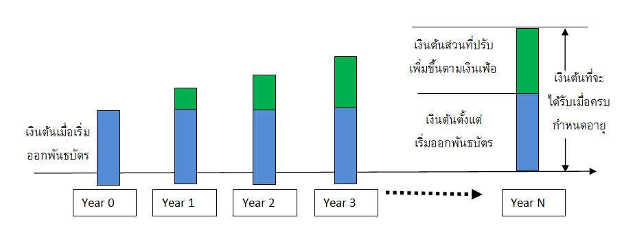Posted by:ThaiBMA Posted on: Dec 09 2016 Share this post with พันธบัตรชดเชยเงินเฟ้อ....เงินต้นไม่หาย แถมงอกเงยไม่น้อยหน้าเงินเฟ้อ ของสมัยนี้แพงจังถ้าลงทุนแล้วได้ผลตอบแทนตามเงินเฟ้อก็ดีสิ ถ้าเรานึกถึงราคาก๋วยเตี๋ยวที่เคยซื้อกินเมื่อตอนเด็กกับตอนนี้จะรู้สึกว่า ก๋วยเตี๋ยวราคาแพงขึ้นมาก แต่ก่อนกินบะหมี่ชามละ 20 บาทก็อิ่ม เดียวนี้ 40 บาทยังอยากสั่งเพิ่ม ทั้งนี้เพราะ ราคาของต่างๆแพงขึ้นหรืออีกนัยหนึ่งคือเงินมีค่าน้อยลงนั่นเอง เราเรียกการที่เงินมีค่าน้อยลงนี้ว่า”ภาวะเงินเฟ้อ” สำหรับนักลงทุนที่ต้องการป้องกันความเสี่ยงด้านเงินเฟ้อสามารถทำได้หลายวิธีเช่น ลงทุนในสินค้าโภคภัณฑ์ (ทองคำ เงิน น้ำมัน ฯลฯ) ลงทุนในอสังหาริมทรัพย์ (บ้านเช่า คอนโด ที่ดินเปล่า ฯลฯ) แต่วิธีเหล่านี้มีความเสี่ยงด้านอื่นๆ อีกมากและผลตอบแทนไม่ได้มีความสัมพันธ์กับอัตราเงินเฟ้อโดยตรง หากต้องการลงทุนให้ได้ผลตอบแทนที่สัมพันธ์กับอัตราเงินเฟ้อโดยตรง ขอแนะนำลงทุนใน “พันธบัตรรัฐบาลประเภทอัตราดอกเบี้ยแปรผันตามการเปลี่ยนแปลงของเงินเฟ้อ” หรือเรียกสั้นๆ ว่า“ILB” (Inflation Linked Bond) อัตราดอกเบี้ยจ่าย (Coupon) ของ ILB จะประกอบด้วย 2 ส่วนคือ อัตราดอกเบี้ยที่แท้จริง (Real yield)ซึ่งจะถูกกำหนดไว้คงที่แน่นอนค่าหนึ่งสำหรับ ILB แต่ละรุ่น และดอกเบี้ยจ่ายอีกส่วนหนึ่งจะขึ้นอยู่กับอัตราเงินเฟ้อในช่วงนั้น ซึ่งจะอ้างอิงกับดัชนีเงินเฟ้อทั่วไป (Headline inflation)นอกจากอัตราดอกเบี้ยจ่ายที่จะผันแปรตามเงินเฟ้อแล้ว เงินต้นยังได้รับการปกป้องจากเงินเฟ้อให้มีอำนาจซื้อเท่าเดิมอีกด้วย โดยจะปรับเพิ่มขึ้นตามเงินเฟ้อที่สูงขึ้น หรือคิดง่ายๆอย่างนี้ว่าILB เป็นพันธบัตรที่เงินต้นจะโตขึ้นตามเงินเฟ้อ ส่วนดอกเบี้ยจ่ายก็ปรับเพิ่มหรือลดตามอัตราเงินเฟ้อ และจ่ายเป็นร้อยละของเงินต้นที่โตขึ้นเรื่อยๆดังนั้นเมื่อเงินเฟ้อเพิ่มขึ้น ดอกเบี้ยจ่ายก็จะเพิ่มขึ้นตามไปด้วย อัตราดอกเบี้ยที่แท้จริง (Real coupon) คืออัตราดอกเบี้ยที่นักลงทุนจะได้รับจริงๆ หลังจากหักเงินเฟ้อออกแล้ว ไม่ว่าเงินเฟ้อจะสูงหรือต่ำแค่ไหน นักลงทุนจะได้รับดอกเบี้ยจ่ายจริงคงที่ตามที่กำหนดไว้เสมอ ซึ่งจะต่างจากพันธบัตรทั่วไปที่จะกำหนดอัตราดอกเบี้ยที่เป็นตัวเงินไว้ (Coupon)ซึ่งอัตราดอกเบี้ยที่นักลงทุนจะได้รับจริงอาจต่ำลงได้ถ้าเงินเฟ้อสูงขึ้น แผนภาพแสดงการปรับเพิ่มของเงินต้นที่จะแปรผันไปตามอัตราเงินเฟ้อ สำหรับท่านนักลงทุนที่สนใจ ILB ในช่วงนี้รัฐบาลยังไม่มีการประกาศขายเพิ่มเติม (ซื้อโดยตรงจากภาครัฐในตลาดแรก) แต่สามารถเข้าลงทุนได้โดยซื้อต่อจากนักลงทุนท่านอื่นหรือ