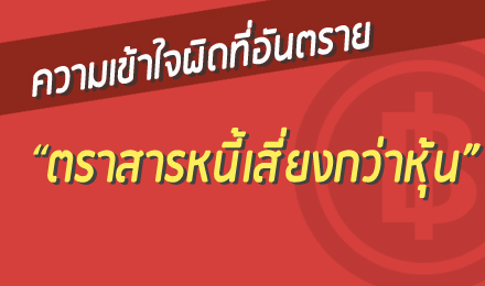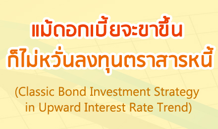 Bond Blogs Perpetual Bond พิเศษยังไง ทำไมจ่ายดอกเบี้ยสูงจัง Posted on January 21, 2018 at 12:00 AM by ThaiBMA Perpetual Bond เป็นตราสารหนี้ที่ได้รับความนิยมในปัจจุบัน เนื่องจากเป็นตราสารหนี้ที่ให้อัตราดอกเบี้ยสูงกว่าตราสารหนี้ทั่วไปมากซึ่งดอกเบี้ยที่สูงนี้ก็มาพร้อมกับคุณลักษณะต่าง ๆ Read More ตราสารหนี้บางรุ่นเลื่อนชำระดอกเบี้ยได้นะจ๊ะ Posted on January 16, 2018 at 12:00 AM by ThaiBMA ในยุคที่ดอกเบี้ยต่ำเช่นในปัจจุบัน ก็คงไม่ใช่เรื่องแปลกอะไรหากบริษัทที่มีชื่อเสียง ที่มี Rating สูง ออกตราสารหนี้ที่จ่ายดอกเบี้ยสูง Read More มูลค่าการซื้อขายตราสารหนี้ หาได้จากไหน? Posted on January 07, 2018 at 12:00 AM by ThaiBMA Bond&Ben ได้รับคำถาม Inbox เข้ามามากมาย น่าสนใจทุกคำถาม ทำให้รู้ว่านักลงทุนมีความสนใจตราสารหนี้ในมุมมองต่าง ๆ กันไม่น้อยเลย Read More ปลายปีอย่างนี้ เป็นจังหวะดีของการลงทุนในตราสารหนี้ไหมนะ Posted on December 22, 2017 at 12:00 AM by ThaiBMA คำถามที่มักจะถูกถามอยู่บ่อยๆ คือ ตอนนี้เป็นจังหวะที่ดีของการลงทุนในตราสารหนี้ไหม? เนื่องจากนักลงทุนเชื่อว่าจังหวะในการเข้าซื้อมีความสำคัญอย่างมากในการลงทุน Read More ความเข้าใจผิดที่อันตราย “ตราสารหนี้เสี่ยงกว่าหุ้น” Posted on December 16, 2017 at 12:00 AM by ThaiBMA หากเปรียบเทียบการลงทุนในตราสารหนี้กับหุ้น โดยหลักการแล้วการลงทุนในตราสารหนี้จะมีจุดเด่นคือความเสี่ยงต่ำกว่า Read More Financial Literacy ของไทย Posted on December 07, 2017 at 12:00 AM by ThaiBMA “การลงทุนมีความเสี่ยง ผู้ลงทุนโปรดศึกษาข้อมูลก่อนตัดสินใจลงทุน” เป็นประโยคที่นักลงทุนหลายท่านคุ้นเคย แต่จะมีกี่ท่านที่ใส่ใจกับประโยคสั้นๆนี้บ้างในบรรดาสินทรัพย์ต่างๆที่นักลงทุนเลือกลงทุนเพื่อกระจายความเสี่ยง Read More อันดับเครดิตต่ำหรือสูง สำคัญยังไง? Posted on December 01, 2017 at 12:00 AM by ThaiBMA สิ่งหนึ่งที่สำคัญในการลงทุนตราสารหนี้คือ อันดับเครดิต ยิ่งอันดับเครดิตสูงโอกาสการผิดนัดชำระก็ยิ่งต่ำ เป็นอะไรที่นักลงทุนรู้อยู่แล้ว Read More มีเงิน 5,000 บาท ลงทุนหุ้นกู้ได้ไหมนะ? Posted on November 21, 2017 at 12:00 AM by ThaiBMA นักลงทุนหลายๆท่านที่ติดตามบทความของThaiBMAก็คงได้ศึกษาเกี่ยวกับตราสารหนี้ทั้งภาครัฐและภาคเอกชนกันมาพอสมควรแล้ว ข้อดีหลายประการของตราสารหนี้ที่ทำให้หุ้นกู้เป็นที่สนใจแก่นักลงทุนรายย่อยหลายๆ ท่าน Read More หุ้นกู้แปลงสภาพ เจ้าหนี้ที่กลายร่างเป็นเจ้าของได้ (ตอนที่ 2) Posted on November 16, 2017 at 12:00 AM by ThaiBMA จากบทความ “อะไรคือหุ้นกู้แปลงสภาพ (Convertible Bond)”เราได้ทราบถึงข้อดีของการลงทุนในหุ้นกู้แปลงสภาพไปแล้ว ในบทความนี้เรามาจะมาทำความรู้จักหุ้นกู้แปลงสภาพในรายละเอียดเพิ่มเติมกัน Read More สมาคมตลาดตราสารหนี้ไทย (ThaiBMA) คือใคร ทำอะไรกัน? Posted on November 07, 2017 at 12:00 AM by ThaiBMA “สมาคมตลาดตราสารหนี้ไทย” หรือ “ThaiBond Market Association” เรียกย่อๆ ว่าThaiBMAนัก