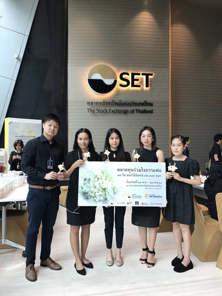 ThaiBMA Gallery โครงการ ตลาดทุนร่วมใจถวายพ่อ ๙๙ วัน ดอกไม้จันทน์ ๙๙,๙๙๙ ดอก วันอังคารที่ 6 มิ.ย. 2560 เวลา11.00-13.00 น. สถานที่ณ บริเวณโถงชั้น ๑ อาคาร A ตลาดหลักทรัพย์แห่งประเทศไทย รายละเอียด สืบเนื่องจากโครงการ “ตลาดทุนร่วมใจถวายพ่อ ๙๙ วัน ดอกไม้จันทน์ ๙๙,๙๙๙ ดอก" ที่จัดขึ้นโดยมูลนิธิตลาดหลักทรัพย์แห่งประเทศไทย ร่วมกับสภาธุรกิจตลาดทุนไทย (FETCO) ทางสมาคมตลาดตราสารหนี้ไทยได้ส่งตัวแทนเข้ารับการฝึกอบรมประดิษฐ์ดอกไม้จันทน์ ในวันอังคารที่ ๐๖/๐๖/๒๕๖๐ เวลา ๑๑.๐๐-๑๓.๐๐ น. ณ บริเวณโถงชั้น ๑ อาคาร A ตลาดหลักทรัพย์แห่งประเทศไทย Back to Main Gallery