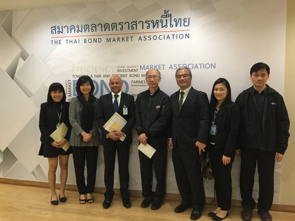 ThaiBMA Gallery ผู้บริหารจาก บล.เอเอฟเอส (ประเทศไทย) จก. เข้าพบผู้บริหาร ThaiBMA วันที่ 8 พฤศจิกายน 2559 เวลา- สถานที่ ณ สมาคมตลาดตราสารหนี้ไทย ชั้น 10 อาคารต้นสนทาวเวอร์ รายละเอียด ผู้บริหารจาก บล.เอเอฟเอส (ประเทศไทย) จก. โดย Mr.Russell Fernando Chief Executive และ Mr.Anthony See Managing Director เข้าพบผู้บริหาร ThaiBMA เพื่อขอรับทราบข้อมูลเกี่ยวกับตลาดตราสารหนี้ไทย Back to Main Gallery