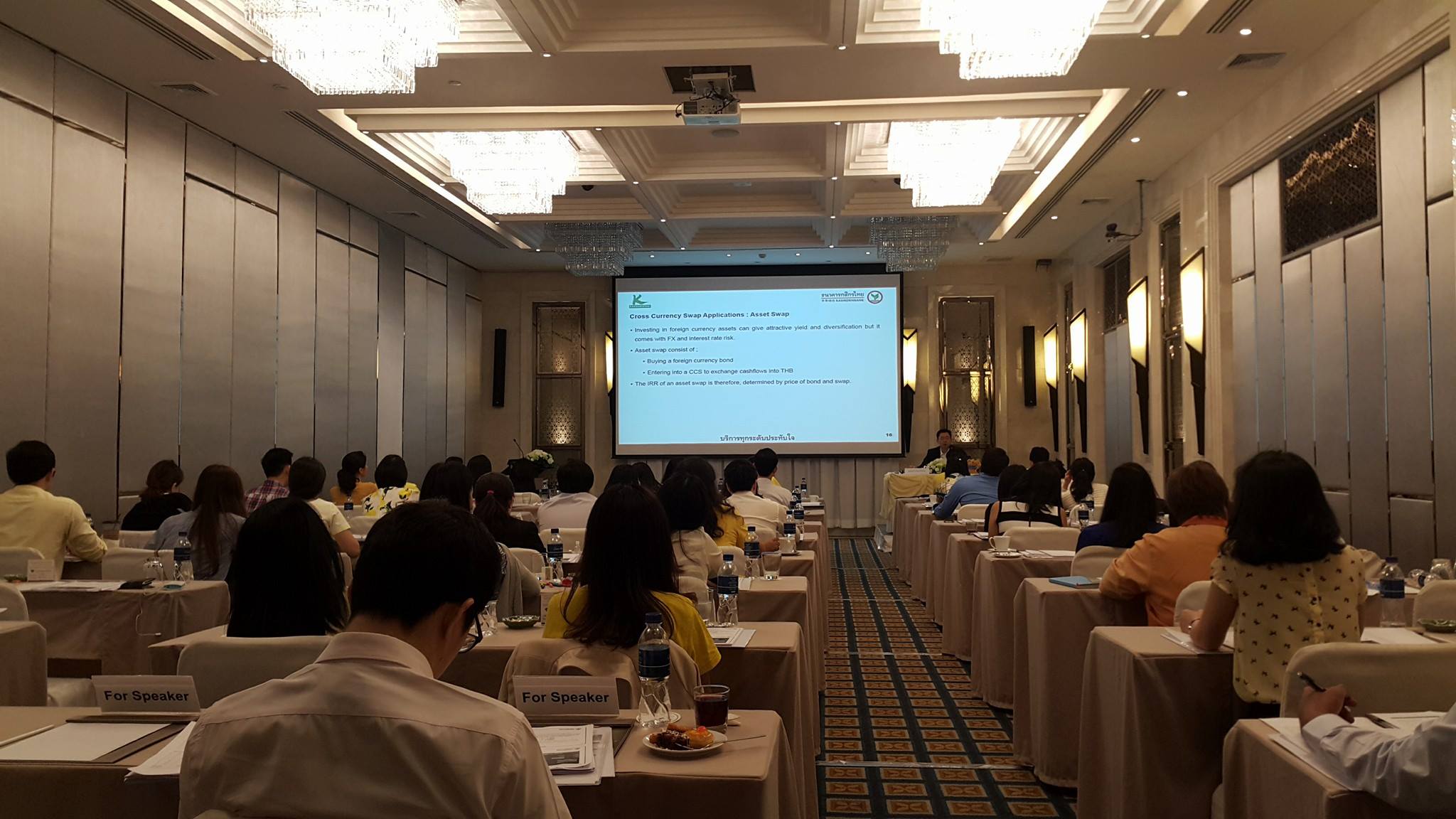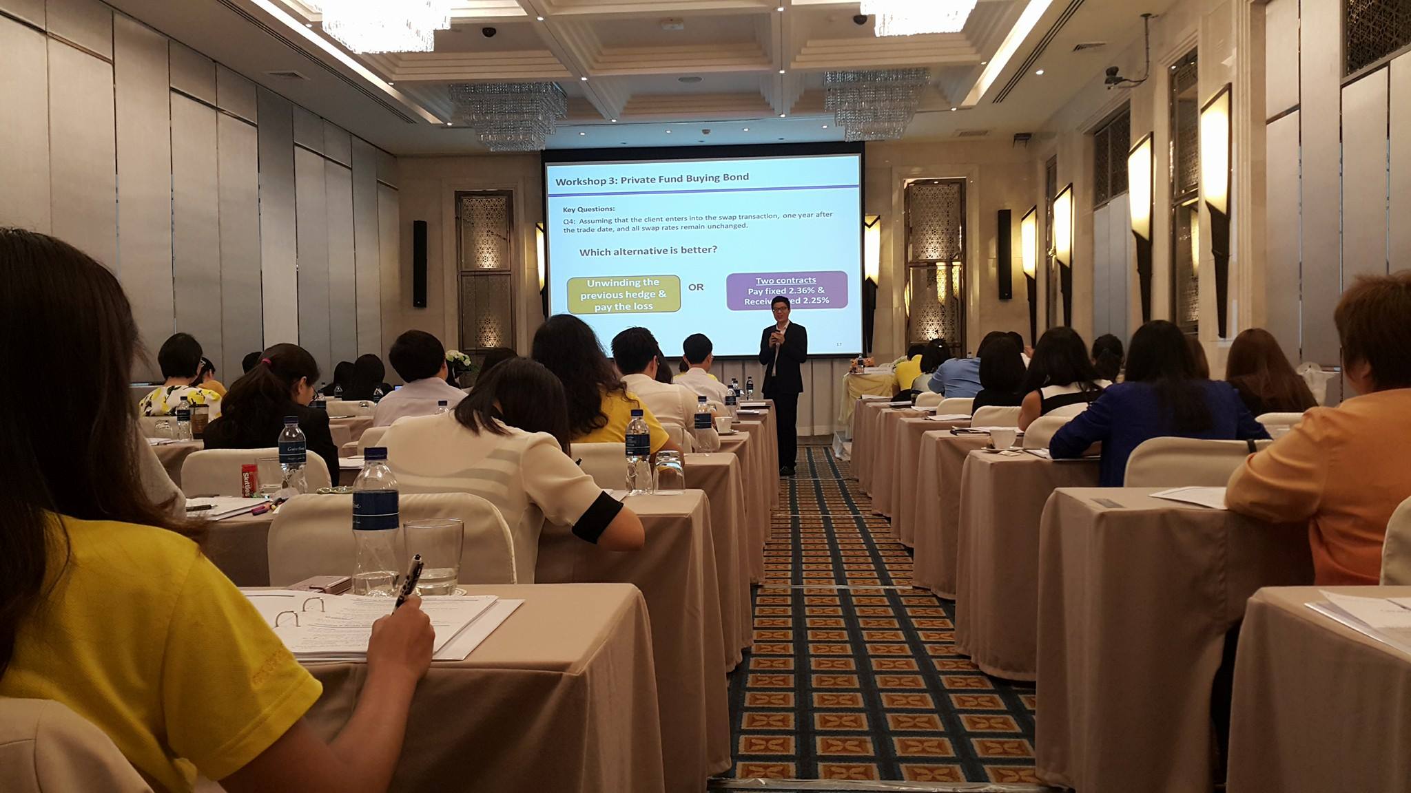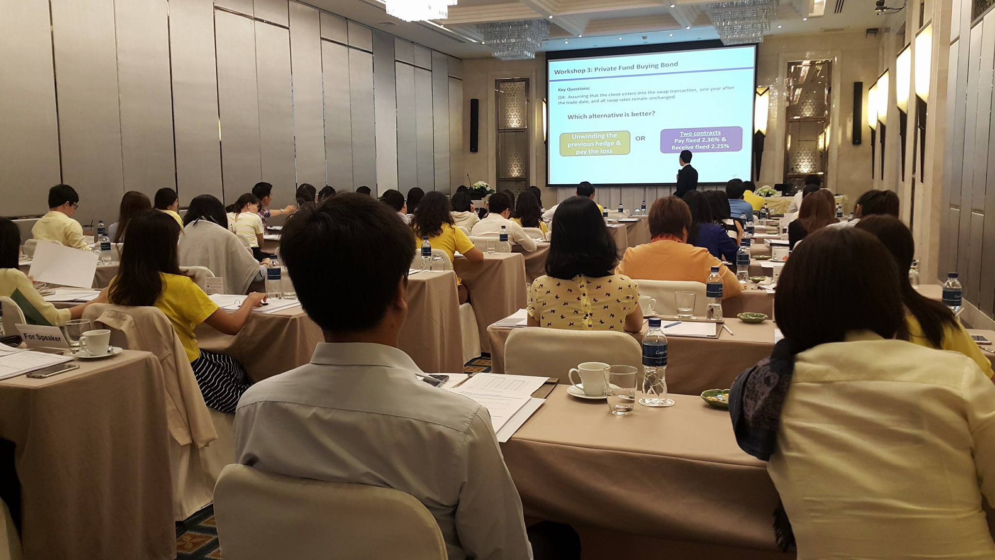 ThaiBMA Gallery การอบรมหลักสูตร "Derivatives and its Applications in Thailand" วันที่ 9-10 มิถุนายน 2559 เวลา09.00-17.00 น. สถานที่ ณ โรงแรมแกรนด์ เซ็นเตอร์พอยต์ เทอร์มินอล 21 ค่าธรรมเนียม25,000.00 บาท รายละเอียด การจัดอบรมหลักสูตร "Derivatives and its Applications in Thailand" โดย ดร.รัฐชัย ศีลาเจริญ อาจารย์ประจำคณะพาณิชย์ศาสตร์และการบัญชี จุฬาฯ - การอบรมวันแรก Case Study: IRS Product โดย คุณสกุล บุญดีสกุลโชค - การอบรมวันแรก Case Study: CCS โดย คุณกิตติ เจริญกิจชัยชนะ ผู้บริการกลุ่มงานขายผลิตภัณฑ์ทางการเงิน ธนาคารกสิกรไทย จำกัด (มหาชน) - การอบรมช่วงเช้าวันที่ 2 มาทำความรู้จักกับ "ISDA Master Agreement" โดยผู้เชี่ยวชาญ คุณเบญจ สุพรรณกุล Partner จาก Baker and McKenzie Ltd. - การอบรมช่วงบ่ายวันที่ 2 การแชร์ประสบการณ์ในตลาดด้าน Interest Rate Trading ในมุมมองของ trader ผู้คร่ำหวอดในวงการ คุณสงวน จุงสกุล ผู้อำนวยการอาวุโส ผู้บริหารฝ่าย ทีม Money Market - Bond สายงานธุรกิจตลาดเงิน-ตลาดทุน ธนาคารกรุงไทย จำกัด (มหาชน) - ช่วงสุดท้ายของการอบรมหลักสูตร Derivatives... ปิดท้ายด้วยหัวข้อ "Derivatives Accounting and case study" โดย ดร.สุวัจชัย เมฆะอำนวยชัย Partner/Advisory Services บริษัท Deloitte Touche Tohmatsu Jaiyos Audit Co., Ltd. Back to Main Gallery