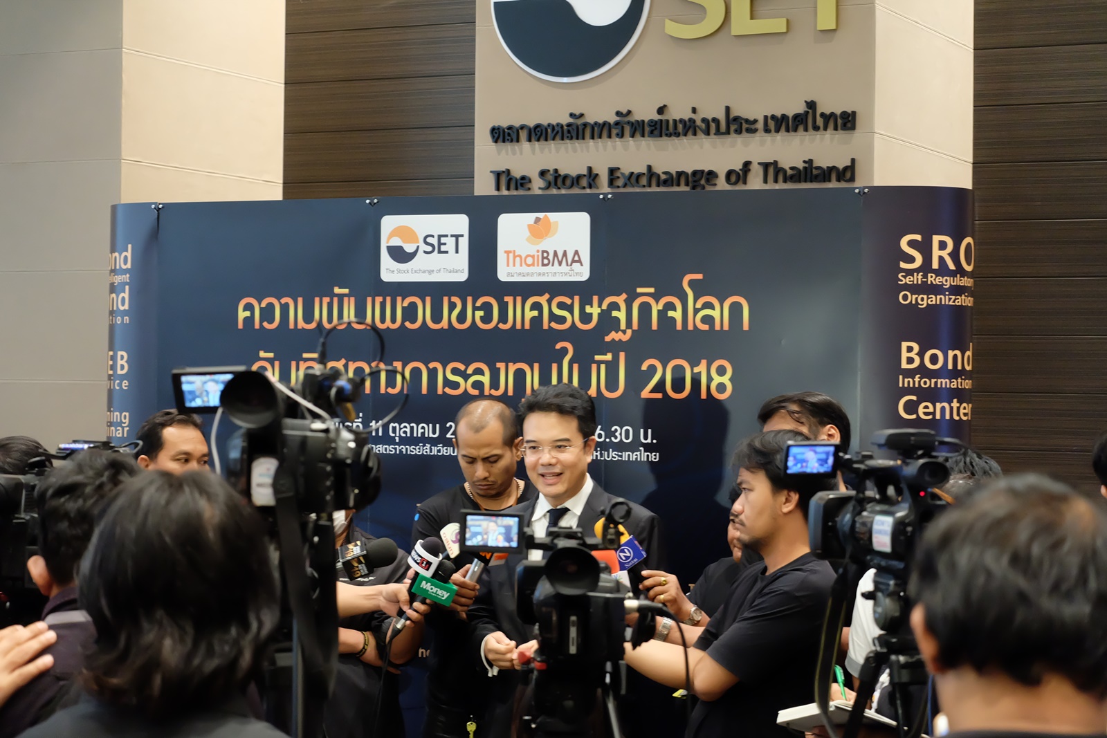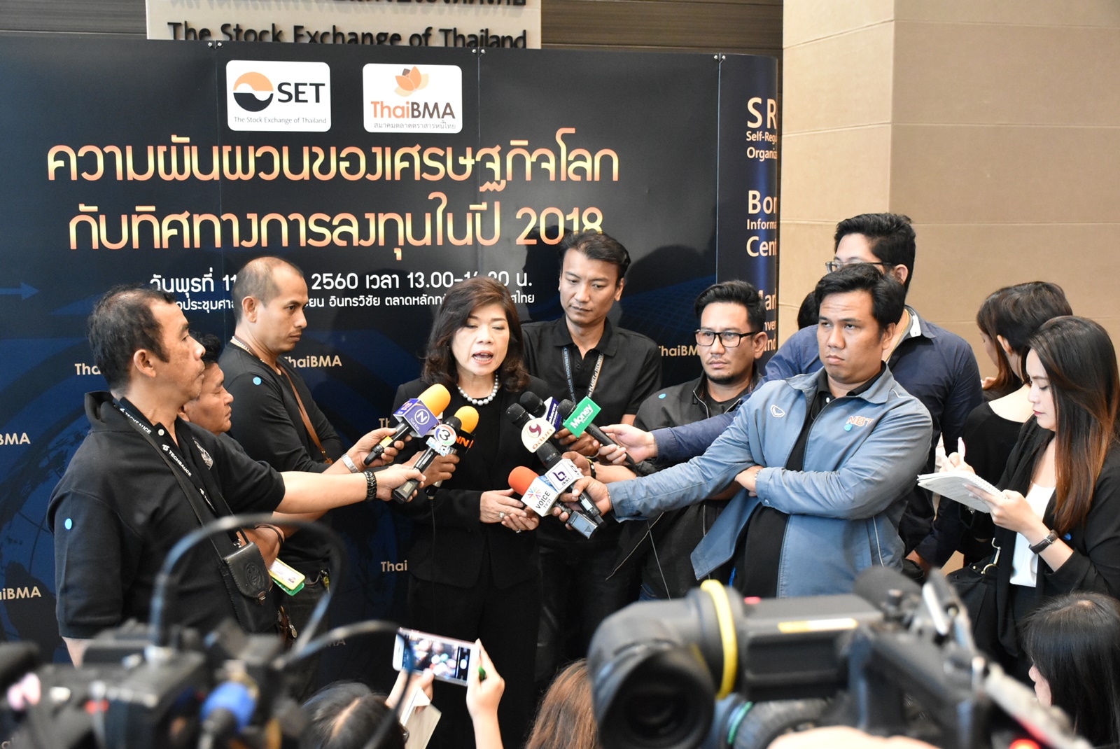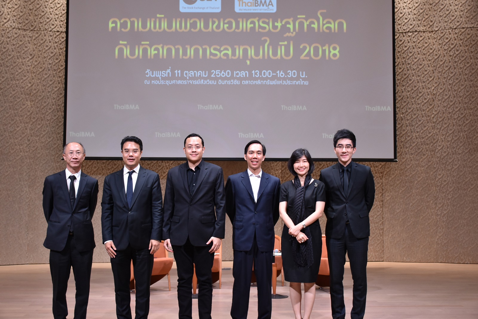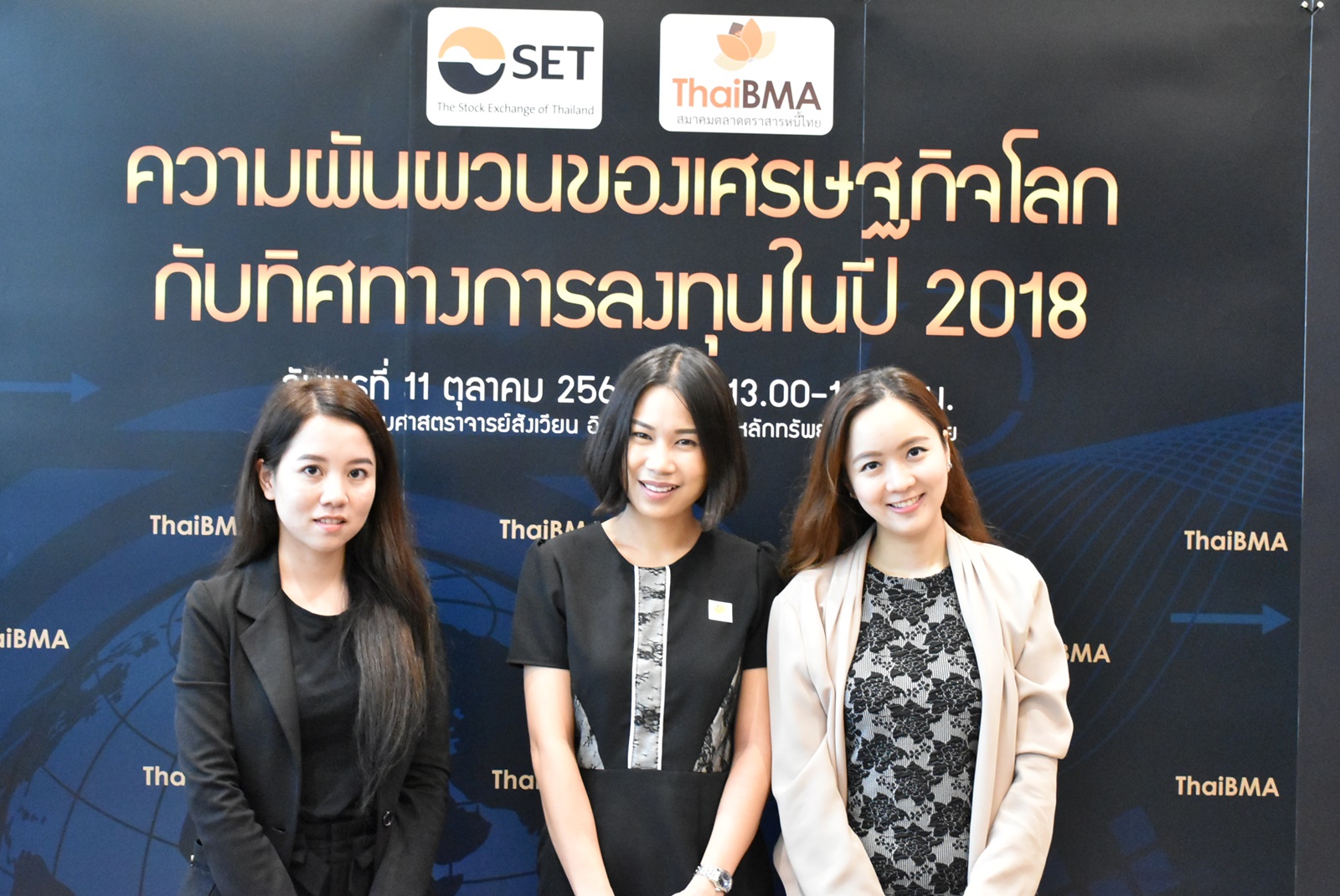 ThaiBMA Gallery สัมมนา เรื่อง “ความผันผวนของเศรษฐกิจโลก กับทิศทางการลงทุนในปี 2018” วันที่ 11 ตุลาคม 2560 เวลา 13.00-16.30 น. สถานที่ ณ หอประชุมศาสตราจารย์สังเวียนอินทรวิชัย ตลาดหลักทรัพย์แห่งประเทศไทย (ข้างสถานทูตจีน) รายละเอียด สัมมนา เรื่อง “ความผันผวนของเศรษฐกิจโลก กับทิศทางการลงทุนในปี 2018” วันพุธที่ 11 ตุลาคม 2560 เวลา 13.00-16.30 น. ณ หอประชุมศาสตราจารย์สังเวียนอินทรวิชัย ตลาดหลักทรัพย์แห่งประเทศไทย (ข้างสถานทูตจีน) เสวนา เทคนิคลงทุนตราสารหนี้แบบมือโปร โดยคุณธาดา พฤฒิธาดา กรรมการผู้จัดการ สมาคมตลาดตราสารหนี้ไทย คุณสมิทธิ์ พนมยงค์ ประธานเจ้าหน้าที่บริหาร บลจ.ไทยพาณิชย์ ดำเนินรายการโดย คุณวรวรรณ ตินะลา พิธีกรจาก Money Channel Back to Main Gallery