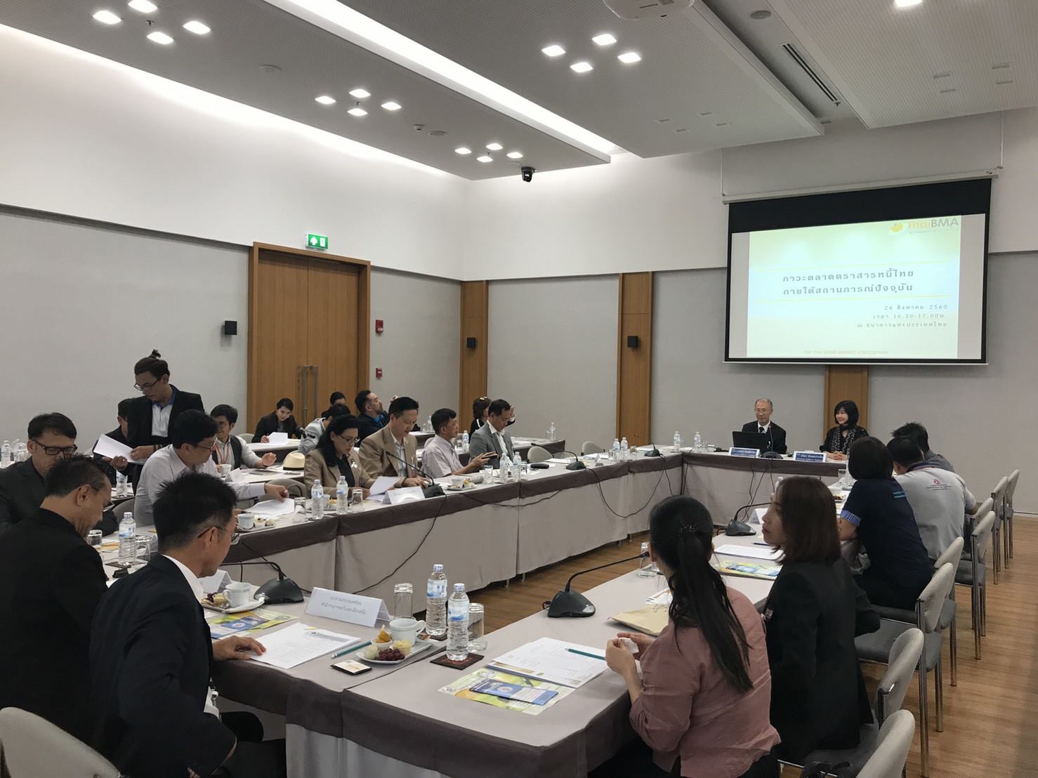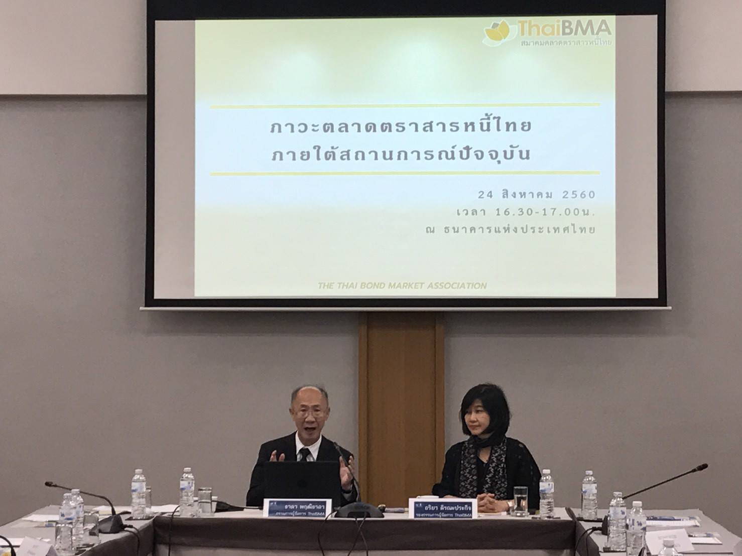 ThaiBMA Gallery งานเสวนาภาวะตลาดตราสารหนี้ไทยภายใต้สถานการณ์ปัจจุบันกับ 8 องค์กรเศรษฐกิจ วันที่ 24 สิงหาคม 2560 เวลา16.30-17.00 น. สถานที่ ณ ธนาคารแห่งประเทศไทย จ.ขอนแก่น รายละเอียด Back to Main Gallery