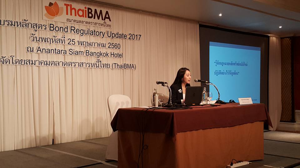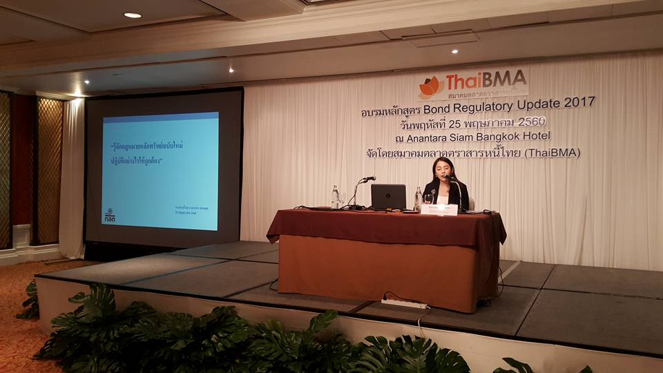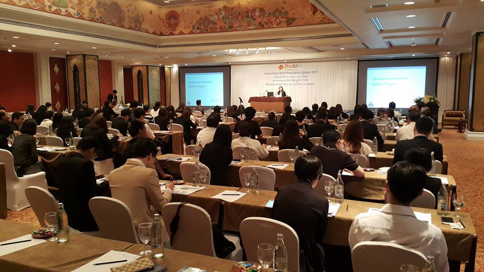 ThaiBMA Gallery งานอบรมหลักสูตรความรู้ด้านกฎระเบียบในตลาดตราสารหนี้ (Bond Regulatory Update 2017) วันพฤหัสบดีที่ 25 พ.ค. 2560 เวลา08.30-16.30 น. สถานที่ณ Anantara Siam Bangkok Hotel ห้อง Ballroom ชั้น G รายละเอียด Back to Main Gallery