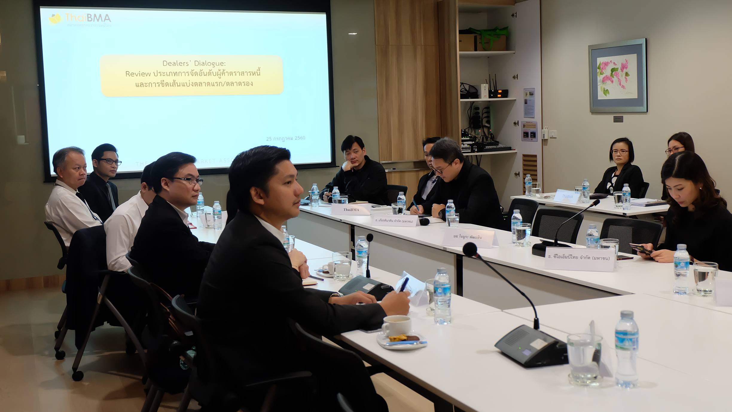 ThaiBMA Gallery Dealers' Dialogue : Review ประเภทการจัดลำดับผู้ค้าตราสารหนี้และการขีดเส้นแบ่งตลาดแรก/รอง วันที่ 25 กรกฎาคม 2560 เวลา สถานที่ณ ThaiBMA ชั้น 10 อาคารต้นสนทาวเวอร์ รายละเอียด Back to Main Gallery