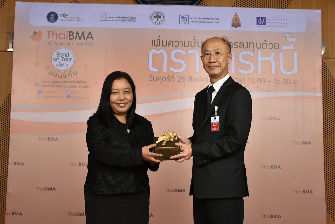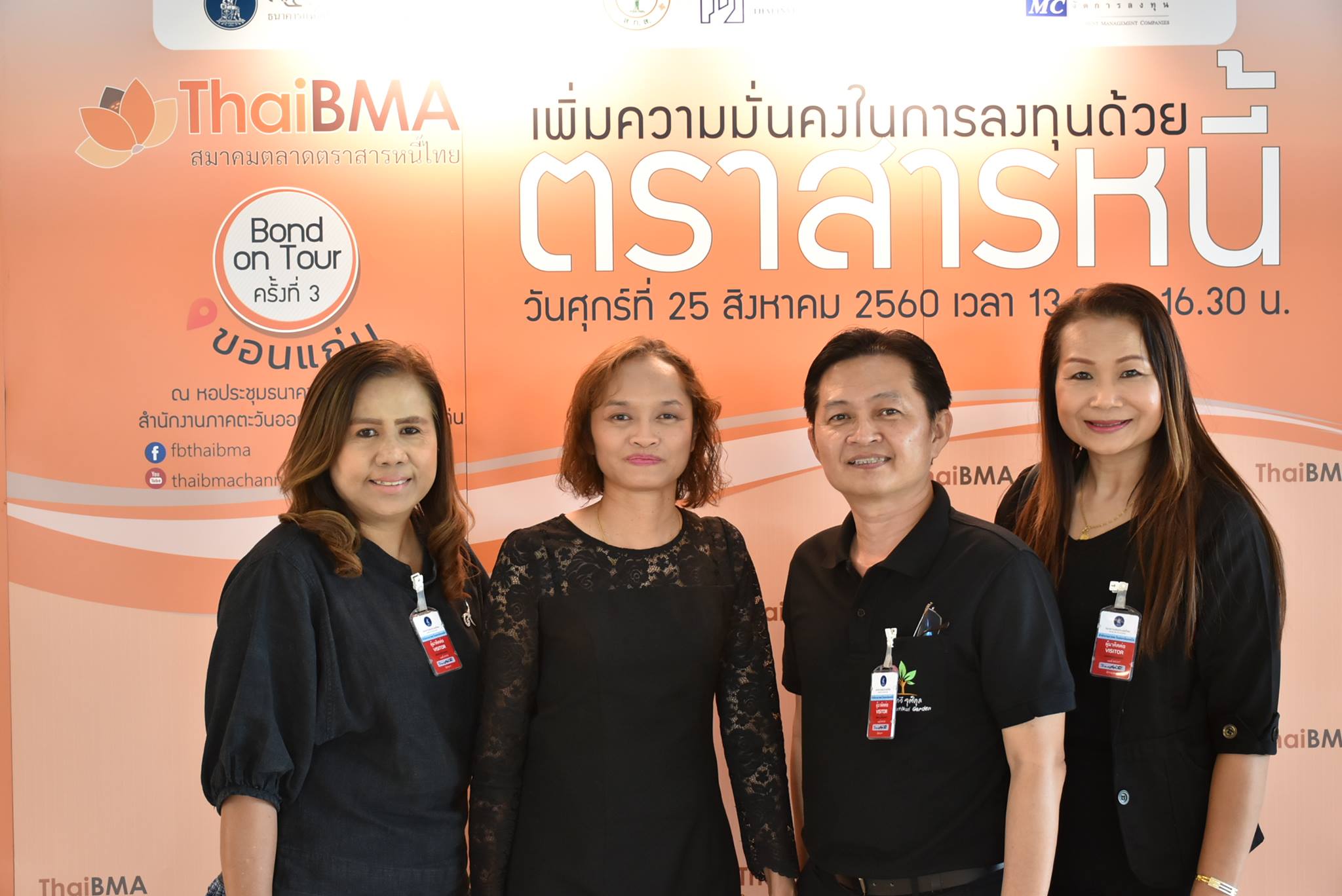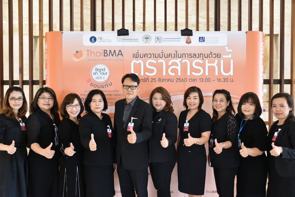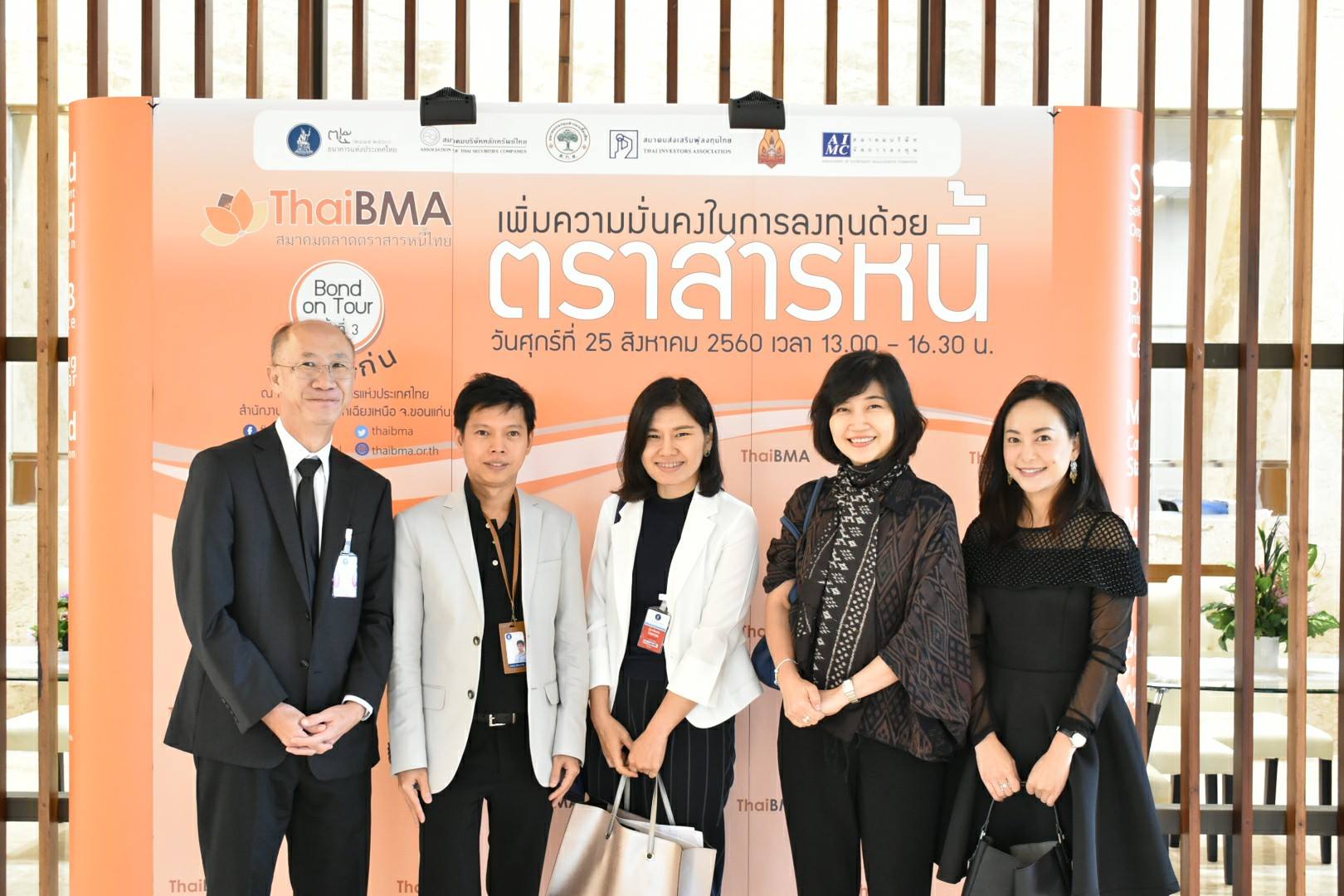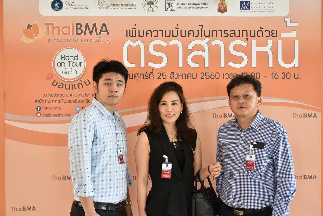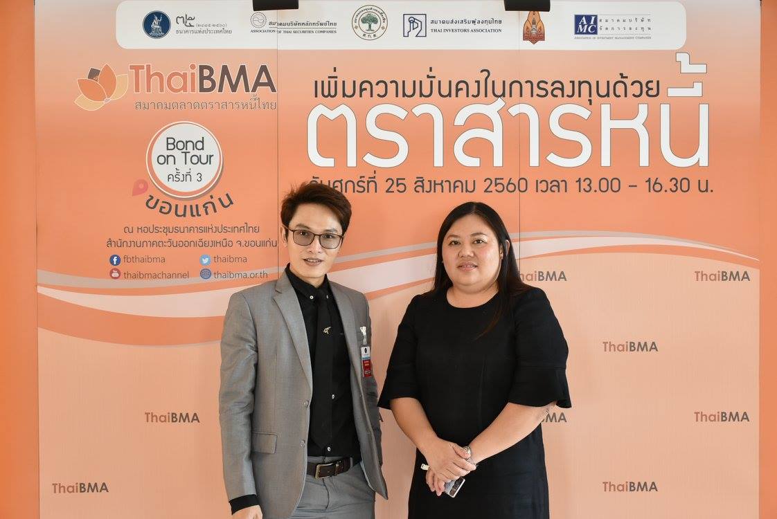ThaiBMA Gallery เสวนา "เพิ่มความมั่นคงของผลตอบแทนด้วยการลงทุนหุ้นกู้" วันที่ 25 สิงหาคม 2560 เวลา สถานที่ หอประชุมปัญญาวิจิตร ธนาคารแห่งประเทศไทย สำนักงานภาคตะวันออกเฉียงเหนือ จังหวัดขอนแก่น รายละเอียด ThaiBMA ร่วมกับธนาคารแห่งประเทศไทย สำนักงานภาคตะวันออกเฉียงเหนือ จังหวัดขอนแก่น จัดงานสัมมนา Session 1 ออมใน (ตราสาร) หนี้ ก็มีดอกเบี้ยงอกเงยได้ โดย คุณธาดา พฤฒิธาดา กรรมการผู้จัดการ ThaiBMA และ คุณอริยา ติรณะประกิจ รองกรรมการผู้จัดการ ThaiBMA Session 2 เพิ่มความมั่นคงของผลตอบแทนด้วยการลงทุนหุ้นกู้ (ลงทุนอย่างวิน&วิน) โดยดร.วิน อุดมรัชตวนิชย์ ประธานกรรมการบริหาร บริษัทหลักทรัพย์ เคทีบี (ประเทศไทย) จำกัด และ คุณวิน พรหมแพทย์ ประธานเจ้าหน้าที่การลงทุน บริษัทหลักทรัพย์จัดการกองทุนซีไอเอ็มบี พรินซิเพิล จำกัด ดำเนินการเสวนาโดย คุณอริยา ติรณะประกิจ รองกรรมการผู้จัดการ ThaiBMA Back to Main Gallery