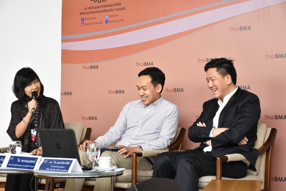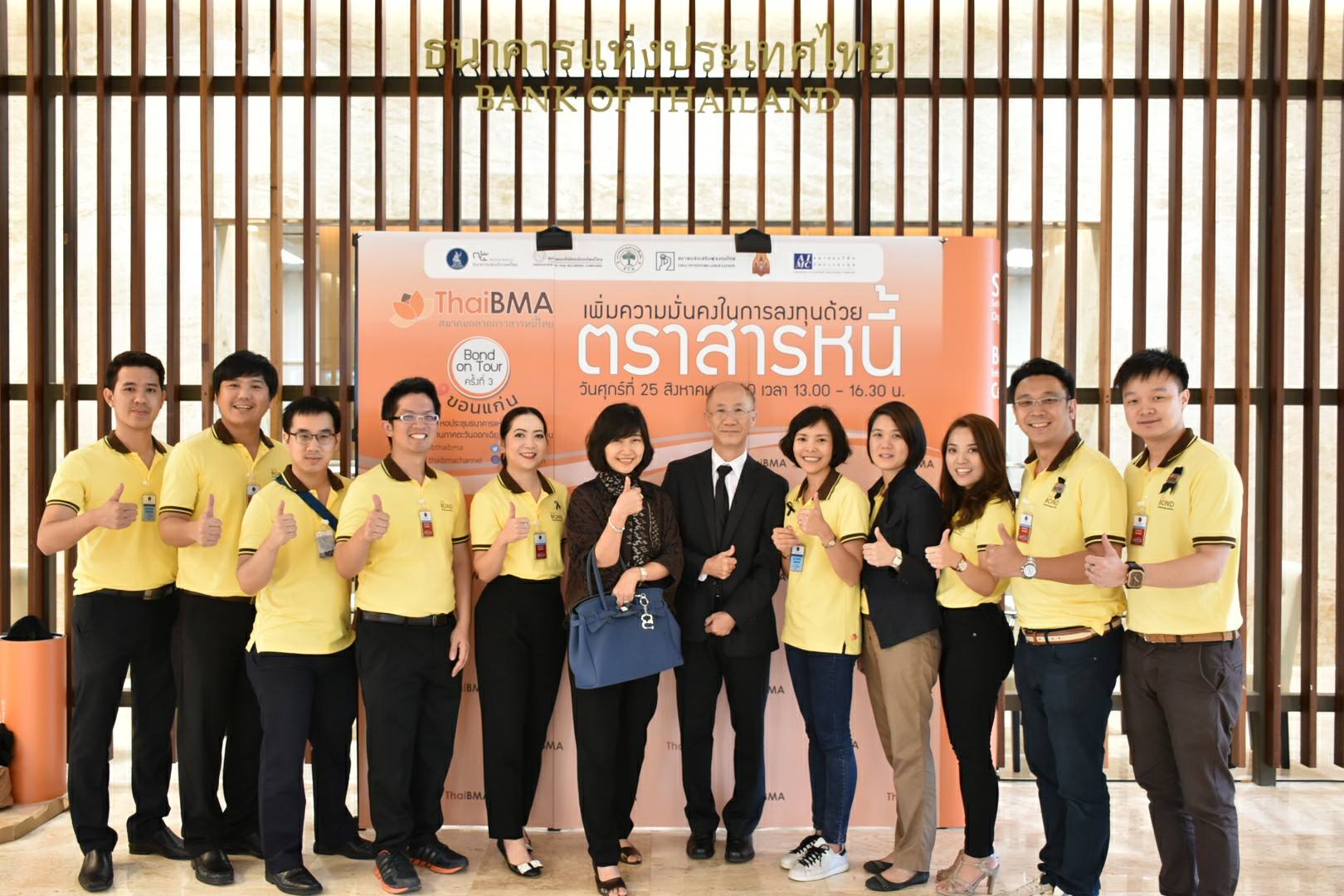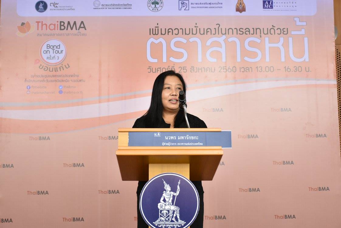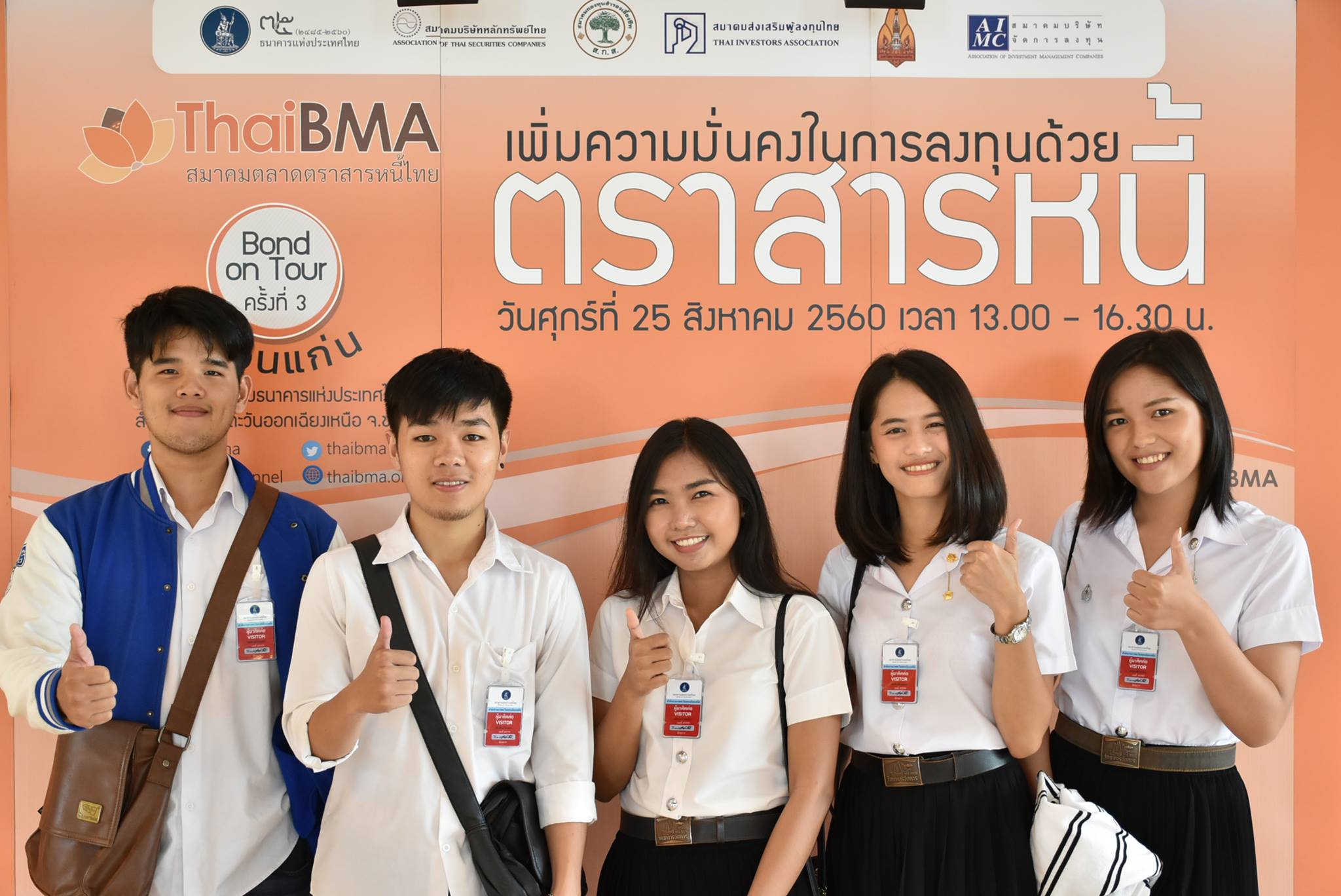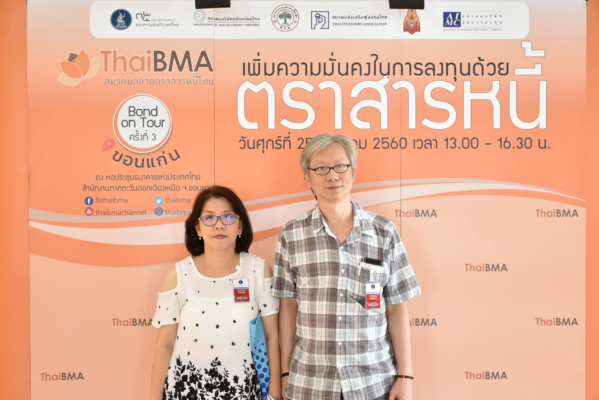 ThaiBMA Gallery เสวนา "เพิ่มความมั่นคงของผลตอบแทนด้วยการลงทุนหุ้นกู้" วันที่ 25 สิงหาคม 2560 เวลา สถานที่ หอประชุมปัญญาวิจิตร ธนาคารแห่งประเทศไทย สำนักงานภาคตะวันออกเฉียงเหนือ จังหวัดขอนแก่น รายละเอียด ThaiBMA ร่วมกับธนาคารแห่งประเทศไทย สำนักงานภาคตะวันออกเฉียงเหนือ จังหวัดขอนแก่น จัดงานสัมมนา Session 1 ออมใน (ตราสาร) หนี้ ก็มีดอกเบี้ยงอกเงยได้ โดย คุณธาดา พฤฒิธาดา กรรมการผู้จัดการ ThaiBMA และ คุณอริยา ติรณะประกิจ รองกรรมการผู้จัดการ ThaiBMA Session 2 เพิ่มความมั่นคงของผลตอบแทนด้วยการลงทุนหุ้นกู้ (ลงทุนอย่างวิน&วิน) โดยดร.วิน อุดมรัชตวนิชย์ ประธานกรรมการบริหาร บริษัทหลักทรัพย์ เคทีบี (ประเทศไทย) จำกัด และ คุณวิน พรหมแพทย์ ประธานเจ้าหน้าที่การลงทุน บริษัทหลักทรัพย์จัดการกองทุนซีไอเอ็มบี พรินซิเพิล จำกัด ดำเนินการเสวนาโดย คุณอริยา ติรณะประกิจ รองกรรมการผู้จัดการ ThaiBMA Back to Main Gallery