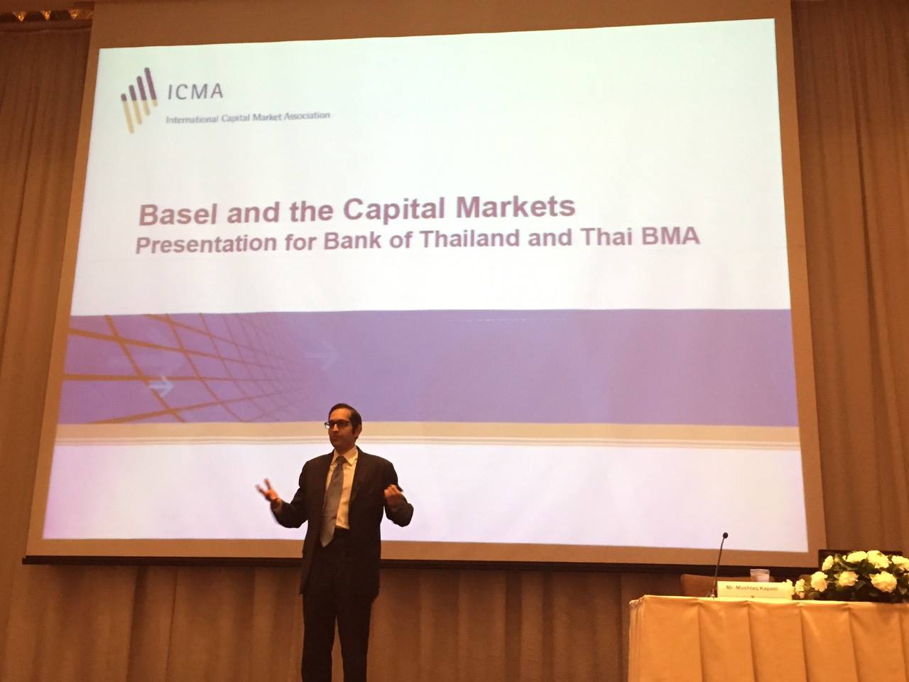 ThaiBMA Gallery การอบรม Trader's Refresher Course วันเสาร์ที่ 5 มีนาคม 2559 เวลา- สถานที่ห้องแกรนด์บอลรูม โรงแรมเชอราตันแกรนด์ สุขุมวิท กรุงเทพฯ รายละเอียด ThaiBMA จัดอบรม Bond Trader Refresher Course วันที่ 5 มีนาคม 2559 จัดที่ ห้องแกรนด์บอลรูม โรงแรมเชอราตันแกรนด์ สุขุมวิท กรุงเทพฯ Bond Trader Refresher Course หลักสูตรอบรมทบทวนความรู้ผู้ค้าตราสารหนี้เพื่อติดตามพัฒนาการและกฎเกณฑ์ใหม่ๆของตลาดตราสารหนี่.. ในวันนี้ เริ่มจากหัวข้อ BASEL III and the bond market โดยคุณ Mushtaq Kapasi, Chief rep, Asiapacific จาก International Capital Market Association (ICMA) รวมถึง Update พัฒนาการและกฎเกณฑ์ในตลาดตราสารหนี้ โดยวิทยากรจาก กลต. ธปท. และThaiBMA มี Trader มืออาชีพในวงการสนใจเข้าร่วมกันอย่างคับคั่ง Back to Main Gallery