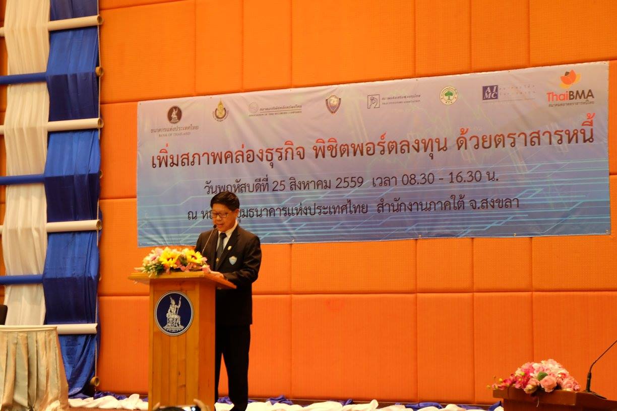 ThaiBMA Gallery งานสัมมนา เพิ่มสภาพคล่องธุรกิจ พิชิตพอร์ตลงทุน ด้วยตราสารหนี้ วันพฤหัสบดีที่ 25 สิงหาคม 2559 เวลา- สถานที่ณ หอประชุมธนาคารแห่งประเทศไทย สำนักงานภาคใต้ จังหวัดสงขลา รายละเอียดงานสัมมนาสำหรับบริษัทหรือองค์กรที่ต้องการระดมทุนและผู้สนใจลงทุนทั่วไป v Back to Main Gallery