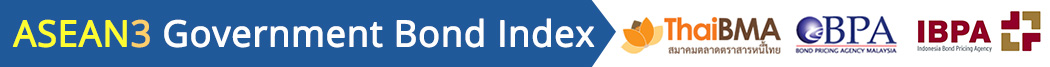 About ASEAN3 Over the past decade, local currency bond markets in the Association of Southeast Asian Nations (ASEAN) have been growing and strengthening greatly. The investment universe has become larger while the diversity of issuers has increased, market liquidity deepened and investors’ diversification benefits improved. As at end of 2017, the combined market size in dollar terms reached USD1.229 trillion from a mere USD569.01 billion in 2006. Foreign holdings of debt securities outstanding have likewise increased in tandem from year to year. With this background, the need for reliable and sophisticated data sets to measure and track market performance has been equally important. This environment formed a perfect setting for cooperation between the bond pricing agencies in the ASEAN region. Beginning since 2012, Indonesia Bond Pricing Agency, Bond Pricing Agency Malaysia and the Thai Bond Market Association have been collaborating to share and promote market data. In 2017, these three entities came together to develop a new bond index called the ASEAN3 Government Bond Index (A3GBI). The A3GBI tracks the local currency denominated government bonds in the 3 largest markets of the ASEAN region which are Indonesia, Malaysia and Thailand. Daily pricing is sourced from the accredited bond pricing providers in each country - Indonesia Bond Pricing Agency Bond Pricing Agency Malaysia and the Thai Bond Market Association Compared to other similar indices, the A3GBI incorporates independent data of the highest quality which is fully verifiable. The index provides a relevant benchmark that is stable, comparable to other markets, easily replicable and clearly measureable in assessing investment opportunities. Government Bond Index Note : 1. Equal weighting approach for the ASEAN Government Bond Index (main index). 2. Market capitalization approach for the Ringgit , Rupiah , Baht Government Bond Index (Sub index). 3. Base date as of 1st January 2017 equal 100. 4. Download A3GBI Factsheet. Thailand The Thai Bond Market Association (ThaiBMA) Malaysia Bond Pricing Agency Malaysia (BPAM) Indonesia Indonesia Bond Pricing Agency (IBPA)