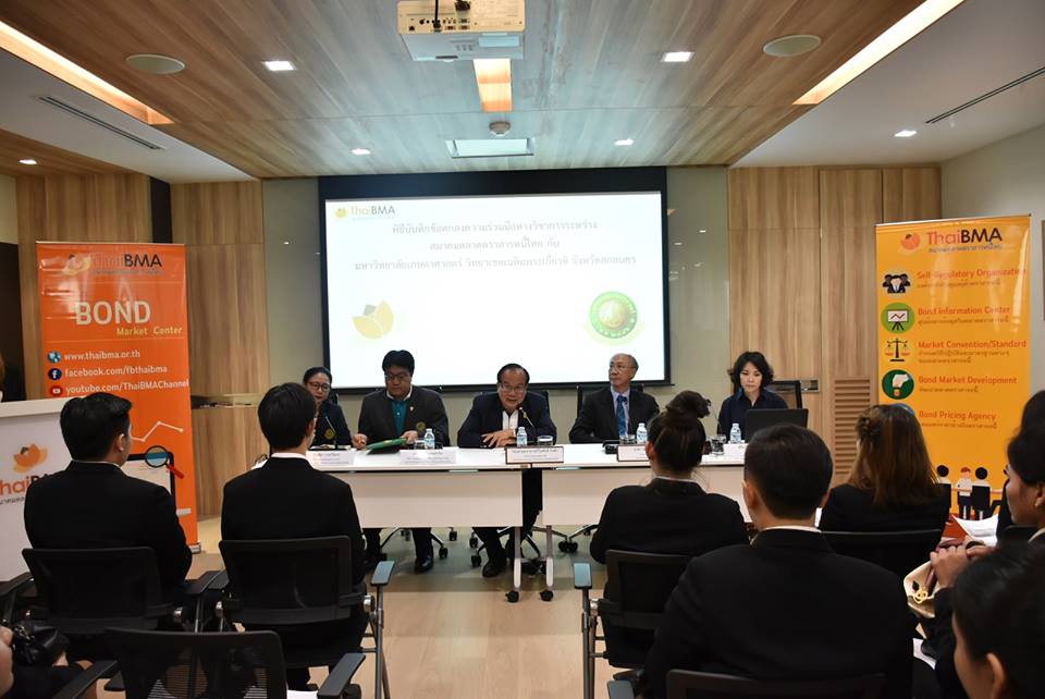 ThaiBMA Gallery บันทึกข้อตกลงความร่วมมือทางวิชาการระหว่างสมาคมตลาดตราสารหนี้ไทย กับมหาวิทยาลัยเกษตรศาสตร์ วิทยาเขตเฉลิมพระเกียรติ จังหวัดสกลนคร วันที่1 กุมภาพันธ์ 2561 เวลา สถานที่ณ สมาคมตลาดตราสารหนี้ไทย ชั้น 10 อาคารต้นสนทาวเวอร์ รายละเอียด บันทึกข้อตกลงความร่วมมือทางวิชาการระหว่างสมาคมตลาดตราสารหนี้ไทย กับมหาวิทยาลัยเกษตรศาสตร์ วิทยาเขตเฉลิมพระเกียรติ จังหวัดสกลนคร ระหว่าง สมาคมตลาดตราสารหนี้ไทย โดย คุณธาดา พฤฒิธาดา กรรมการผู้จัดการ กับ มหาวิทยาลัยเกษตรศาสตร์ วิทยาเขตเฉลิมพระเกียรติ จังหวัดสกลนคร โดย รองศาสตราจารย์วิไลศักดิ์ กิ่งคำ ตำแหน่ง รักษาราชการแทนรองอธิการบดีวิทยาเขตเฉลิมพระเกียรติ จังหวัดสกลนคร และบรรยายให้ความรู้เกี่ยวกับตลาดตราสารหนี้แก่นักศึกษา Back to Main Gallery