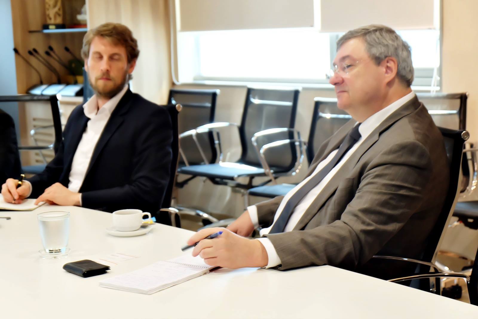 ThaiBMA Gallery ตัวเเทนจากสถานเอกอัครราชทูตสหรัฐอเมริกาประจำประเทศไทย เข้าหารือและแลกเปลี่ยนความคิดเห็นกับสมาคมตลาดตราสารหนี้ไทย เรื่องภาพรวมของตลาดตราสารหนี้ไทย วันที่5 พฤศจิกายน 2561 เวลา สถานที่ณ สมาคมตลาดตราสารหนี้ไทย ชั้น 10 อาคารต้นสนทาวเวอร์ รายละเอียด วันที่ 5 พฤศจิกายน พ.ศ.2561 ตัวเเทนจากสถานเอกอัครราชทูตสหรัฐอเมริกาประจำประเทศไทย ประกอบไปด้วย Mr.Douglas J. Apostol - Counselor for Economic Affairs, Mr.Jacob T. Schultz - First Secretary เเละ Mr.Khanchit Assavasamrarn - Economic Specialist เข้าหารือและแลกเปลี่ยนความคิดเห็นกับสมาคมตลาดตราสารหนี้ไทย เรื่องภาพรวมของตลาดตราสารหนี้ไทย Back to Main Gallery