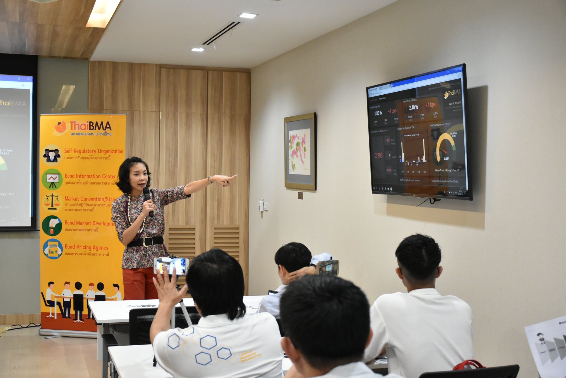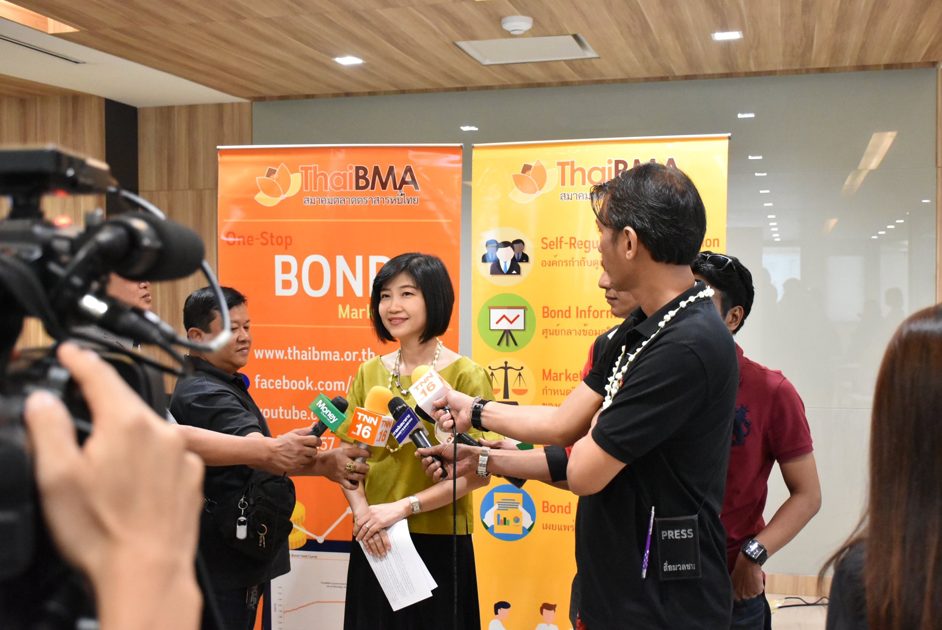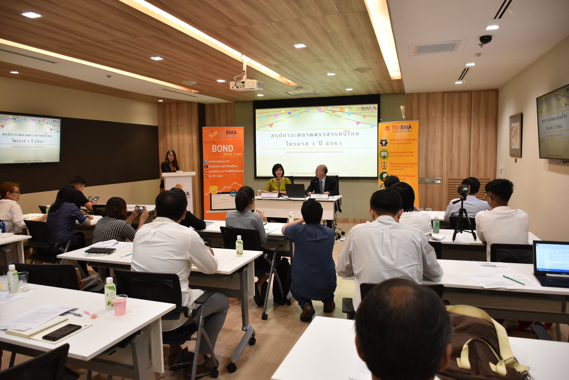 ThaiBMA Gallery งานแถลงข่าวสรุปภาวะตลาดตราสารหนี้ไทยไตรมาส 1 ปี 2561 วันที่ 10 เมษายน 2561 เวลา9.00 - 12.00 น. สถานที่ณ สมาคมตลาดตราสารหนี้ไทย ชั้น 10 อาคารต้นสนทาวเวอร์ รายละเอียด งานแถลงข่าวสรุปภาวะตลาดตราสารหนี้ไทยไตรมาส 1 ปี 2561 และแนวโน้มช่วงที่เหลือของปี 2561 โดยคุณธาดา พฤฒิธาดา กรรมการผู้จัดการสมาคมตลาดตราสารหนี้ไทย และคุณอริยา ติรณะประกิจ รองกรรมการผู้จัดการสมาคมตลาดตราสารหนี้ไทย และ Session พิเศษ ให้ความรู้เกีี่ยวกับการใช้เว็บไซต์ ThaiBMA โดยคุณศิรินารถ อมรธรรม ผู้อำนวยการอาวุโสฝ่ายวิจัยและวิเทศสัมพันธ์ และ คุณชนนพร ศักดิ์วนิชล เจ้าหน้าที่ฝ่ายวิจัยและวิเทศสัมพันธ์ Back to Main Gallery