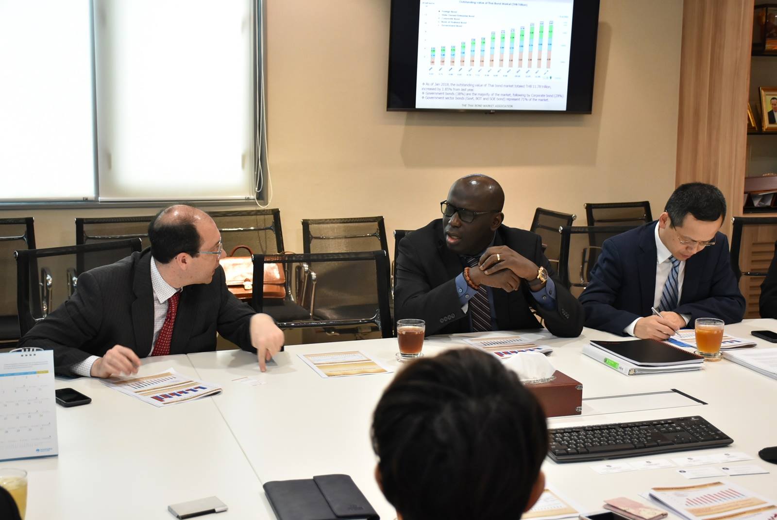 ThaiBMA Gallery International Monetary Fund (IMF) เข้าเยี่ยมชม ThaiBMA วันที่ 13 มีนาคม 2561 เวลา สถานที่ณ สมาคมตลาดตราสารหนี้ไทย ชั้น 10 อาคารต้นสนทาวเวอร์ รายละเอียด International Monetary Fund (IMF) เข้าเยี่ยมชม ThaiBMA เพื่อติดตามและแลกเปลี่ยนความคิดเห็นเกี่ยวกับภาวะตลาดตราสารหนี้ไทย ณ สมาคมตลาดตราสารหนี้ไทย ในวันที่ 13 มีนาคม 2561 Back to Main Gallery