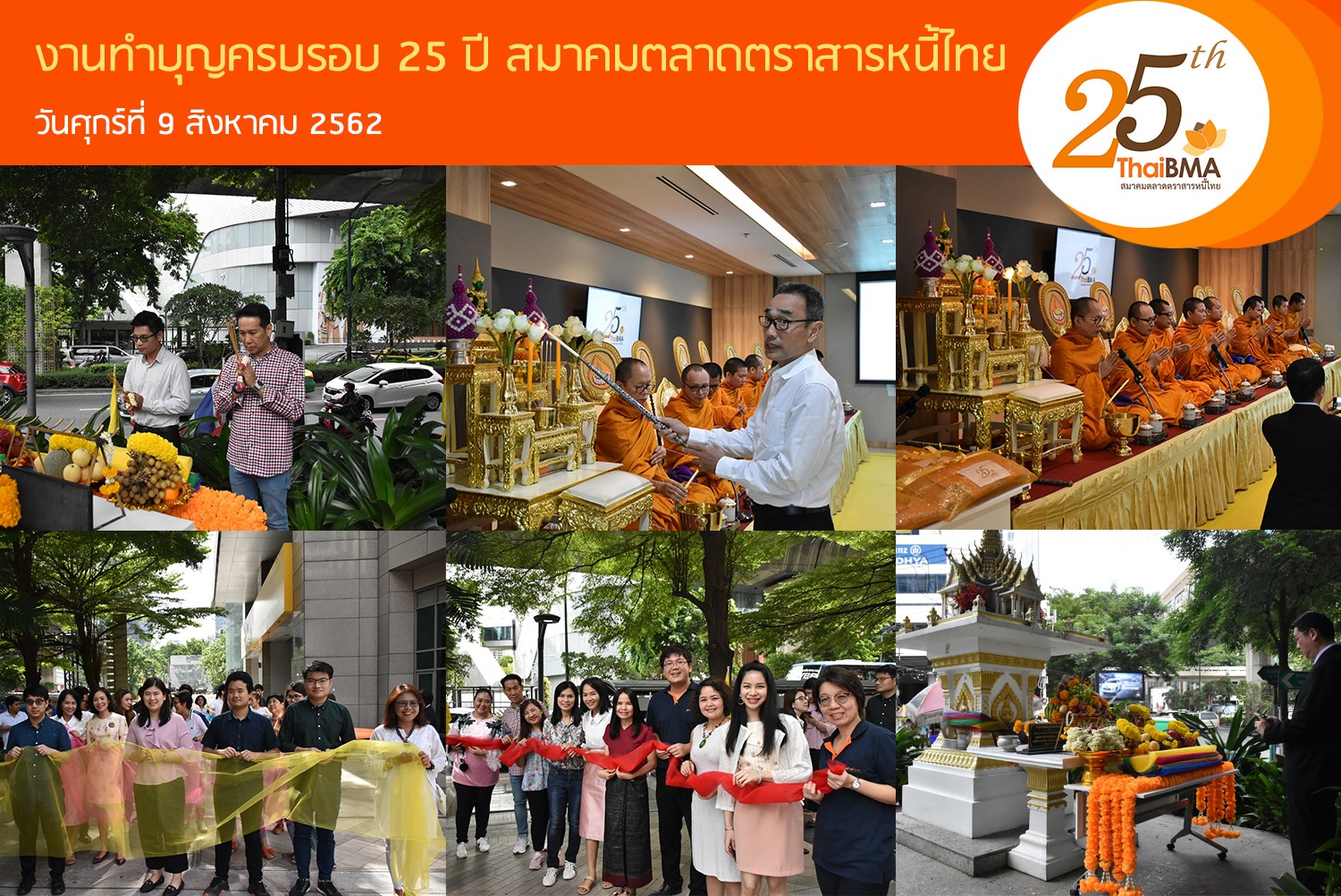 ThaiBMA Gallery งานทำบุญครบรอบ 25 ปี ThaiBMA วันที่ 9 สิงหาคม 2562 เวลา สถานที่ ณ สมาคมตลาดตราสารหนี้ไทย ชั้น 10 อาคารต้นสนทาวเวอร์ รายละเอียด วันศุกร์ที่ 9 สิงหาคม 2562 ⭐ สมาคมตลาดตราสารหนี้ไทย(ThaiBMA) ได้จัดงานทำบุญครบรอบ 25 ปี โดยได้รับเกียรติจาก คุณสิงหะ นิกรพันธุ์ ประธานกรรมการสมาคมตลาดตราสารหนี้ไทย เป็นประธานในพิธี 🔹โดย ThaiBMA ได้ดำเนินการมาตั้งแต่ปี 2537 ภายใต้ชื่อ "ชมรมผู้ค้าตราสารหนี้" (Bond Dealers Club/ BDC) 🔹และในปี 2540 ได้ปรับเปลี่ยนสถานะเป็น "ศูนย์ซื้อขายตราสารหนี้ไทย" (The Thai Bond Dealing Centre /Thai BDC) 🔹ต่อมาในปี 2548 ปรับสถานะจากศูนย์ซื้อขายฯ เป็น "สมาคมที่เกี่ยวเนื่องกับธุรกิจหลักทรัพย์" ภายใต้ชื่อ สมาคมตลาดตราสารหนี้ไทย หรือ Thai Bond Market Association (ThaiBMA) เพื่อมุ่งเน้นและขยายบทบาทการทำหน้าที่ด้านการเป็น SRO และการเป็นศูนย์ข้อมูลตราสารหนี้ รวมถึงขยายไปสู่การทำหน้าที่เผยแพร่ราคามาตรฐานหรือ Pricing agency ในตลาดตราสารหนี้ ตามวัตถุประสงค์ของทางการต่อไป Back to Main Gallery