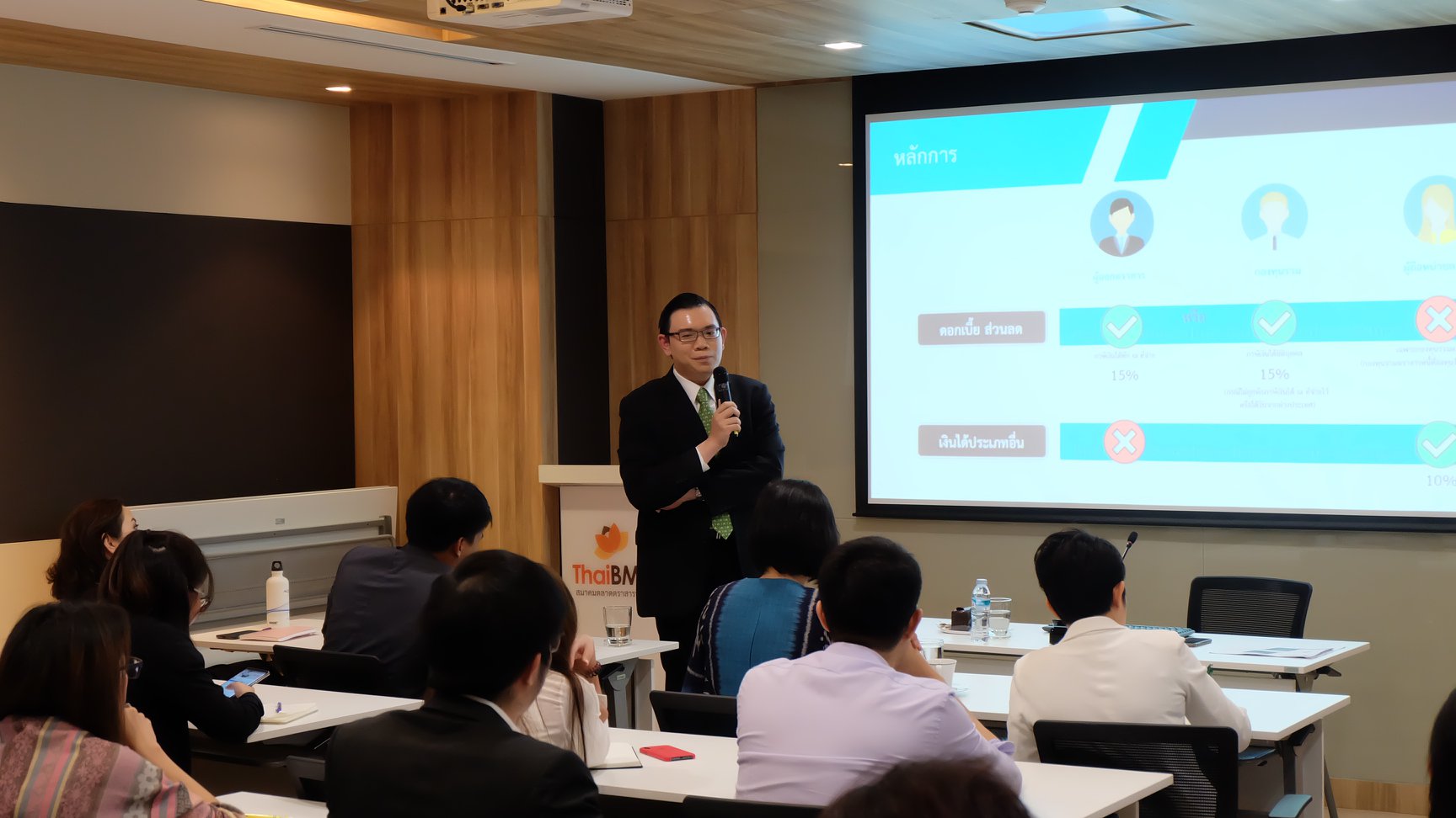 ThaiBMA Gallery การบรรยายหัวข้อ การจัดเก็บภาษีเงินได้จากการลงทุนในตราสารหนี้ผ่านกองทุนรวม วันที่ 13 มีนาคม 2562 เวลา สถานที่ณ สมาคมตลาดตราสารหนี้ไทย ชั้น 10 อาคารต้นสนทาวเวอร์ รายละเอียด สมาคมตลาดตราสารหนี้ไทยได้รับเกียรติจาก คุณอัคคราชย์ บุญญาศิริ กรมสรรพากร มาบรรยายและแลกเปลี่ยนความรู้ร่วมกับ ThaiBMA เกี่ยวกับ "การจัดเก็บภาษีเงินได้จากการลงทุนในตราสารหนี้ผ่านกองทุนรวม" ในวันที่ 13 มีนาคม 2562 Back to Main Gallery