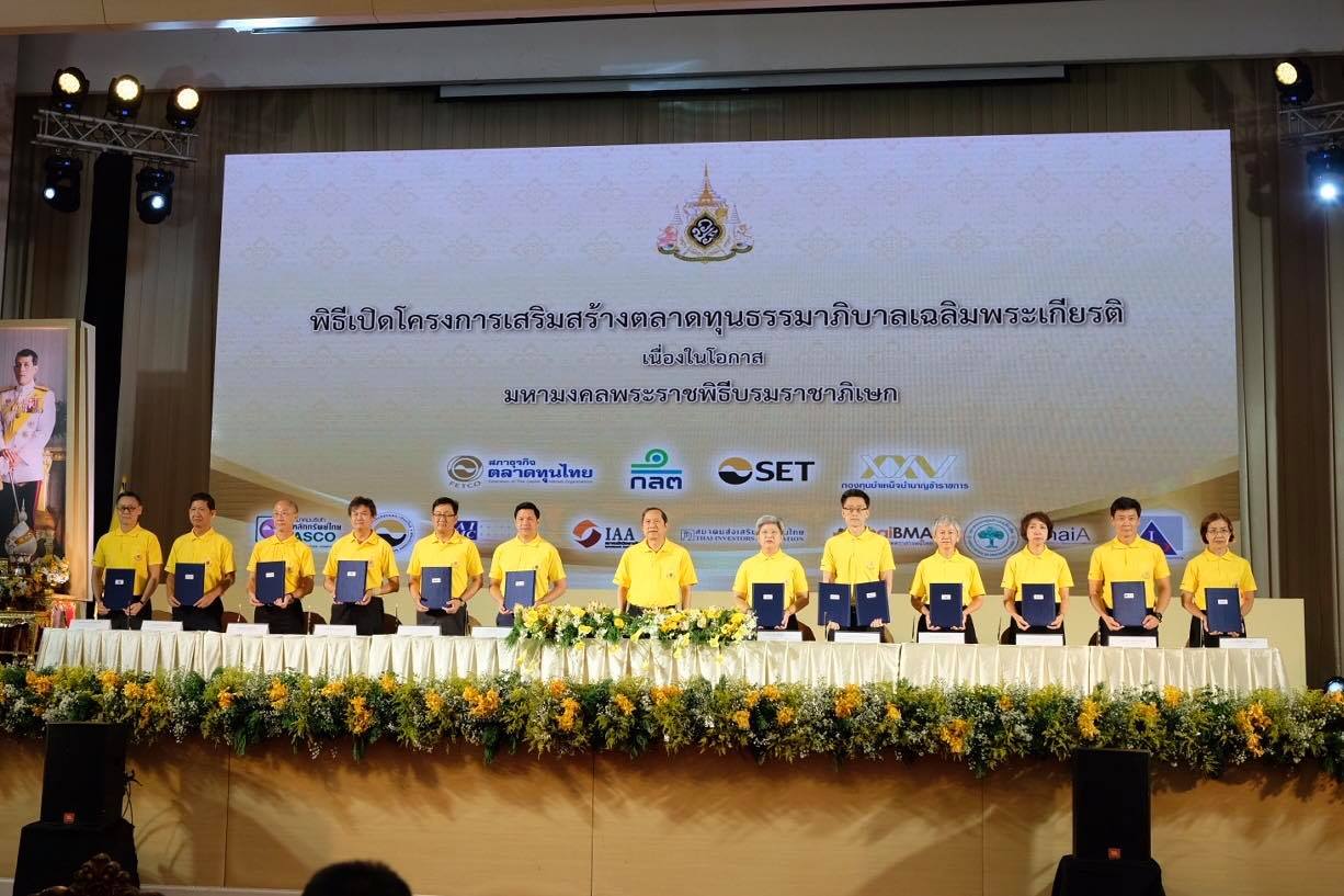 ThaiBMA Gallery ThaiBMA เข้าร่วมพิธีเปิดโครงการเสริมสร้างตลาดทุนธรรมาภิบาลเฉลิมพระเกียรติ วันที่ 14 สิงหาคม 2562 เวลา สถานที่ ณ ห้องมัฆวานรังสรรค์ สโมสรทหารบก วิภาวดีรังสิต รายละเอียด ThaiBMA เข้าร่วมพิธีเปิดโครงการเสริมสร้างตลาดทุนธรรมาภิบาลเฉลิมพระเกียรติ เนื่องในโอกาสมหามงคลพระราชพิธีบรมราชาภิเษก โดยนายธาดา พฤฒิธาดา กรรมการผุ้จัดการสมาคมตลาดตราสารหนี้ไทย ร่วมลงนามปฎิญญาฯ ร่วมกับตัวแทนองค์กรตลาดทุนอีก 12 องค์กร ณ ห้องมัฆวานรังสรรค์ สโมสรทหารบก วิภาวดีรังสิต Back to Main Gallery