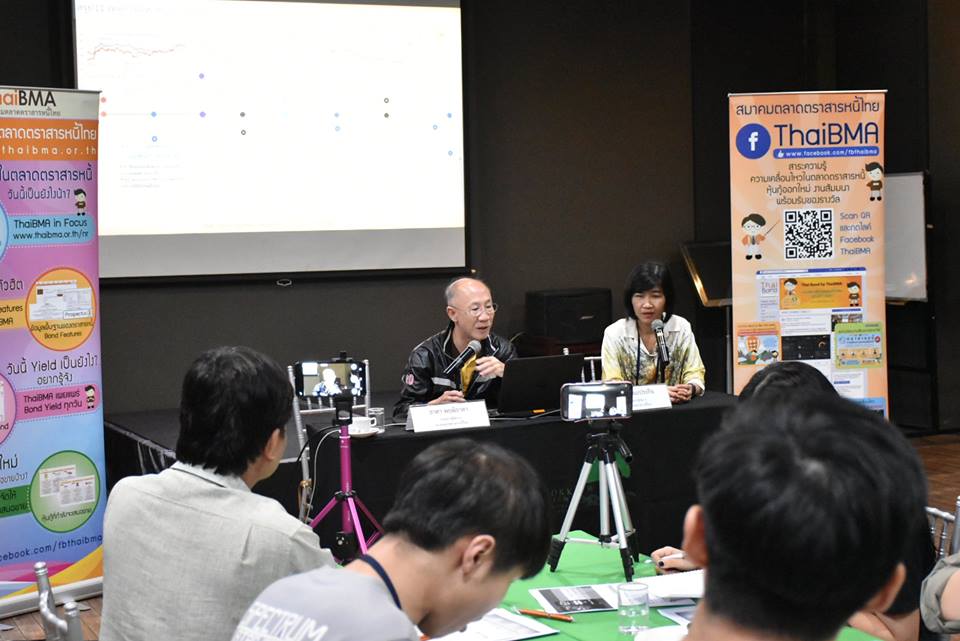 ThaiBMA Gallery ThaiBMA จัดงานแถลงข่าวสรุปภาวะตลาดตราสารหนี้ไทยประจำปี 2561 และแนวโน้มปี 2562 วันที่ 19 มกราคม 2562 เวลา สถานที่ณ วังนกแก้ว ปาร์ควิว จังหวัดกาญจนบุรี รายละเอียด สมาคมตลาดตราสารหนี้ไทยจัดงานแถลงข่าวสรุปภาวะตลาดตราสารหนี้ไทยประจำปี 2561 และแนวโน้มปี 2562 โดยคุณธาดา พฤฒิธาดา กรรมการผู้จัดการ และคุณอริยา ติรณะประกิจ รองกรรมการผู้จัดการ พร้อมการบรรยายพิเศษเกี่ยวกับการพัฒนาระบบฐานข้อมูลโดยคุณชัยธัช ประจวบดี ผู้ช่วยกรรมการผู้จัดการ และหลักเกณฑ์การออก Green Bond โดยคุณสาคเรศ คำวะลี ผู้ช่วยกรรมการผู้จัดการ ณ วังนกแก้ว ปาร์ควิว จังหวัดกาญจนบุรี ในวันที่ 19 มกราคม 2562 Back to Main Gallery