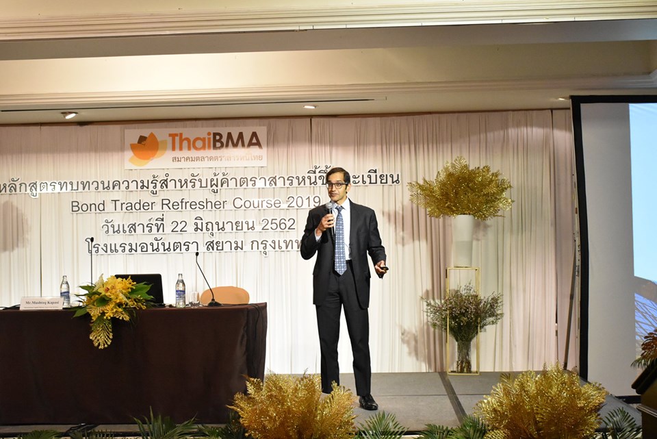 ThaiBMA Gallery Bond Trader Refresher Course 2019 วันที่ 22 มิถุนายน 2562 เวลา 8:15-16:45 น. สถานที่ณ โรงแรม Anantara Siam Bangkok ถ.ราชดำริ รายละเอียด งานอบรมสัมมนา ทบทวนความรู้ผู้ค้าตราสารหนี้ขึ้นทะเบียน (Bond Trader Refresher Course 2019) Back to Main Gallery