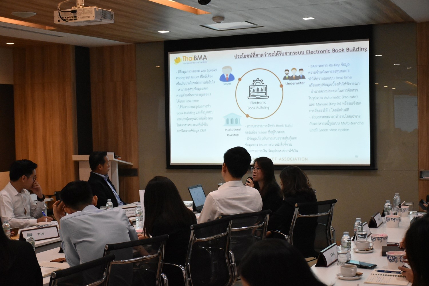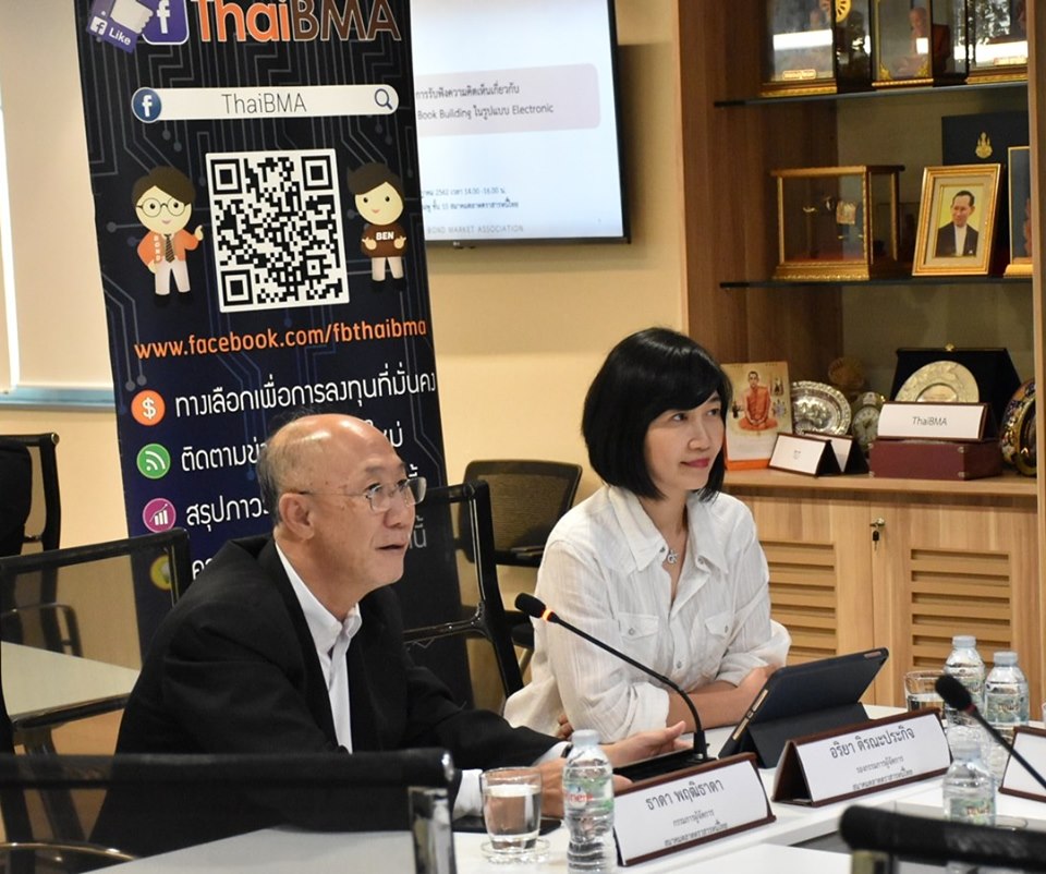 ThaiBMA Gallery Market Dialogue รับฟังความคิดเห็นเกี่ยวกับการพัฒนาระบบ Book Building วันที่ 24 กรกฎาคม 2562 เวลา สถานที่ณ สมาคมตลาดตราสารหนี้ไทย ชั้น 10 อาคารต้นสนทาวเวอร์ รายละเอียด Market Dialogue รับฟังความคิดเห็นเกี่ยวกับการพัฒนาระบบ Book Building ในรูปแบบ Electronic โดยมีคุณธาดา พฤฒิธาดา กรรมการผู้จัดการ คุณอริยา ติรณประกิจ รองกรรมการผู้จัดการ ThaiBMA เข้าร่วมหารือกับ Issuer Underwriter และ Investor Back to Main Gallery