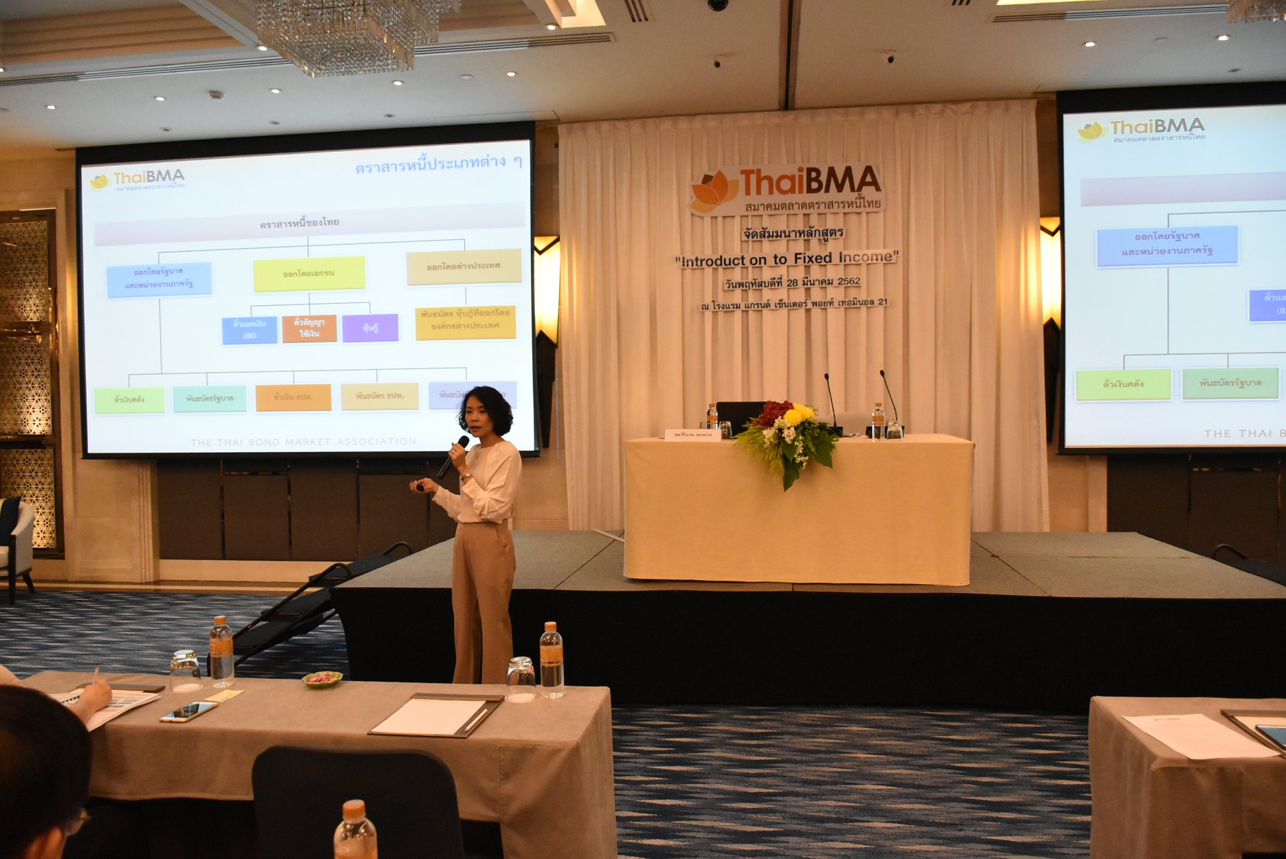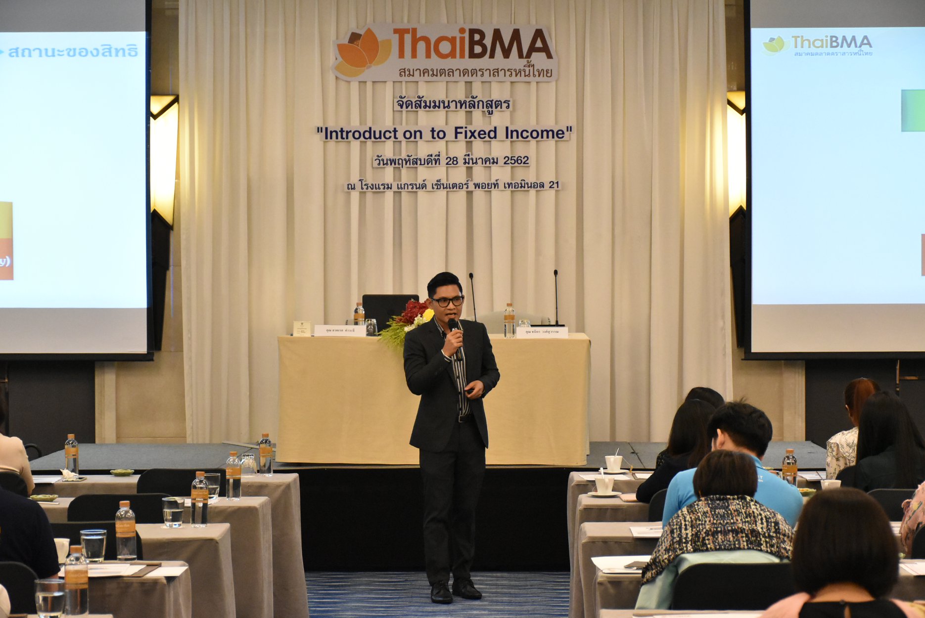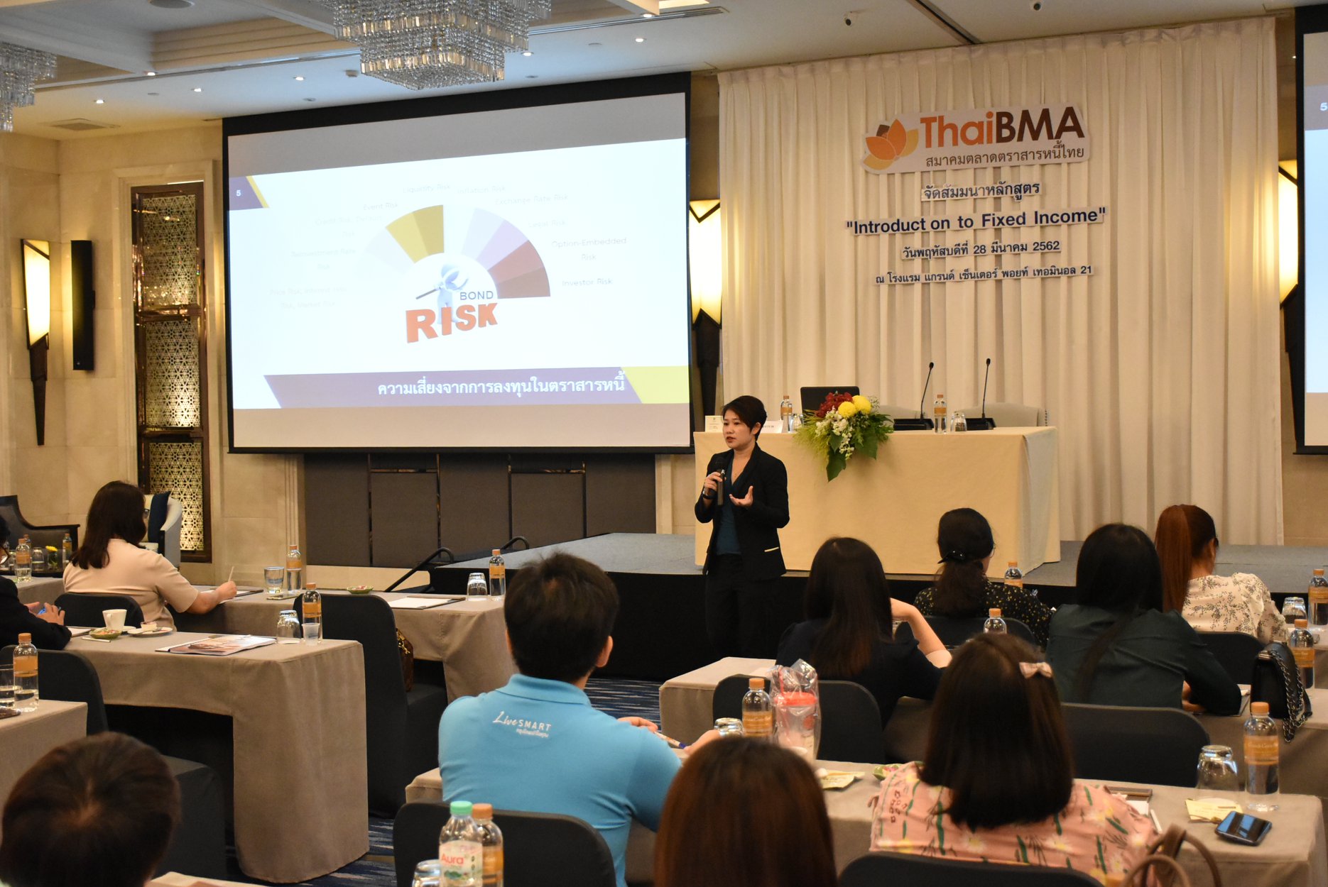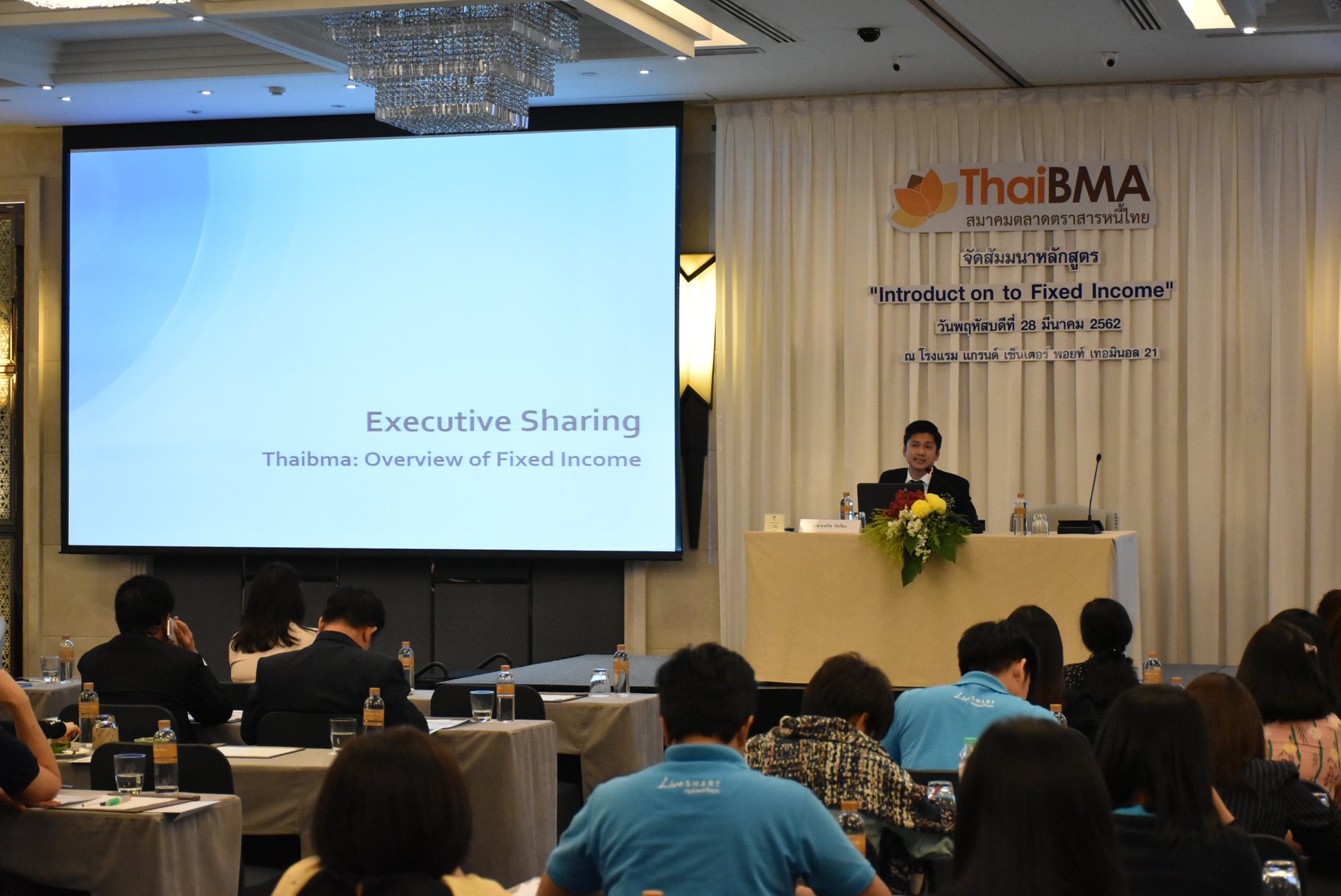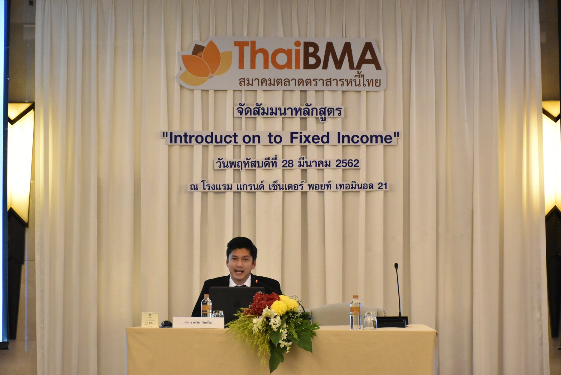 ThaiBMA Gallery การอบรมหลักสูตร Introduction to Fixed Income วันที่ 28 มีนาคม 2562 เวลา สถานที่ณ Grand Centre Point Terminal 21 รายละเอียด Introduction to Fixed Income หลักสูตร Professional Training ของ ThaiBMA ที่ให้ความรู้ตั้งแต่พื้นฐานของการลงทุนในตราสารหนี้ รายละเอียดหลักสูตร www.thaibma.or.th/pdf/Training/2019/Brochure/fixincome.pdf Back to Main Gallery