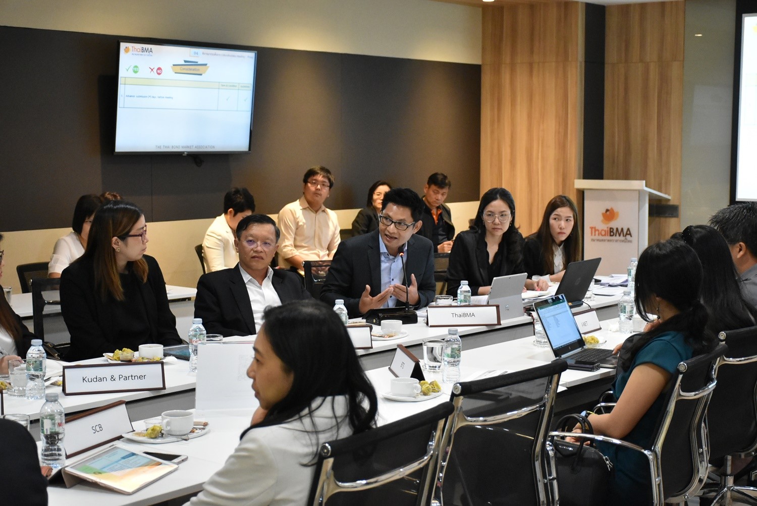 ThaiBMA Gallery Dialogue รับฟังความคิดเห็น หัวข้อ "การจัดประชุมผู้ถือหุ้นกู้ผ่านสื่ออิเล็กทรอนิกส์" วันที่ 30 กรกฎาคม 2562 เวลา สถานที่ณ สมาคมตลาดตราสารหนี้ไทย ชั้น 10 อาคารต้นสนทาวเวอร์ รายละเอียด Dialogue รับฟังความคิดเห็น หัวข้อ "การจัดประชุมผู้ถือหุ้นกู้ผ่านสื่ออิเล็กทรอนิกส์ (Bondholders E-Meeting: E-Notice, E-Proxy, E-Meeting, E-Voting) โดย คุณธาดา พฤฒิธาดา กรรมการผู้จัดการ คุณอริยา ติรณประกิจ รองกรรมการผู้จัดการ เข้าร่วมหารือกับ กลต. ผู้แทนผู้ถือหุ้นกู้ และผู้ออกหลักทรัพย์ ในวันที่ 30 กรกฎาคม 2562 ณ ห้องประชุมสมาคมตลาดตราสารหนี้ไทย Back to Main Gallery