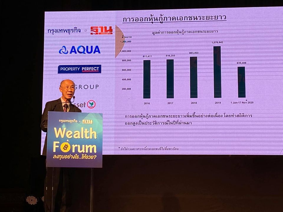 ThaiBMA Gallery งานสัมมนา “Wealth Forum ลงทุนอย่างไร .. ให้รวย? คุณธาดา พฤฒิธาดา กรรมการผู้จัดการ สมาคมตลาดตราสารหนี้ไทย ให้เกียรติเข้าร่วมให้ความรู้ในงาน “Wealth Forum ลงทุนอย่างไร .. ให้รวย? จัดโดย กรุงเทพธุรกิจ•ฐานเศรษฐกิจ ช่วง : ลงทุนทางเลือก หัวข้อ : Battle หุ้นกู้ Vs หุ้นกู้ชั่วนิรันดร์ ในวันจันทร์ ที่ 23 พฤศจิกายน 2563 ณ ห้องแกรนด์บอลรูม โรงแรมแกรนด์ ไฮแอท เอราวัณ กรุงเทพฯ Back to Main Gallery