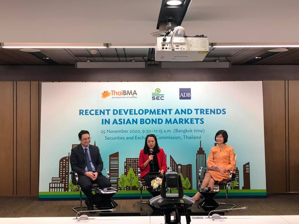 ThaiBMA Gallery (ThaiBMA) เข้าร่วมเสวนาในงาน Recent Development and Trends in Asian Bond Markets 25 พฤศจิกายน 2563 คุณอริยา ติรณะประกิจ รองกรรมการผู้จัดการ สมาคมตลาดตราสารหนี้ไทย (ThaiBMA) เข้าร่วมเสวนาในงาน Recent Development and Trends in Asian Bond Markets ภายใต้ความร่วมมือระหว่างสำนักงานคณะกรรมการกำกับหลักทรัพย์และตลาดหลักทรัพย์ (ก.ล.ต.) Asian Development Bank (ADB) และ สมาคมฯ ณ ห้องประชุมสำนักงาน ก.ล.ต. Back to Main Gallery