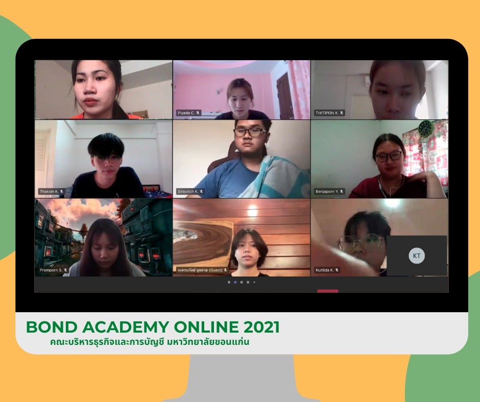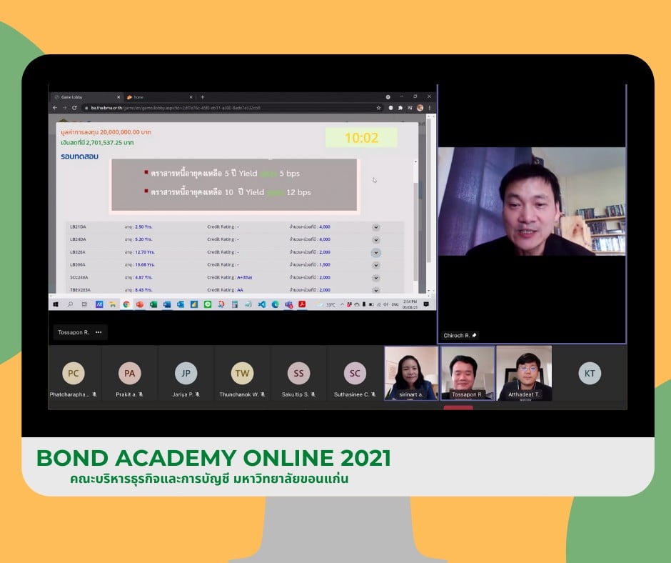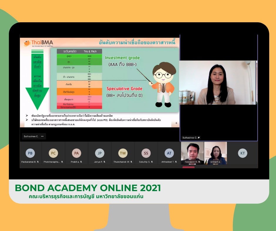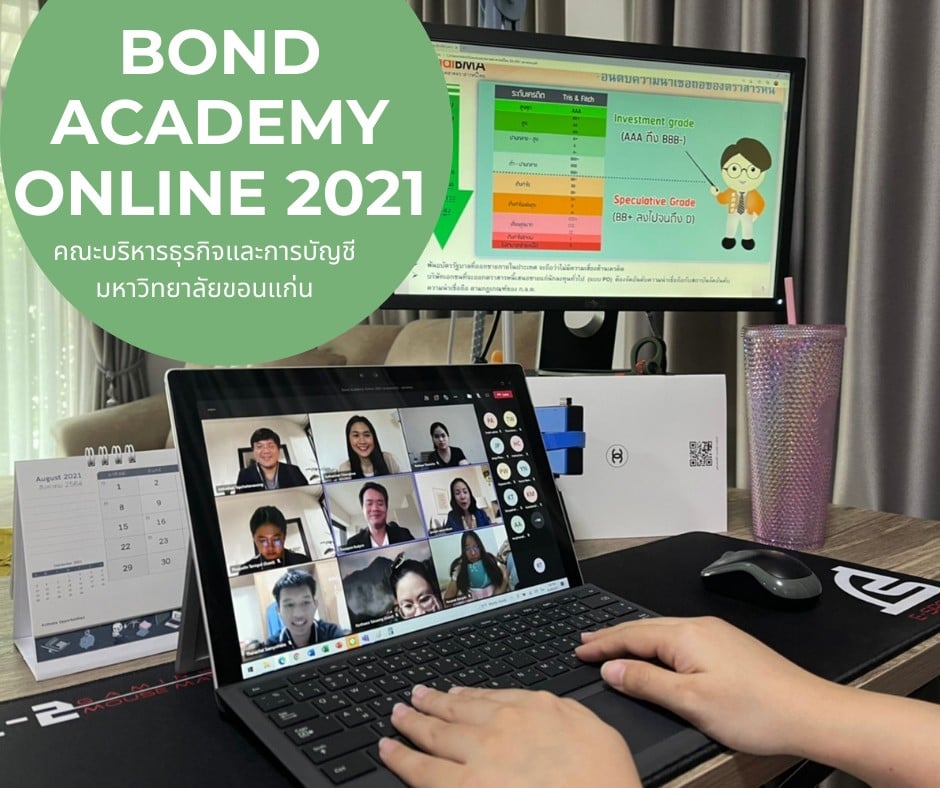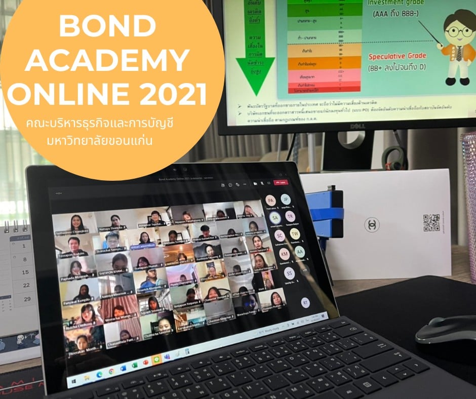 ThaiBMA Gallery ThaiBMA จัดอบรมออนไลน์ Bond Academy Online 2021 👋👋 ยินดีต้อนรับน้องๆ คณะบริหารธุรกิจและการบัญชี มหาวิทยาลัยขอนแก่น เข้าร่วมกิจกรรมเผยแพร่ความรู้ความเข้าใจตลาดตราสารหนี้ไทย Online 👩💻👨💻 “Bond Academy Online 2021” ผ่านระบบ Microsoft Teams 😁😊 ✌️วันพฤหัสบดีที่ 29 กรกฎาคม พ.ศ. 2564 และ วันพฤหัสบดีที่ 5 สิงหาคม พ.ศ. 2564 เวลา 13.30 - 16.30 น. Back to Main Gallery