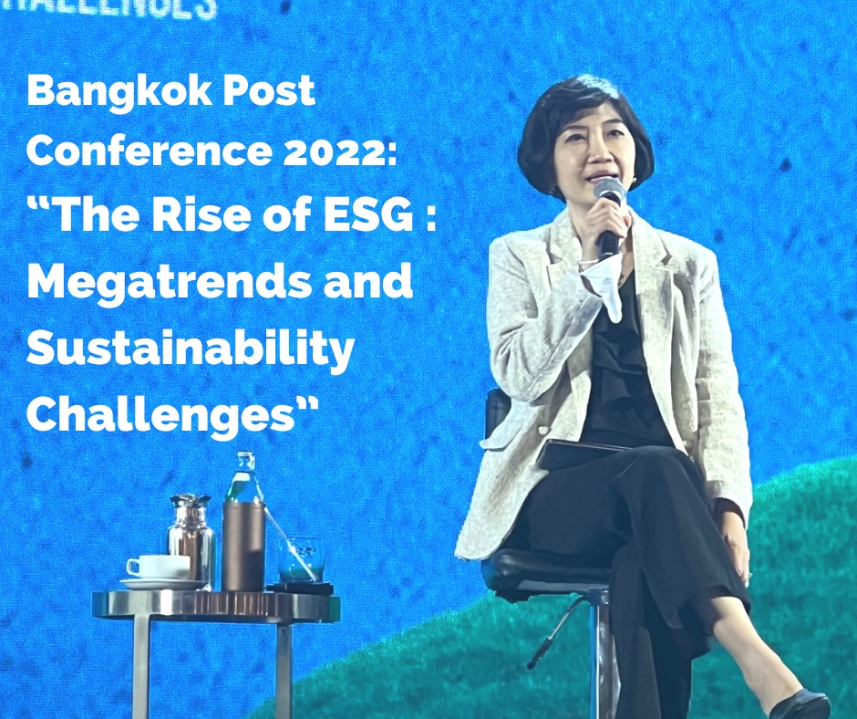ThaiBMA Gallery ThaiBMA ร่วมเป็นวิทยากรช่วงเสวนางาน Bangkok Post Conference 2022 วันที่ 18 พฤศจิกายน 2565 👩🏦 คุณอริยา ติรณะประกิจ รองกรรมการผู้จัดการ ThaiBMA เข้าร่วมเป็นวิทยากรช่วงเสวนางาน Bangkok Post Conference 2022: “The Rise of ESG: Megatrends and Sustainability Challenges” ในหัวข้อ “Why ESG matters to the future of investing” ร่วมกับ ดร.ศรีกัญญา ยาทิพย์ Secretary-General, Government Pension Fund โดยงานจัดขึ้นที่ World Ballroom Centara Grand at CentralWorld 😀 Back to Main Gallery