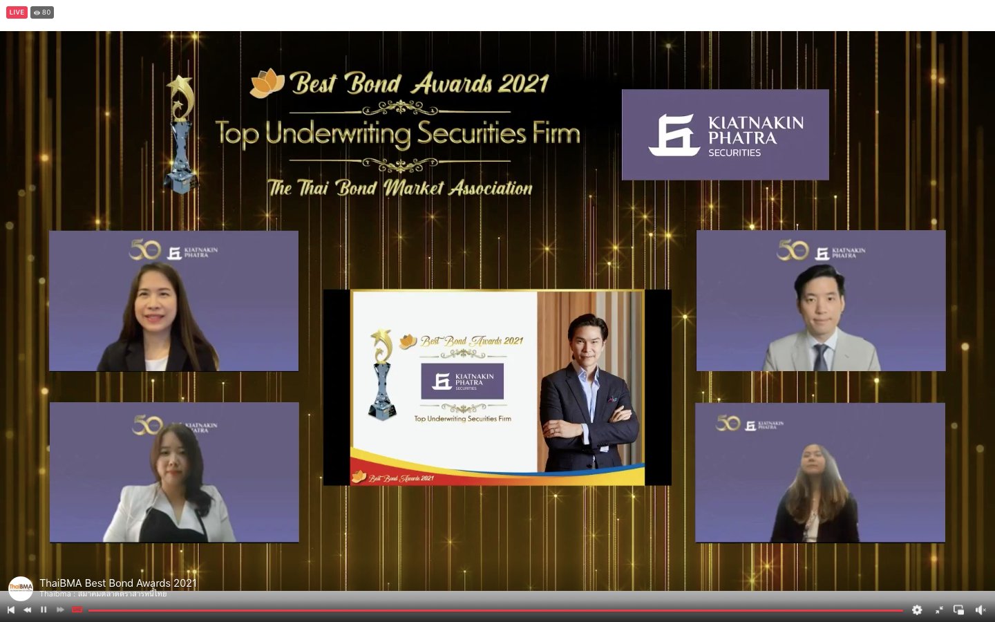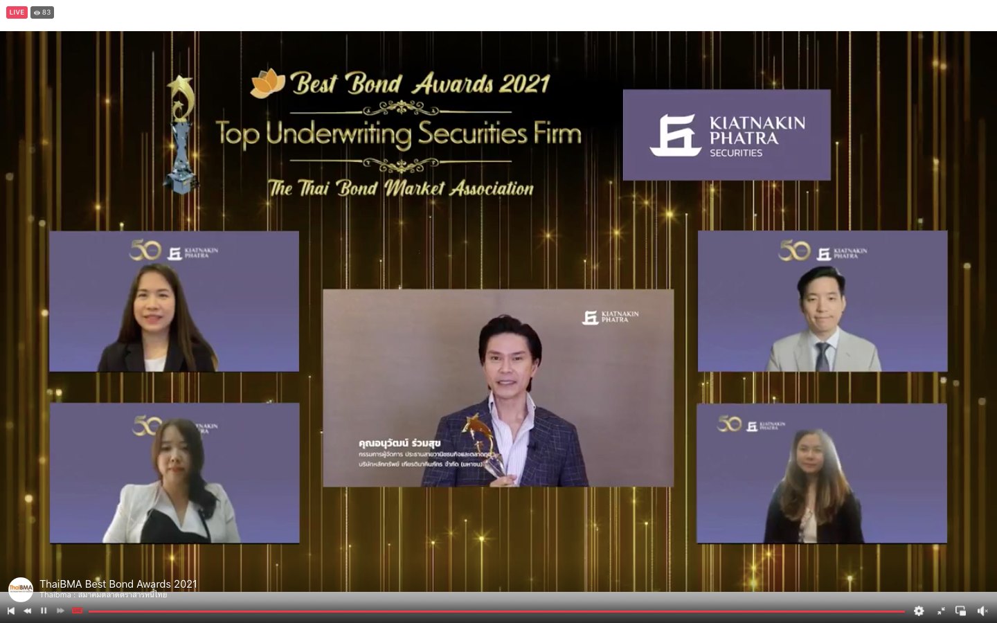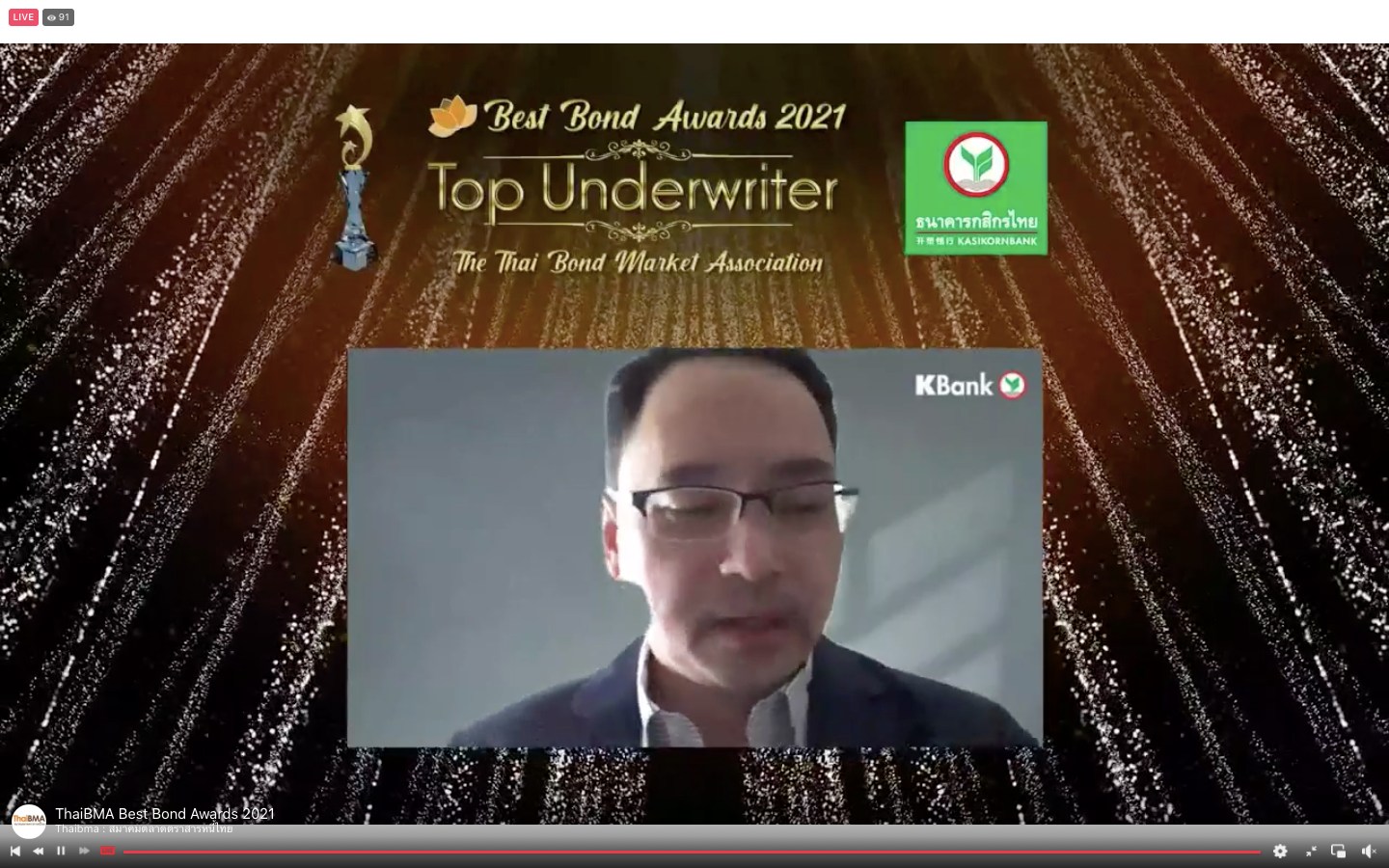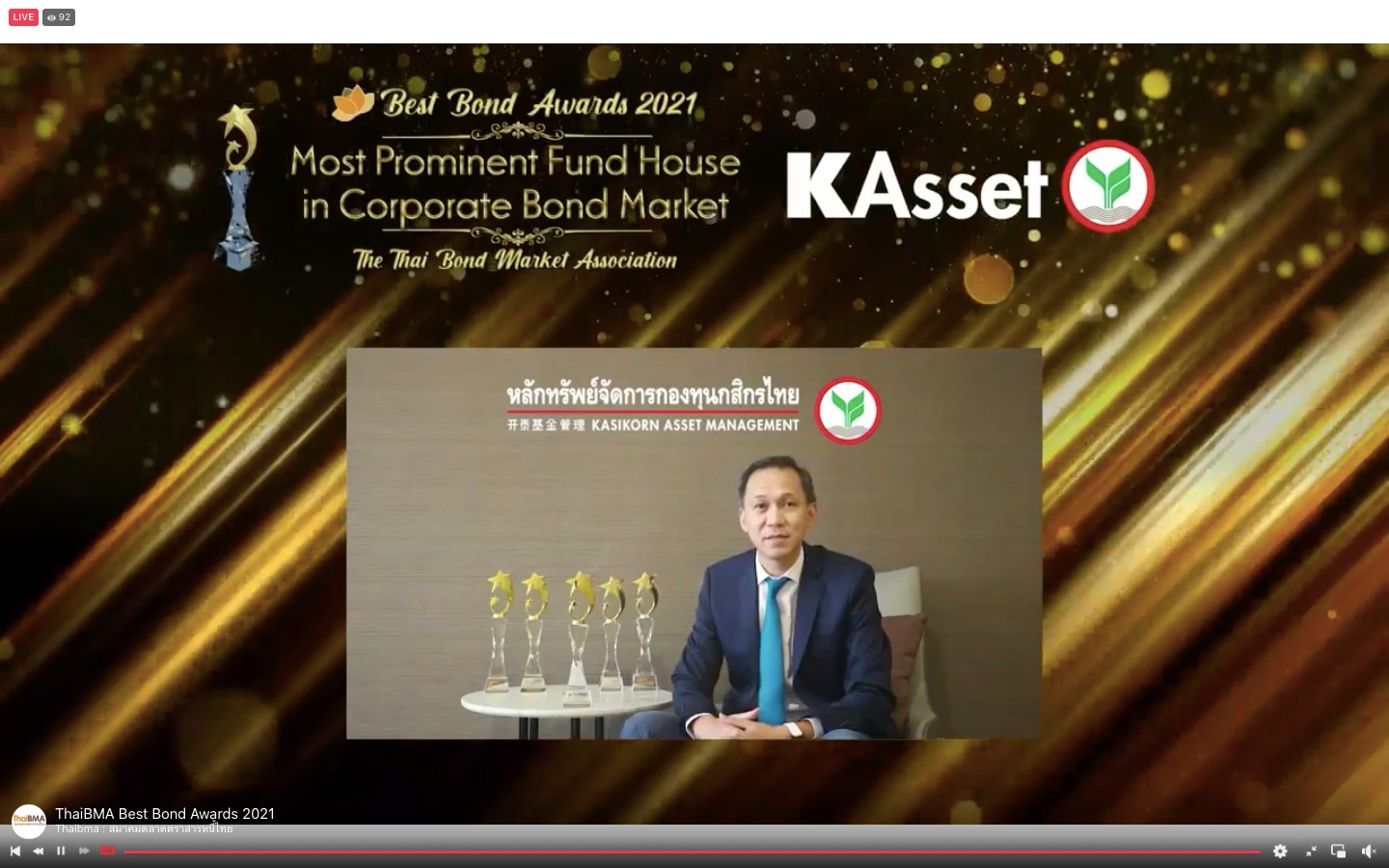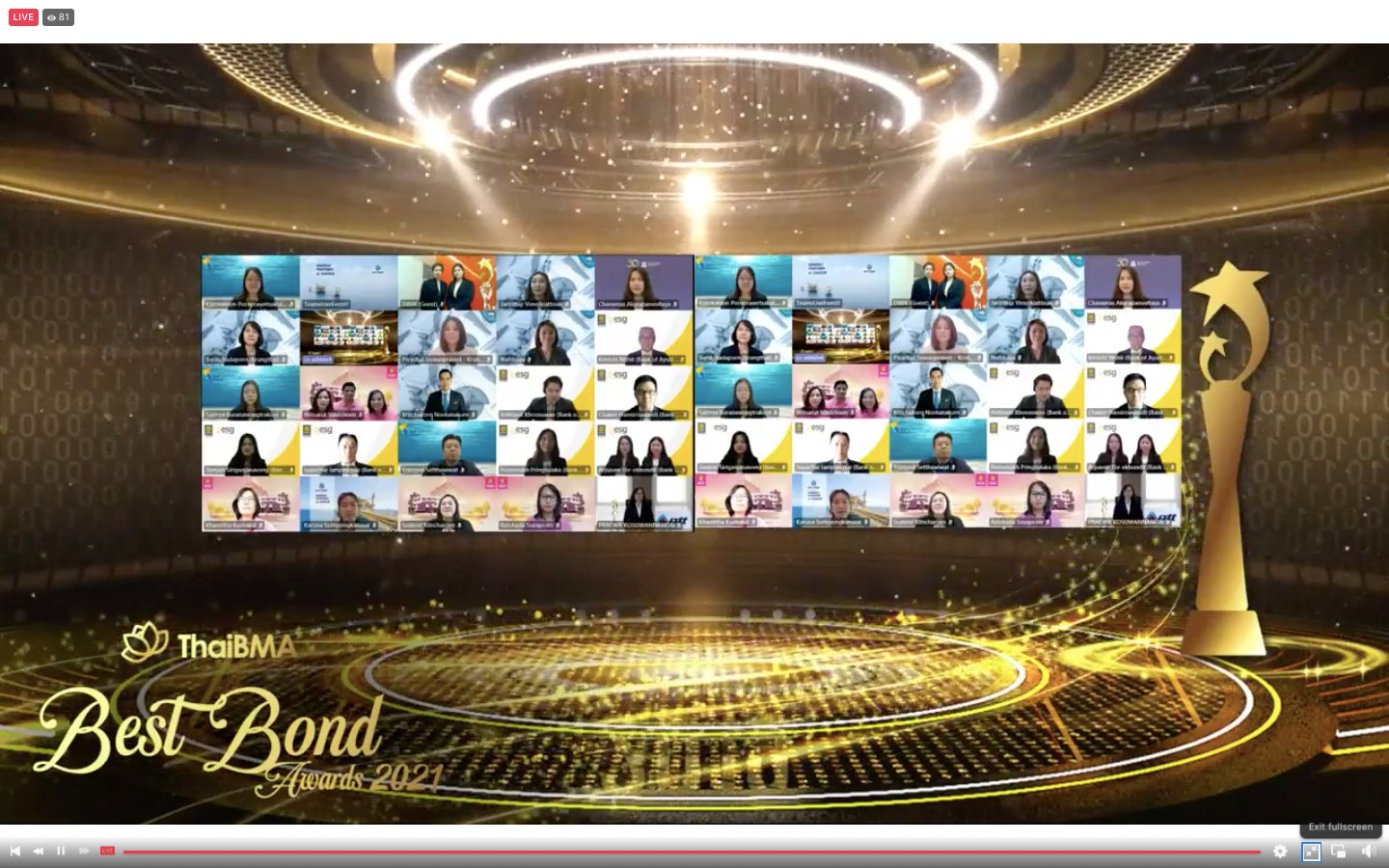 ThaiBMA Gallery ThaiBMA จัดงานมอบรางวัลตราสารหนี้ยอดเยี่ยมแห่งปี 2564 (ThaiBMA Best Bond Awards 2021) ภาพบรรยากาศงานมอบรางวัลตราสารหนี้ยอดเยี่ยมแห่งปี 2564 (ThaiBMA Best Bond Awards 2021) เพื่อยกย่ององค์กรและบุคลากรที่มีความโดดเด่นในธุรกรรมตราสารหนี้ ในวันพุธที่ 30 มีนาคม 2565 เวลา 14:00 น. – 15:30 น. ผ่าน Facebook ThaiBMA >>> ท่านสามารถชมภาพบรรยากาศเพิ่มเติมได้ที่นี่ <<< Back to Main Gallery