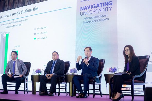 ThaiBMA Gallery ThaiBMA ร่วมงาน SCBAM Investment Symposium 2023: Navigating Uncertainty 16 สิงหาคม 2566 ดร. สมจินต์ ศรไพศาล กรรมการผู้จัดการสมาคมตลาดตราสารหนี้ไทย ให้เกียรติเป็นวิทยากรบรรยายในงาน SCBAM Investment Symposium 2023: Navigating Uncertainty …หัวข้อเสวนา “กลยุทธจัดพอร์ตการลงทุน ก้าวข้ามทุกความไม่แน่นอน” พร้อมกับท่านวิทยากรกิตติมศักดิ์ (ดร. ศรพล ตุลยะเสถียร รองผู้จัดการ หัวหน้าสายงานวางแผนกลยุทธ์องกรและหัวหน้าสายงานพัฒนาความยั่งยืนตลาดทุน ตลาดหลักทรัพย์แห่งประเทศไทย และ คณุนันท์มนัส เปี่ยมทิพยม์นัส ประธานเจ้าหน้าที่บริหารการลงทุนSCBAM) Back to Main Gallery