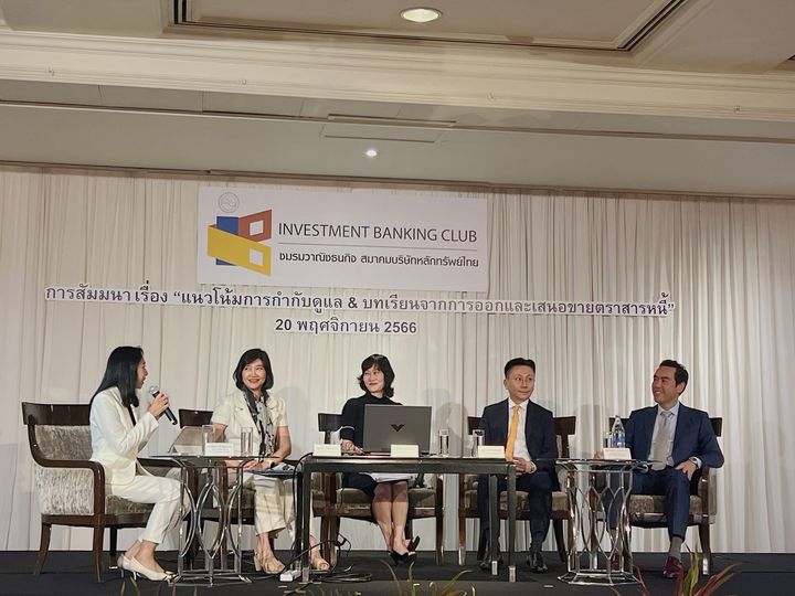 ThaiBMA Gallery ThaiBMA เข้าร่วมงานสัมมนาที่จัดขึ้นโดย Investment Banking Club คุณอริยา ติรณะประกิจ รองกรรมการผู้จัดการ สมาคมตลาดตราสารหนี้ไทย เข้าร่วมเป็นวิทยากรบรรยายในงานสัมมนาเรื่อง “แนวโน้มการกำกับดูแล และบทเรียนจากการออกและเสนอขายตราสารหนี้” ที่จัดขึ้นโดย ชมรมวาณิชธนกิจ สมาคมบริษัทหลักทรัพย์ไทย (Investment Banking Club) ช่วงบ่ายวันนี้ (20 พ.ย. 2566) ณ ห้องบอลรูม โรงแรมอนันตรา สยาม กรุงเทพฯ Back to Main Gallery