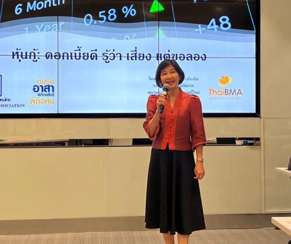 ThaiBMA Gallery ThaiBMA ร่วมเป็นวิทยากร งานติดอาวุธทางปัญญา ครั้งที่ 4/2566 เมื่อวันที่ 23 กุมภาพันธ์ 2566 ที่ผ่านมา คุณอริยา ติรณะประกิจ รองกรรมการผู้จัดการ ให้เกียรติเป็นวิทยากร งานติดอาวุธทางปัญญา ครั้งที่ 4/2566 ในหัวข้อ "หุ้นกู้ : ดอกเบี้ยดี รู้ว่า เสี่ยง แต่ขอลอง" ณ ตลาดหลักทรัพย์แห่งประเทศไทย Back to Main Gallery