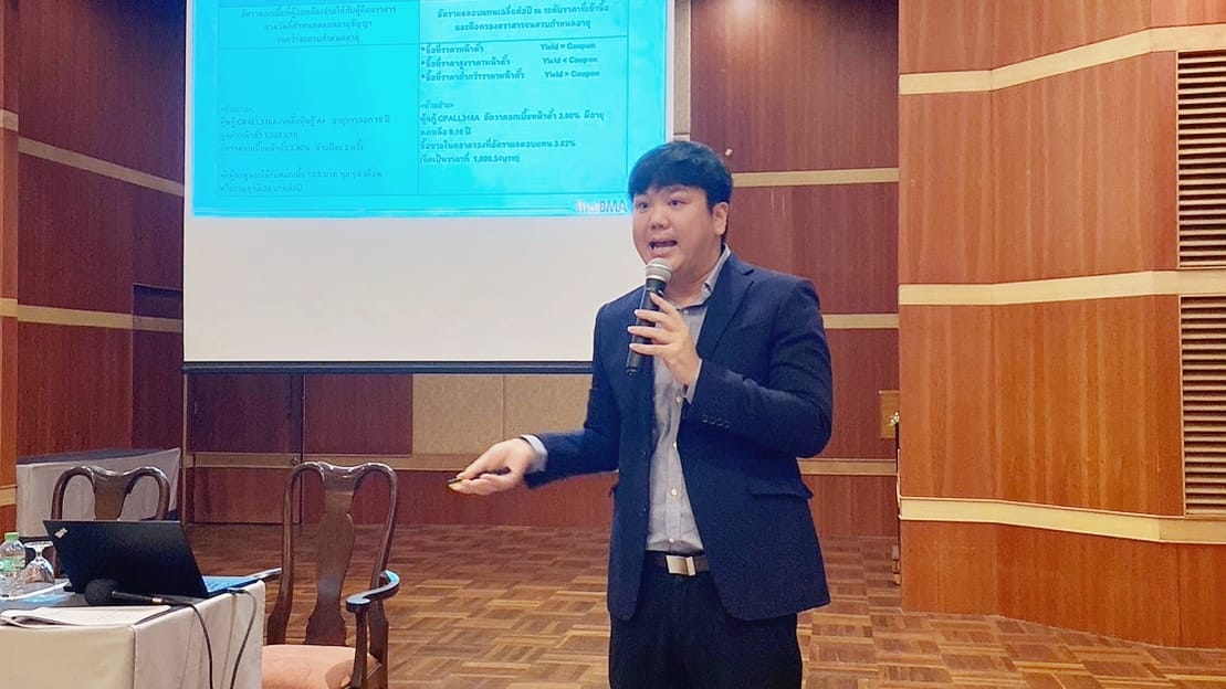 ThaiBMA Gallery ThaiBMA ร่วมเป็นวิทยากรบรรยายให้ความรู้หัวข้อ "ภาพรวมตลาดตราสารหนี้ไทย การวิเคราะห์ตราสารหนี้และฝึกปฎิบัติการใช้เครื่องมือของ ThaiBMA และพื้นฐานทางกฎหมายที่เกี่ยวข้อง" คุณอริยา ติรณะประกิจ รองกรรมการผู้จัดการ คุณชนิดา วงศ์สุวรรณ ผู้อำนวยการอาวุโสฝ่ายกฎหมาย&พัฒนากฎเกณฑ์ คุณอรรถเดช อัทธเดชานันท์ ผู้อำนวยการฝ่ายวิจัย&วิเทศสัมพันธ์ ร่วมเป็นวิทยากรบรรยายให้ความรู้หัวข้อ "ภาพรวมตลาดตราสารหนี้ไทย การวิเคราะห์ตราสารหนี้และฝึกปฎิบัติการใช้เครื่องมือของ ThaiBMA และพื้นฐานทางกฎหมายที่เกี่ยวข้อง" ... ให้กับข้าราชการสังกัดกรมส่งเสริมสหกรณ์ จำนวน 65 คน ในโครงการ...นักสหกรณ์ก้าวทัน การเงินการลงทุน ที่มีวัตถุประสงค์เพื่อให้ผู้เข้าอบรมมีความรู้ด้านเศรษฐกิจ การเงินและการลงทุนของสหกรณ์ตามกฎหมายว่าด้วยสหกรณ์ เสริมสร้างทักษะให้ผู้เข้าอบรมมีวิสัยทัศน์กว้างไกลก้าวทันต่อการเปลี่ยนแปลงของเศรษฐกิจไทย ณ ห้องประชุมภาณุมาศ ชั้น 10 โรงแรมรอยัล ริเวอร์ กรุงเทพมหานคร วันที่ 23 พฤษภาคม 2566 เวลา 10.30 - 16.00 น. Back to Main Gallery