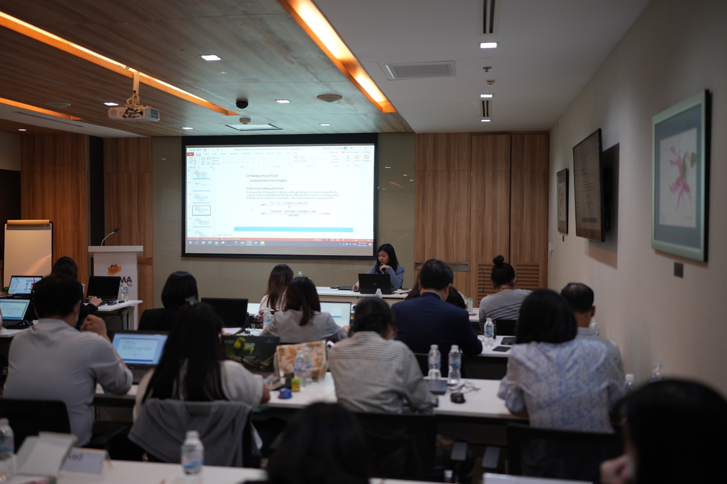 ThaiBMA Gallery รูปบรรยากาศการอบรมหลักสูตร Bond Mathematics Essential Concept & Tools (ครั้งที่ 2) การอบรมหลักสูตร Bond Mathematics Essential Concept & Tools (ครั้งที่ 2) วันที่ 10 พฤศจิกายน 2566 เวลา 09.00 - 16.30 น. ณ ห้องพวงชมพู สมาคมตลาดตราสารหนี้ไทย Back to Main Gallery