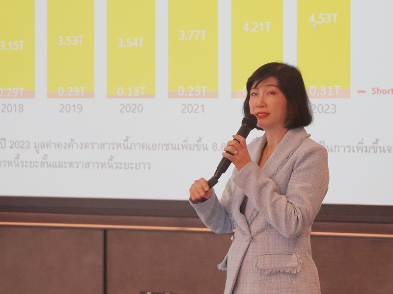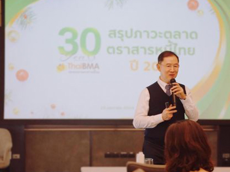 ThaiBMA Gallery ThaiBMA จัดงานแถลงข่าว "สรุปภาวะตลาดตราสารหนี้ไทยปี 2566 และแนวโน้มในปี 2567" 10 มกราคม 2567 ThaiBMA ขอขอบคุณสื่อมวลชนทุกท่านที่ให้การตอบรับเข้าร่วมงานแถลงข่าว "สรุปภาวะตลาดตราสารหนี้ไทยปี 2566 และแนวโน้มในปี 2567" ณ โรงแรมคิมป์ตัน มาลัย กรุงเทพฯ Back to Main Gallery