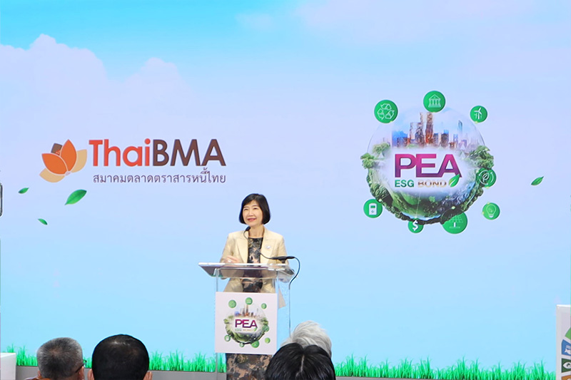 ThaiBMA Gallery ThaiBMA ร่วมงานแถลงข่าวการออกพันธบัตรเพื่อความยั่งยืนของการไฟฟ้าส่วนภูมิภาค (PEA) วันที่ 13 สิงหาคม 2567 คุณอริยา ติรณะประกิจ รองกรรมการผู้จัดการ สมาคมตลาดตราสารหนี้ไทย ร่วมงานแถลงข่าวการออกพันธบัตรเพื่อความยั่งยืนของการไฟฟ้าส่วนภูมิภาค (PEA) ครั้งแรก อายุ 5 ปี วงเงินรวม 1,000 ล้านบาท อัตราดอกเบี้ยคงที่ 2.67% ต่อปี ภายใต้ Sustainable Finance Framework โดยนำเงินที่ได้มาลงทุนในโครงการที่ตอบโจทย์ความยั่งยืน #ESGBOND #ThaiBMA #SustainabilityBond #GreenFinance Back to Main Gallery