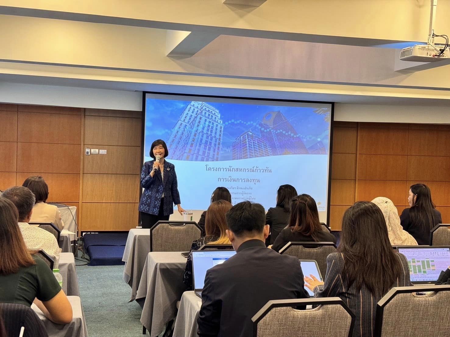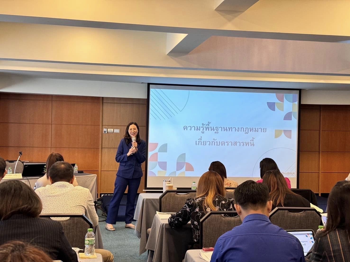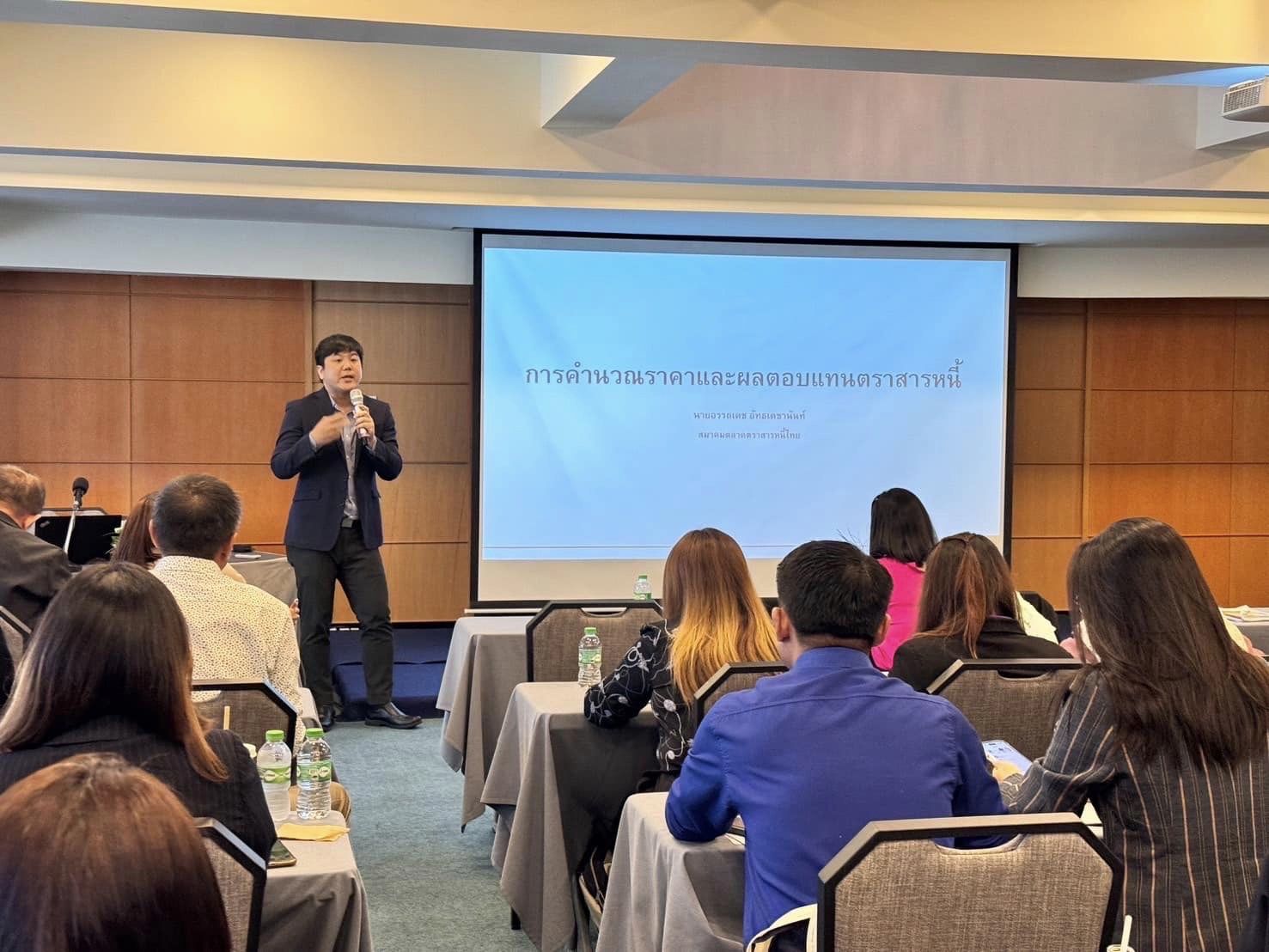 ThaiBMA Gallery ThaiBMA ร่วมเป็นวิทยากรในโครงการ "นักสหกรณ์ก้าวทัน การเงินการลงทุน" 😊ThaiBMA ร่วมเป็นวิทยากรบรรยายให้ความรู้หัวข้อ "ภาพรวมตลาดตราสารหนี้ไทย การวิเคราะห์ตราสารหนี้และฝึกปฎิบัติการใช้เครื่องมือของ ThaiBMA และพื้นฐานทางกฎหมายที่เกี่ยวข้อง" คุณอริยา ติรณะประกิจ รองกรรมการผู้จัดการ คุณชนิดา วงศ์สุวรรณ ผู้อำนวยการอาวุโสฝ่ายกฎหมาย&พัฒนากฎเกณฑ์ คุณอรรถเดช อัทธเดชานันท์ ผู้อำนวยการฝ่ายวิจัย&วิเทศสัมพันธ์ ร่วมเป็นวิทยากรบรรยายให้ความรู้หัวข้อ "ภาพรวมตลาดตราสารหนี้ไทย การวิเคราะห์ตราสารหนี้และฝึกปฎิบัติการใช้เครื่องมือของ ThaiBMA และพื้นฐานทางกฎหมายที่เกี่ยวข้อง" ... ให้กับข้าราชการสังกัดกรมส่งเสริมสหกรณ์ กว่า 100 คน ในโครงการ... นักสหกรณ์ก้าวทัน การเงินการลงทุน ที่มีวัตถุประสงค์เพื่อให้ผู้เข้าอบรมมีความรู้ด้านเศรษฐกิจ การเงินและการลงทุนของสหกรณ์ตามกฎหมายว่าด้วยสหกรณ์ เสริมสร้างทักษะให้ผู้เข้าอบรมมีวิสัยทัศน์กว้างไกลก้าวทันต่อการเปลี่ยนแปลงของเศรษฐกิจไทย ณ ห้องประชุม โรงแรมรอยัล ริเวอร์ กรุงเทพมหานคร วันที่ 26 มีนาคม 2567 เวลา 09.00 - 17.00 น. Back to Main Gallery