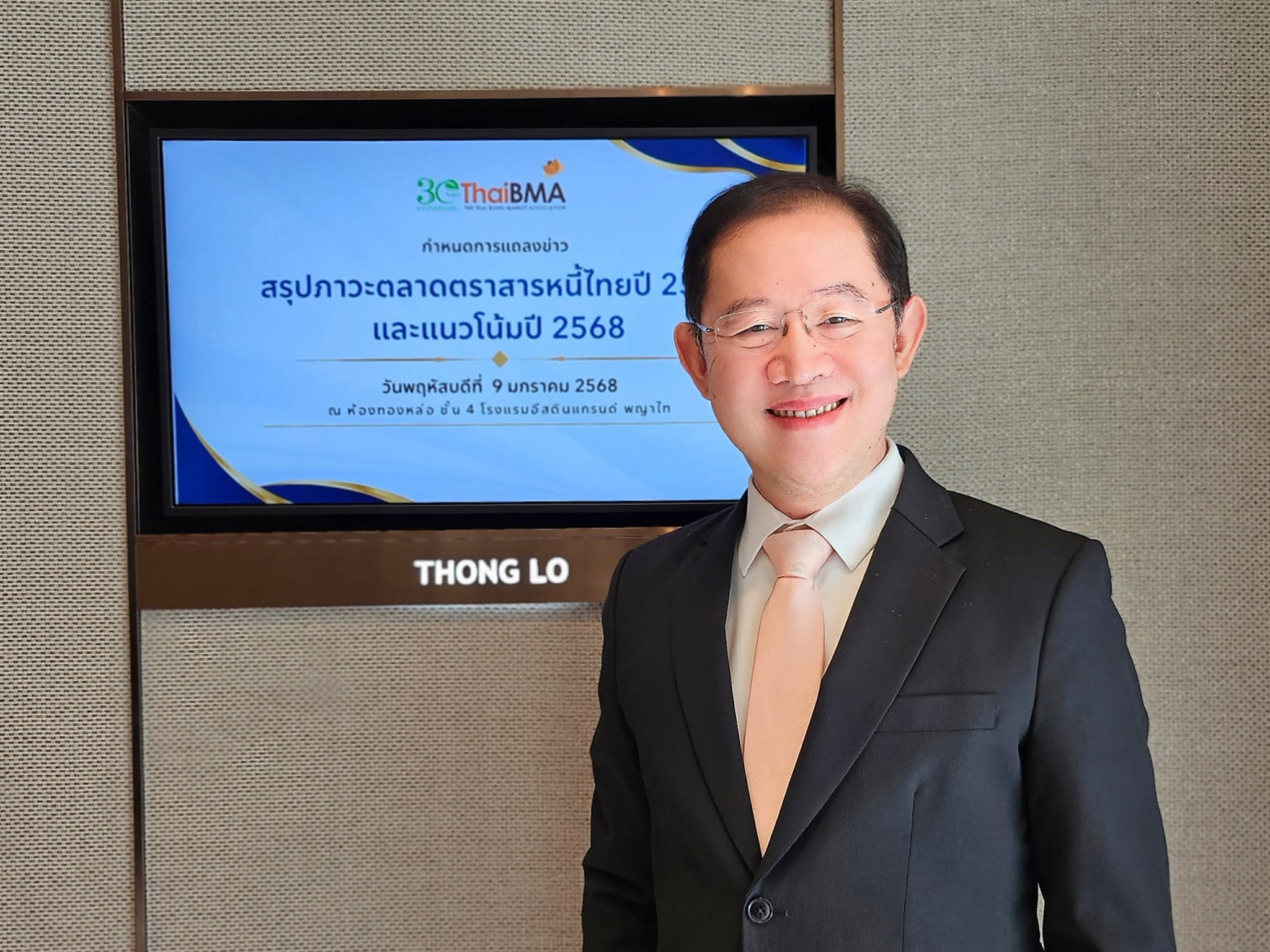 ThaiBMA Gallery ThaiBMA จัดงานแถลงข่าว "สรุปภาวะตลาดตราสารหนี้ไทยปี 2567 และแนวโน้มปี 2568" 9 มกราคม 2568 ThaiBMA จัดงานแถลงข่าวสรุปภาวะตลาดตราสารหนี้ไทยปี 2567 และแนวโน้มปี 2568 ⭐️ท่านสามารถ download เอกสาร Press Release ได้ที่นี่ สรุปภาวะตลาดตราสารหนี้ไทยปี 2567 และแนวโน้มปี 2568⭐️ https://www.thaibma.or.th/doc/press/y2025/Press012025.pdf ⭐️เอกสารประกอบงานแถลงข่าว⭐️ https://www.thaibma.or.th/doc/press/y2025/Doc012025.pdf Back to Main Gallery