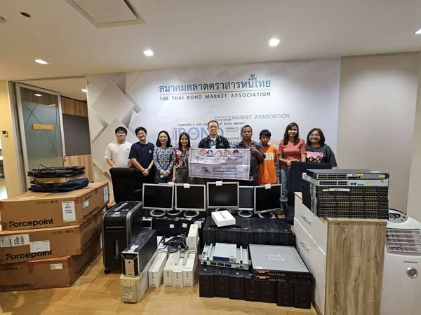 ThaiBMA Gallery ครบรอบ 30 ปี ThaiBMA ร่วมส่งต่อโอกาสทางการศึกษา เมื่อวันที่ 11 เมษายน 2568 🎉 ครบรอบ 30 ปี ThaiBMA ร่วมส่งต่อโอกาสทางการศึกษา 🎉 สมาคมตลาดตราสารหนี้ไทย (ThaiBMA) ร่วมกับ ตลาดหลักทรัพย์แห่งประเทศไทย ดำเนินโครงการ “คอมพิวเตอร์เพื่อเด็กไทย ใส่ใจเรื่องการเงิน” โดยมีเป้าหมายในการลดความเหลื่อมล้ำทางการศึกษา และส่งเสริมความรู้ด้านการเงินให้กับเยาวชนไทย ภายใต้โครงการนี้ สมาคมฯ ได้ร่วมบริจาคคอมพิวเตอร์จำนวน 22เครื่อง โน๊ตบุ๊ค จำนวน 5 เครื่อง และจอ Monitor จำนวน 15 เครื่อง ให้กับ กองทุนเพื่อความเสมอภาคทางการศึกษา (กสศ.) เพื่อเป็นสื่อกลางในการส่งต่อโอกาสและเสริมสร้างศักยภาพในการเรียนรู้ของเด็ก ๆ ต่อไป ................................................................... สมาคมตลาดตราสารหนี้ไทย (ThaiBMA) ขอร่วมเป็นส่วนหนึ่งในการสร้างสังคมแห่งการแบ่งปัน โดย บริจาคอุปกรณ์คอมพิวเตอร์และอุปกรณ์สำนักงาน ให้แก่ มูลนิธิพระมหาไพศาล วิสาโล (มูลนิธิพ่อเรย์) เพื่อสนับสนุนการเรียนรู้และพัฒนาศักยภาพของเยาวชนที่อยู่ในความดูแลของมูลนิธิ และหวังเป็นอย่างยิ่งว่าการส่งต่อทรัพยากรในครั้งนี้จะช่วยเสริมสร้างโอกาสให้กับเด็ก ๆ และเยาวชนได้เติบโตอย่างมีคุณภาพ พร้อมก้าวไปสู่อนาคตที่สดใส Back to Main Gallery