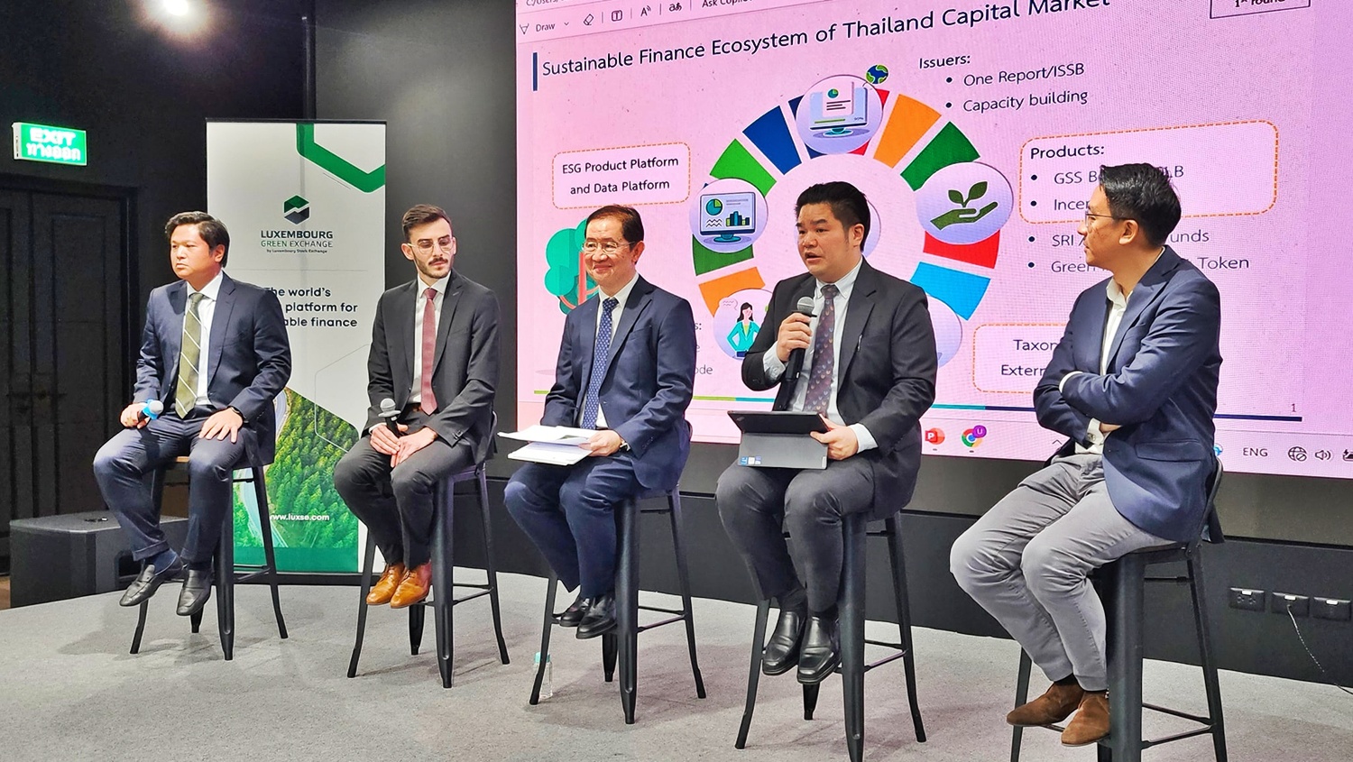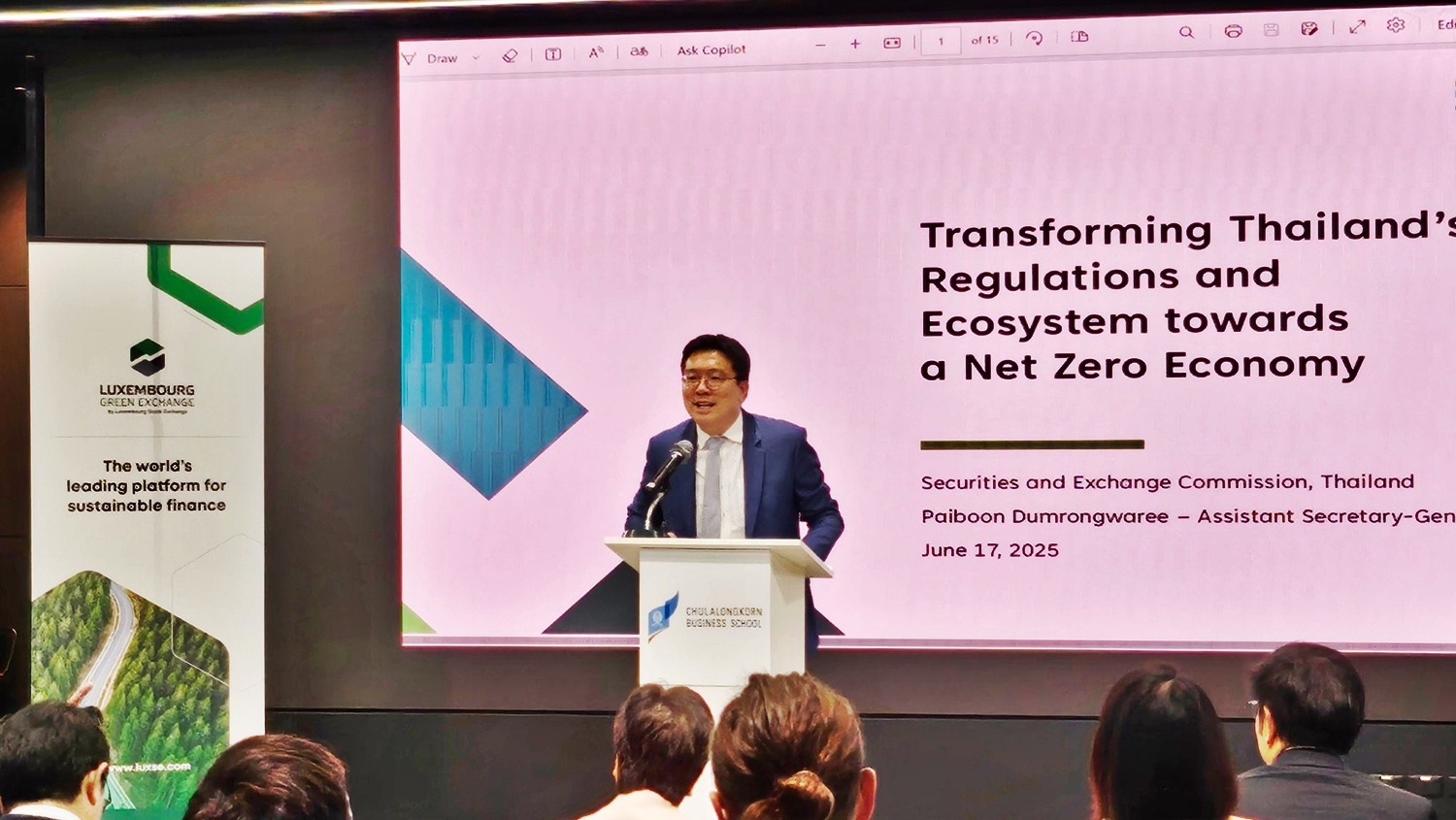 ThaiBMA Gallery คณะพาณิชยศาสตร์และการบัญชี จุฬาลงกรณ์มหาวิทยาลัย ร่วมกับสถานเอกอัครราชทูตไทย ณ กรุงบรัสเซลส์ และตลาดหลักทรัพย์ลักเซมเบิร์ก 17 มิถุนายน 2568 คณะพาณิชยศาสตร์และการบัญชี จุฬาลงกรณ์มหาวิทยาลัย ร่วมกับสถานเอกอัครราชทูตไทย ณ กรุงบรัสเซลส์ และตลาดหลักทรัพย์ลักเซมเบิร์ก ได้จัดสัมมนา "Promoting ESG Bond Development in Thailand and Sustainable Finance Partnership with Luxembourg" ณ Chulalongkorn Business School โดยมีผู้เชี่ยวชาญทั้งจากไทยและต่างประเทศร่วมบรรยายในประเด็นสำคัญเกี่ยวกับตลาดตราสารหนี้ ESG ดร.สมจินต์ ศรไพศาล กรรมการผู้จัดการ สมาคมตลาดตราสารหนี้ไทย ร่วมเสวนาในหัวข้อ “Overcoming ESG Bond Market Challenges in Thailand and Forging Strategic Partnership with Luxembourg” ร่วมกับผู้แทนจากสำนักงาน ก.ล.ต., ตลาดหลักทรัพย์ลักเซมเบิร์ก และสำนักงานบริหารหนี้สาธารณะ เนื้อหาเน้นถึงโอกาสและความท้าทายของตลาดตราสารหนี้ ESG ไทย บทบาทของภาครัฐและเอกชน รวมถึงความร่วมมือกับลักเซมเบิร์กในฐานะศูนย์กลางการเงินยั่งยืนของยุโรป ขอขอบคุณทุกท่านที่ให้ความสนใจและเข้าร่วมงานในครั้งนี้ #ESGBond #SustainableFinance #ThaiBMA #ChulaBusinessSchool #LuxembourgExchange Back to Main Gallery